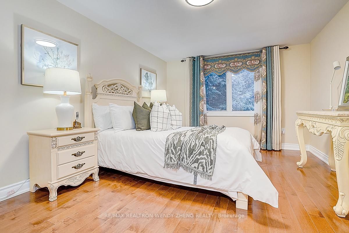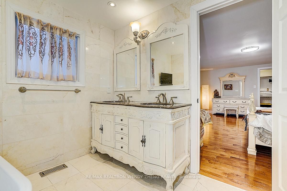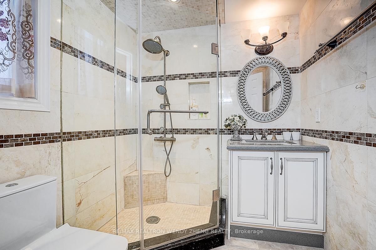 Gorgeous detached home situated on a rare premium lot of nearly 50 x 115 ft in the highly sought-after unionville community. Over $400,000 in professional renovations with approximately 3,000 sq ft of well-planned living space and a double garage. Featuring 4+3 bedrooms and 5 washrooms. Main floor offers polished marble and hardwood flooring throughout, enhanced by refined french-style accent wall detailing. A grand curved oak staircase with elegant iron pickets serves as a central architectural feature. Skylight provides abundant natural light throughout the day. Kitchen includes a large granite-topped island with ornate detailing, built-in wine storage, and bar seating. Family room showcases a custom-designed fireplace with millwork and built-in display cabinetry. All bathrooms are finished with marble floor and wall tiles and equipped with duravit toilets, along with carefully selected premium faucets, showerheads, and sanitary ware featuring refined gold-plated detailing. Newly completed basement offers a spacious recreation area, a beautifully designed wet bar that can function as a secondary kitchen, and three sizable bedrooms. Professionally interlocked front and backyard offer functional outdoor living space. Located within the catchment of top-ranked schools including st. Justin martyr catholic elementary school (#1/3021), unionville high school (#21/744), and st. Augustine catholic high school (#1/747).