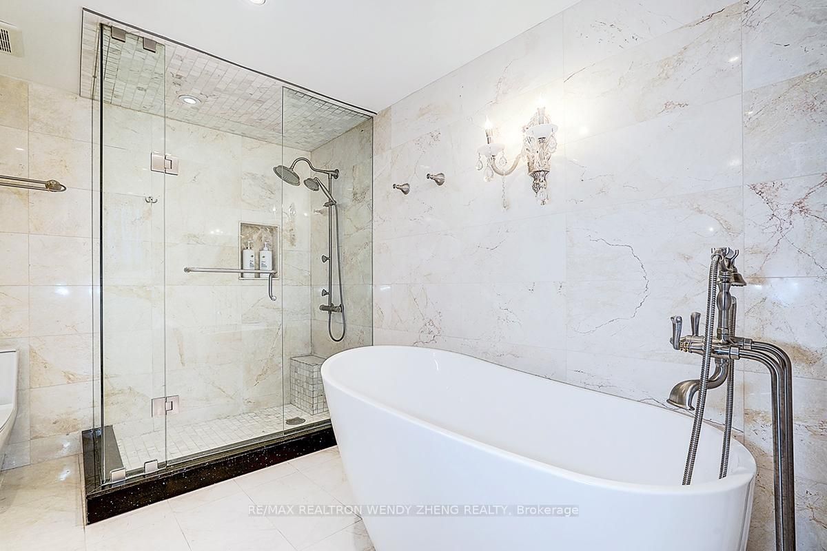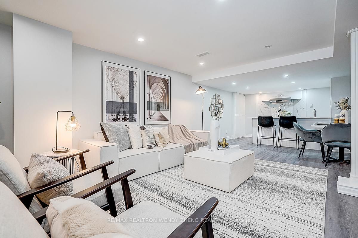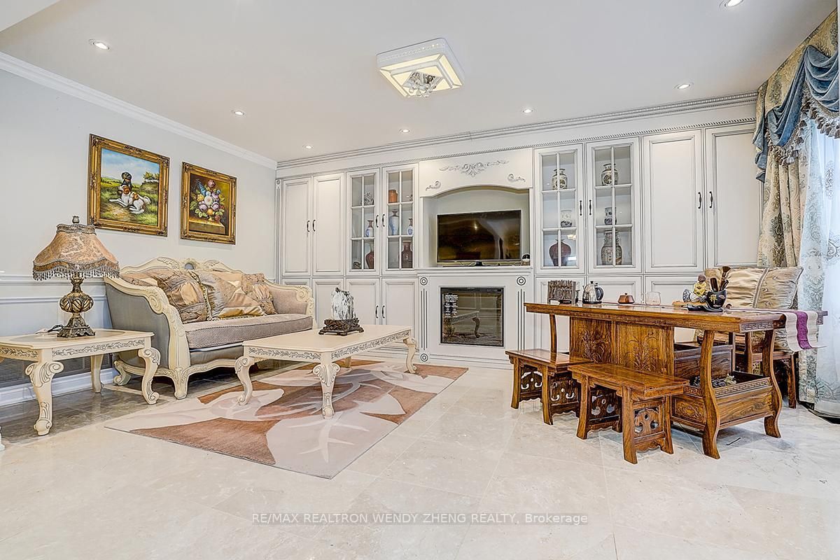 Gorgeous detached home situated on a rare premium lot of nearly 50 x 115 ft in the highly sought-after unionville community. Over $400,000 in professional renovations with approximately 3,000 sq ft of well-planned living space and a double garage. Featuring 4+3 bedrooms and 5 washrooms. Main floor offers polished marble and hardwood flooring throughout, enhanced by refined french-style accent wall detailing. A grand curved oak staircase with elegant iron pickets serves as a central architectural feature. Skylight provides abundant natural light throughout the day. Kitchen includes a large granite-topped island with ornate detailing, built-in wine storage, and bar seating. Family room showcases a custom-designed fireplace with millwork and built-in display cabinetry. All bathrooms are finished with marble floor and wall tiles and equipped with duravit toilets, along with carefully selected premium faucets, showerheads, and sanitary ware featuring refined gold-plated detailing. Newly completed basement offers a spacious recreation area, a beautifully designed wet bar that can function as a secondary kitchen, and three sizable bedrooms. Professionally interlocked front and backyard offer functional outdoor living space. Located within the catchment of top-ranked schools including st. Justin martyr catholic elementary school (#1/3021), unionville high school (#21/744), and st. Augustine catholic high school (#1/747).