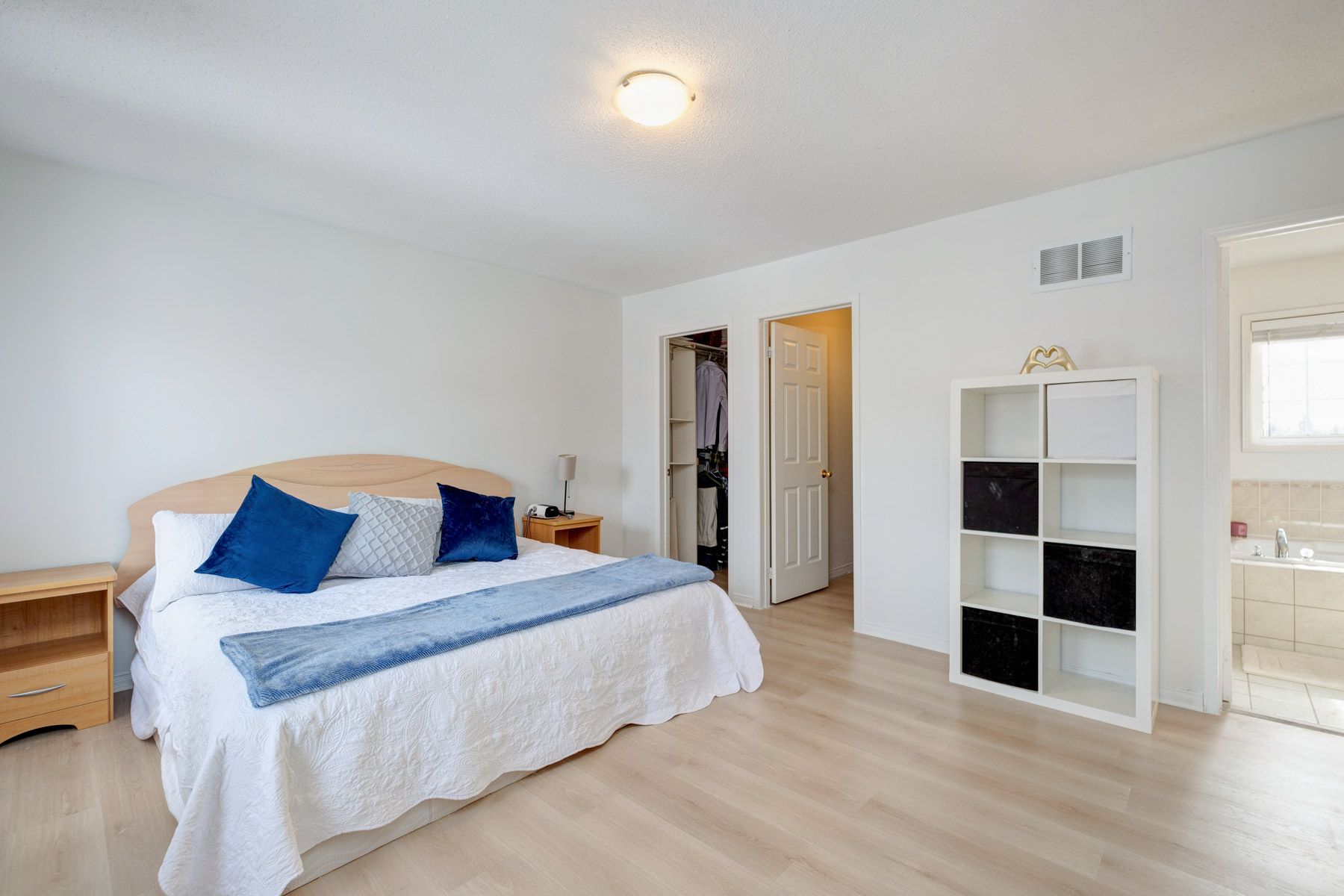 • Generously sized primary bedroom with ensuite and his and her closets.