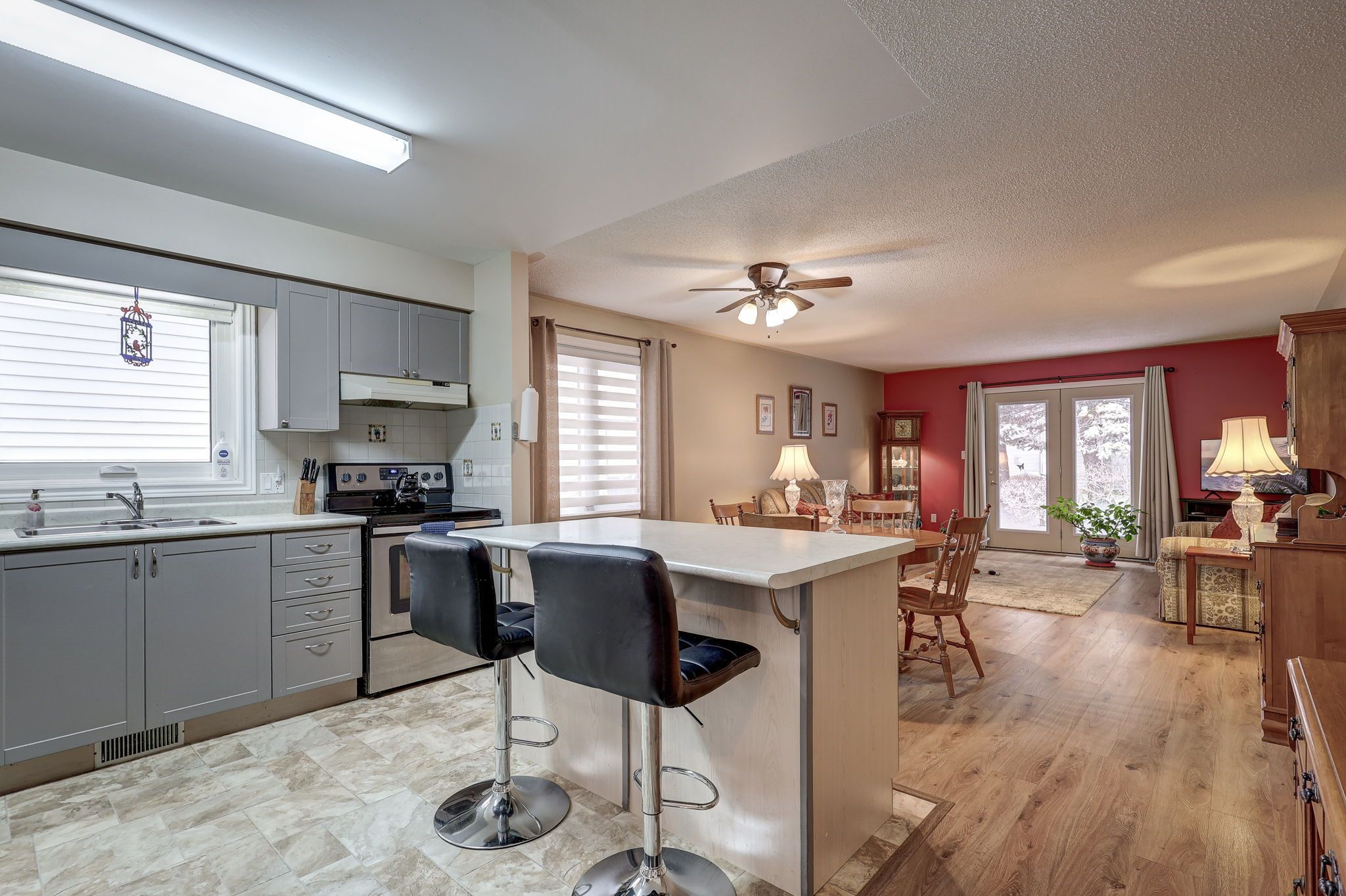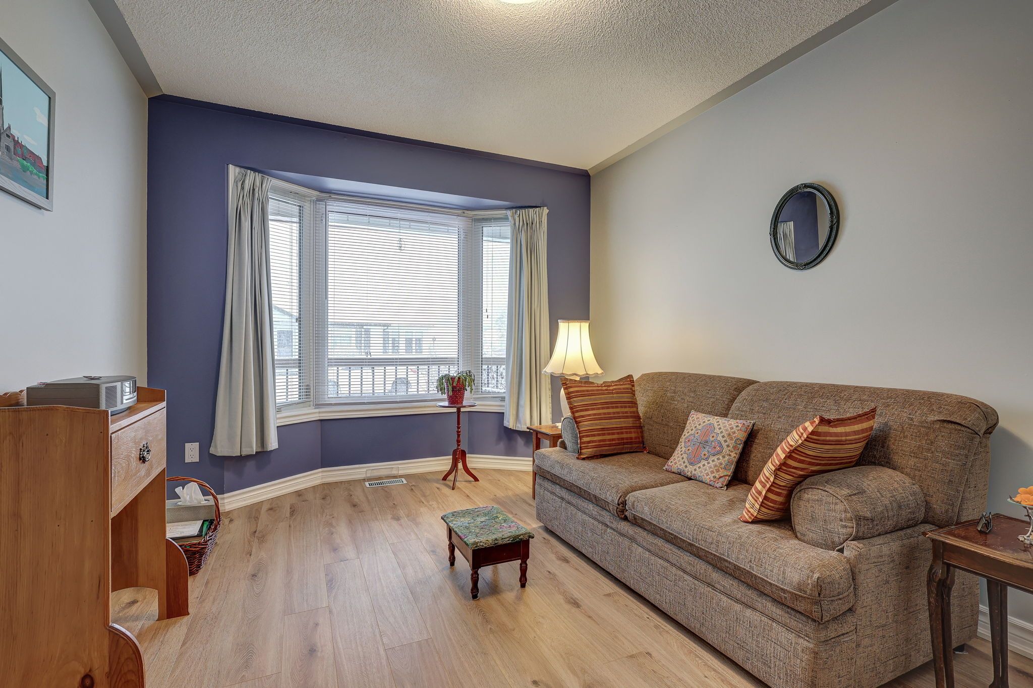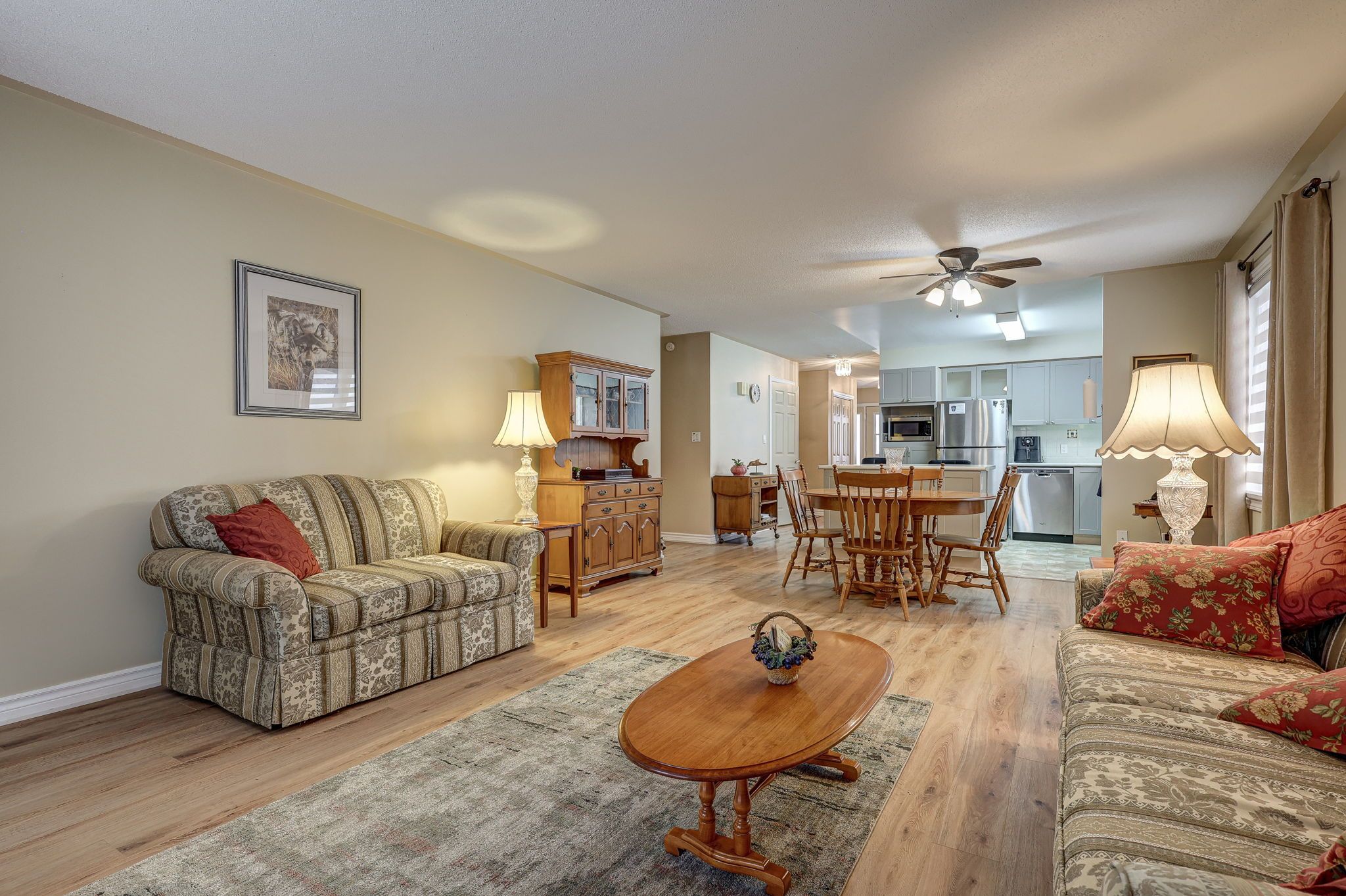 Step into this well-cared-for bungalow, offering 1,261 sq. Ft. Of comfortable, open-concept living in the highly regarded hickory hills adult community. The layout is designed for easy day-to-day living, with main floor laundry, two generous bedrooms, and 2 bathrooms, including a primary suite with double closets and its own private ensuite. The bright, inviting kitchen features updated cabinetry and opens seamlessly to the dining and living areas-an ideal setup for hosting friends or enjoying a quiet evening at home. The backyard is a peaceful retreat, complete with a landscaped patio and an electric awning that provides shade when you want it. The finished basement expands your living space with a recreation room, family room, 2pc washroom home office, and abundant storage options. The stair lift is optional. Residents of hickory hills enjoy a friendly, active community with access to a clubhouse, pool, and trails. Buyer to acknowledge a one-time $2,000 transfer fee and an annual association fee of $640.