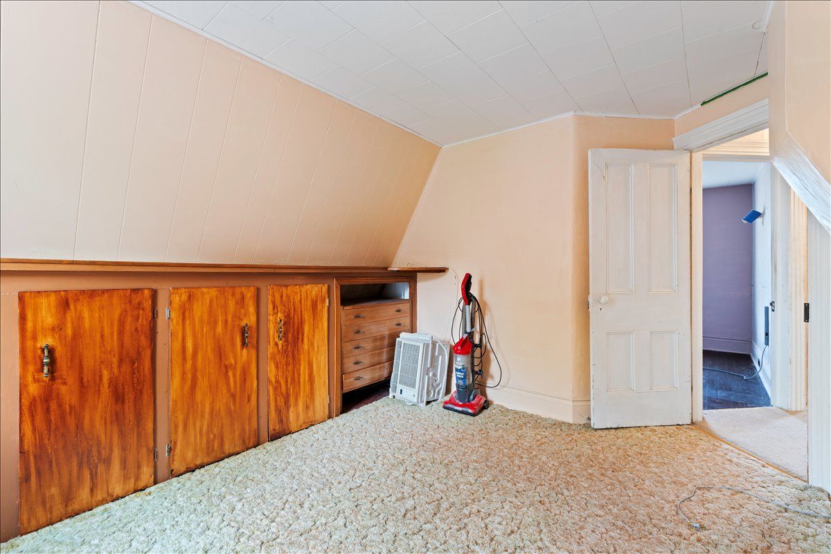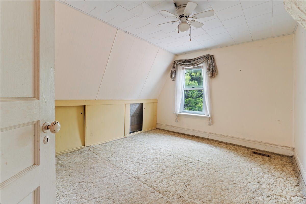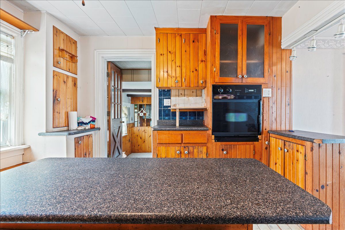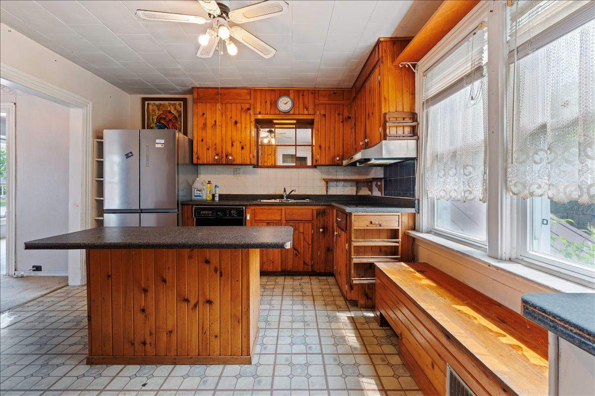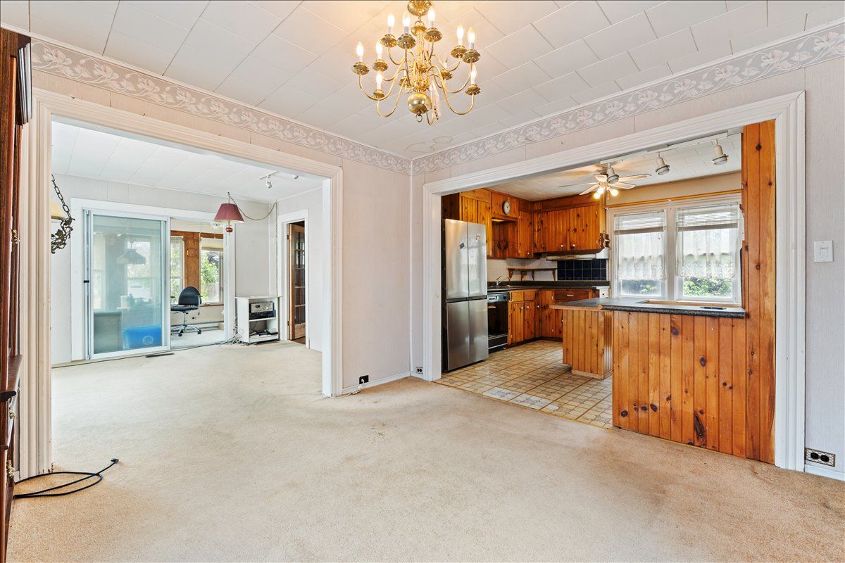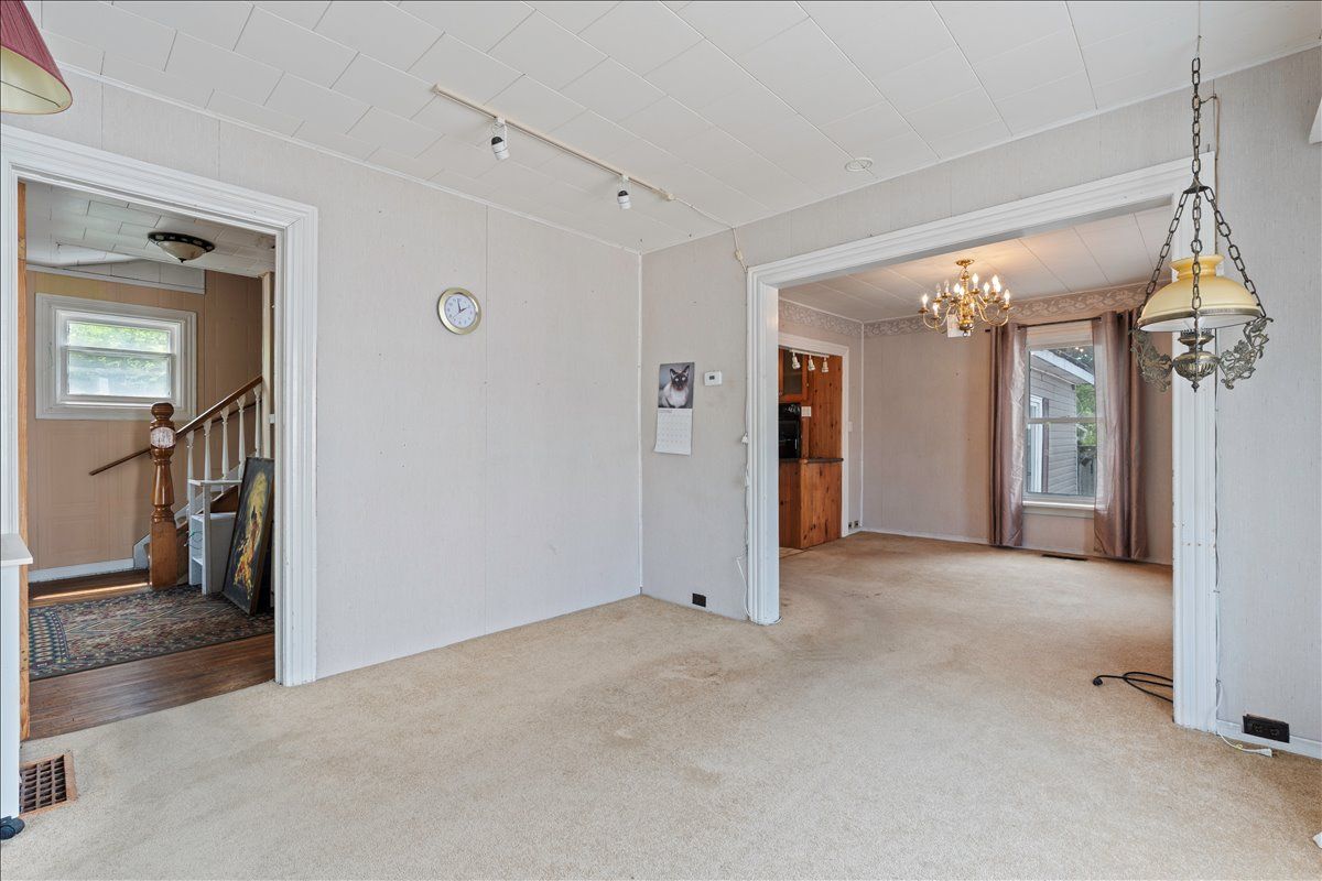 Large two storey home with 3 bedrooms and 2 bathrooms, located in a nice neighbourhood and close to downtown, school, hospital, parks and more. 19 broad street requires renovation but offers spacious main floor living and nicely sized bedrooms with a total of 1,450 square feet. An enclosed front porch overlooks the peaceful street and a large roofed deck in the back yard provides a great space for family time outside. There is a living/dining area with separate kitchen space that has a great layout with a centre island. In the rear of the home you will find a large family room with dutch gas fireplace and walk out to back yard/deck. On the upper floor there are 3 bedrooms and a 3-piece bathroom with laundry. Outside, a fenced yard with gardens and double garage! Behind the garage is a workshop with woodstove, a shop space and a sunroom with walk out to back yard.