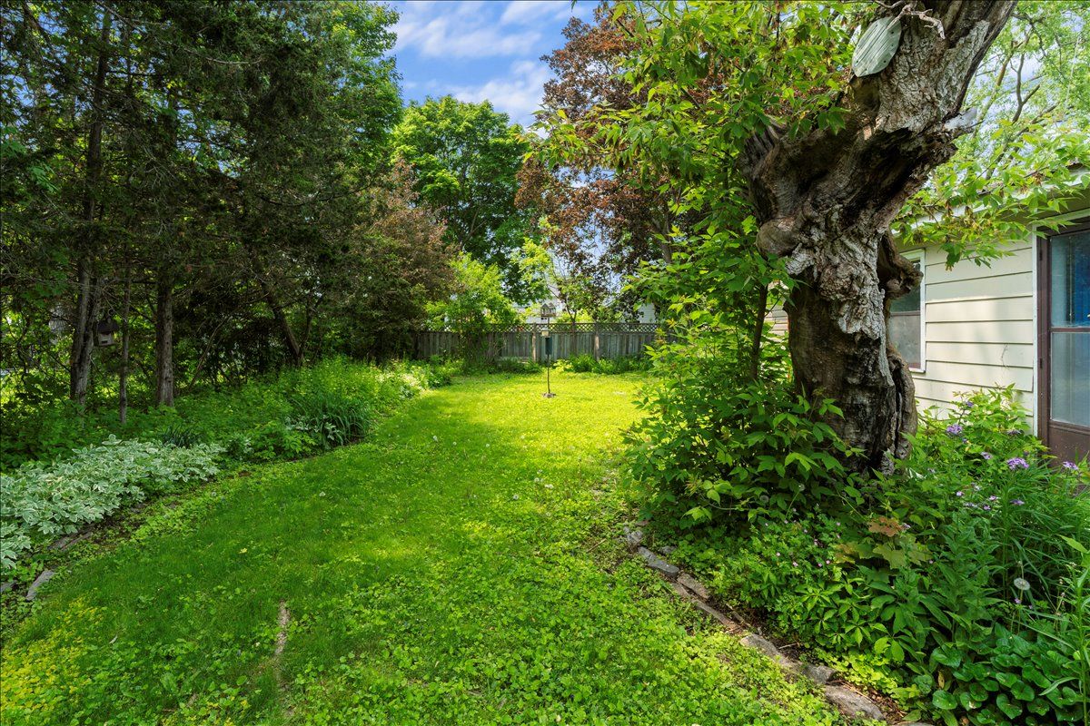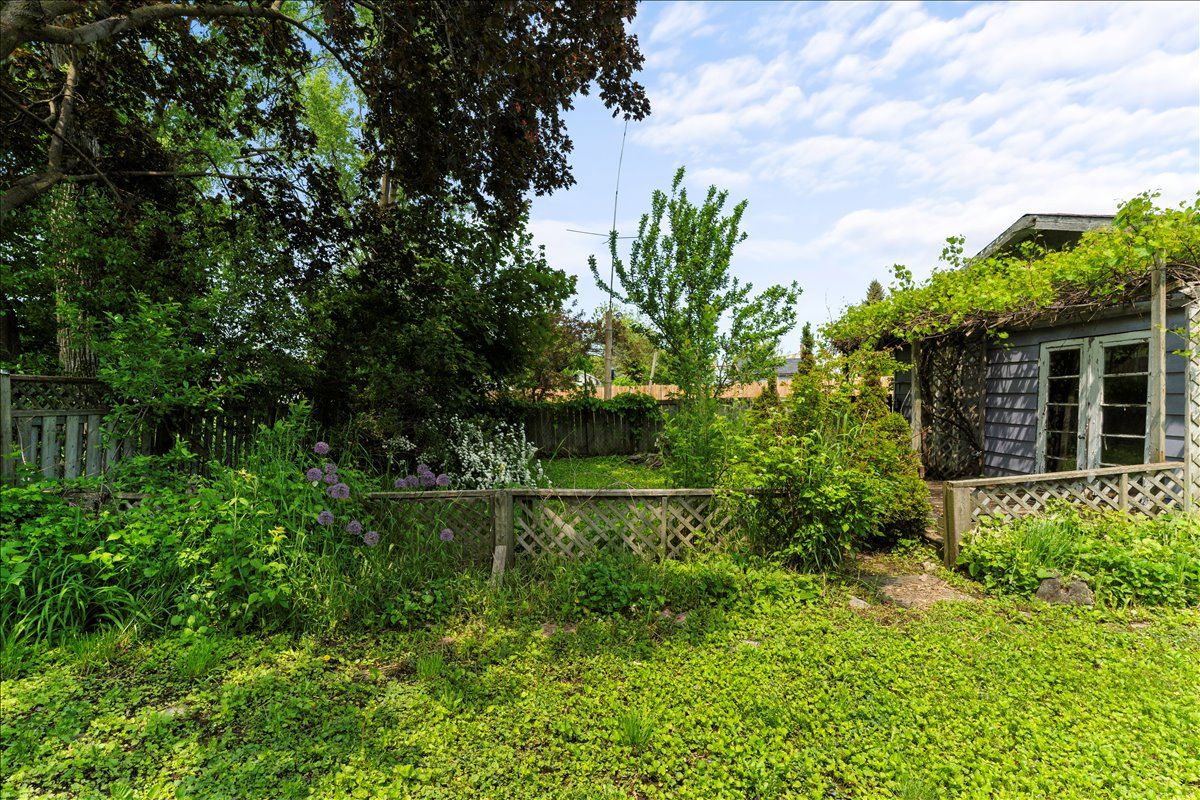 • Fenced yard with gardens and a double garage for extra storage.