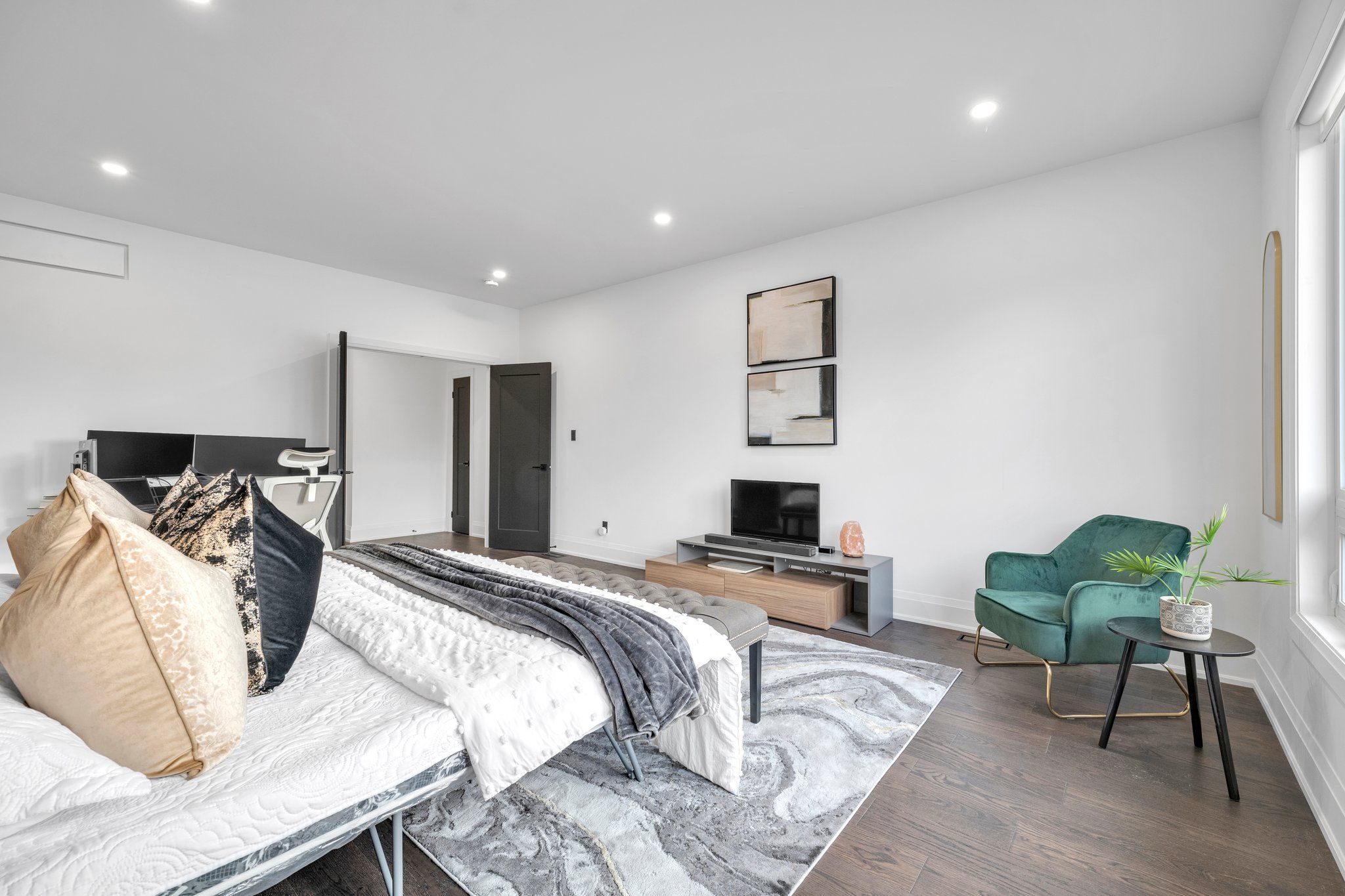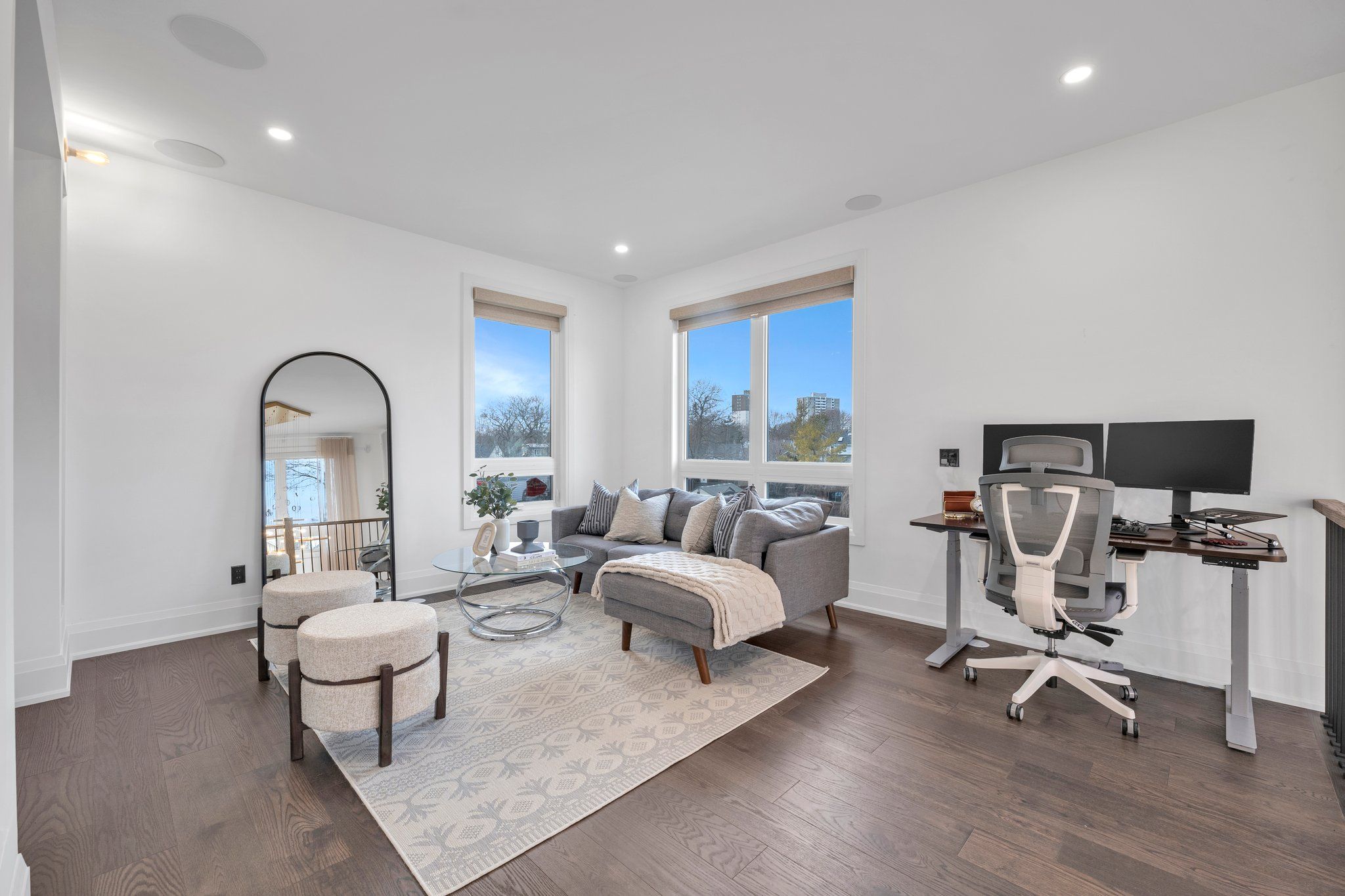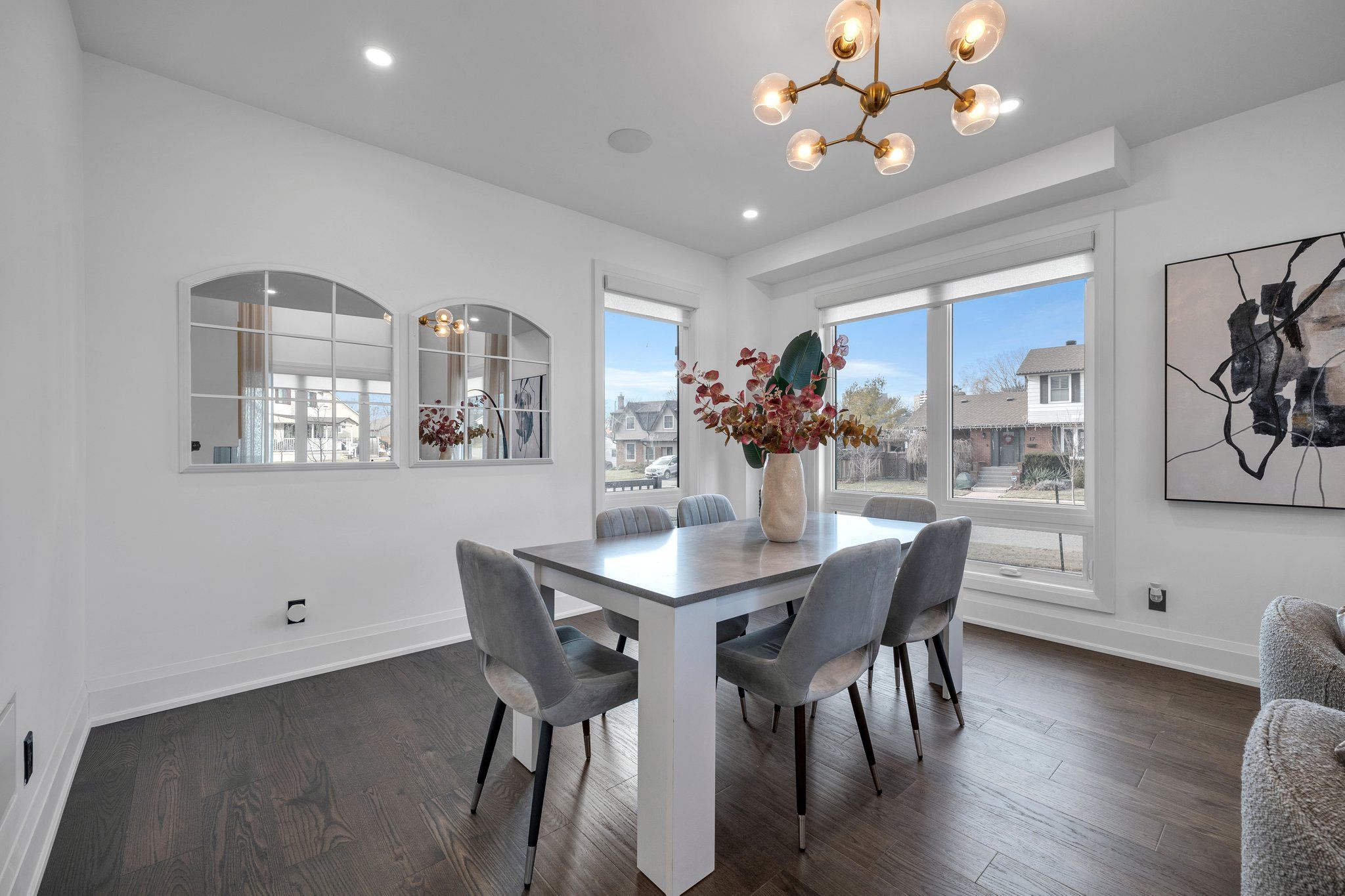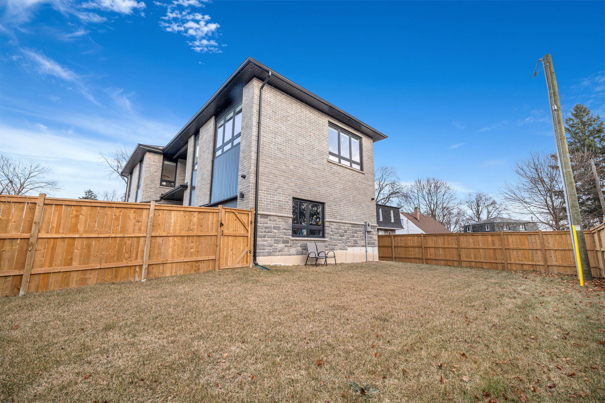 Stunning two-storey custom home in a family-friendly, walkable neighborhood with mature trees. Featuring 4 bedrooms, 3. 5 bathrooms, and a scandinavian-inspired kitchen with a large waterfall quartzite island, induction cooktop, and panel-ready appliances. The open-concept main floor boasts 9-ft ceilings, large windows, hardwood and porcelain flooring, two living areas, dining space, and plenty of custom storage. Upstairs, the primary suite offers a spa-like 6-piece ensuite, plus three additional bedrooms and two more bathrooms. Luxury touches include gold-accented fixtures, motorized curtains, electric fireplace, in-ceiling speakers, a mezzanine, and a garage with tesla ev charging. Security is advanced with automated entry and multiple cameras. The unfinished basement has a separate entrance, and the large front and backyards are perfect for relaxing. Close to schools, shopping, highways, ajax go station, and the waterfront. Modern comfort, style, and convenience-all in one home!