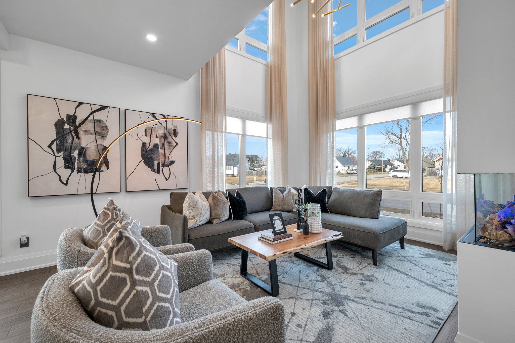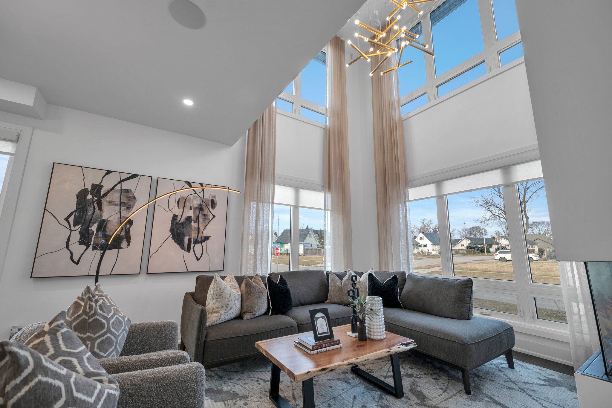 • Spacious open-concept main floor with 9-ft ceilings and two living areas.