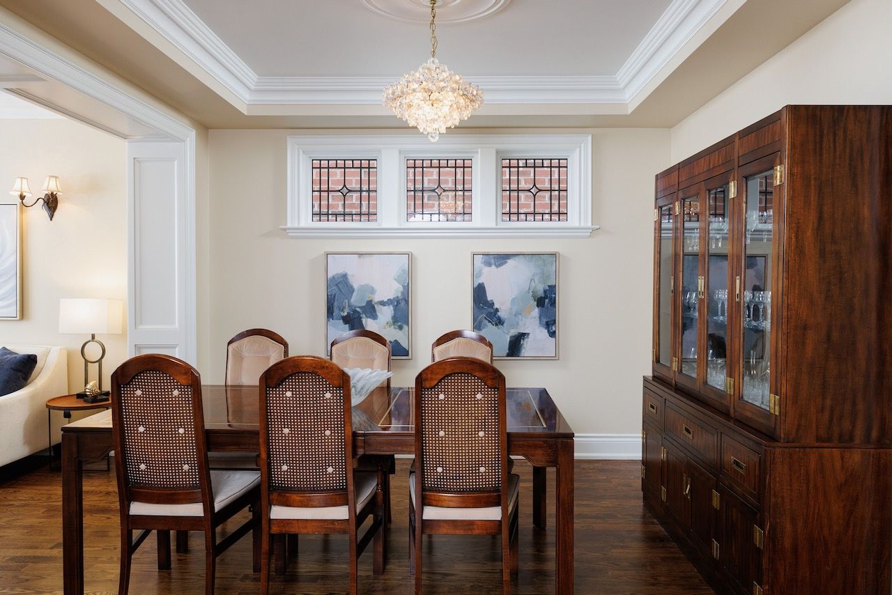 • Spacious principal rooms with elegant details like hardwood floors and high ceilings.