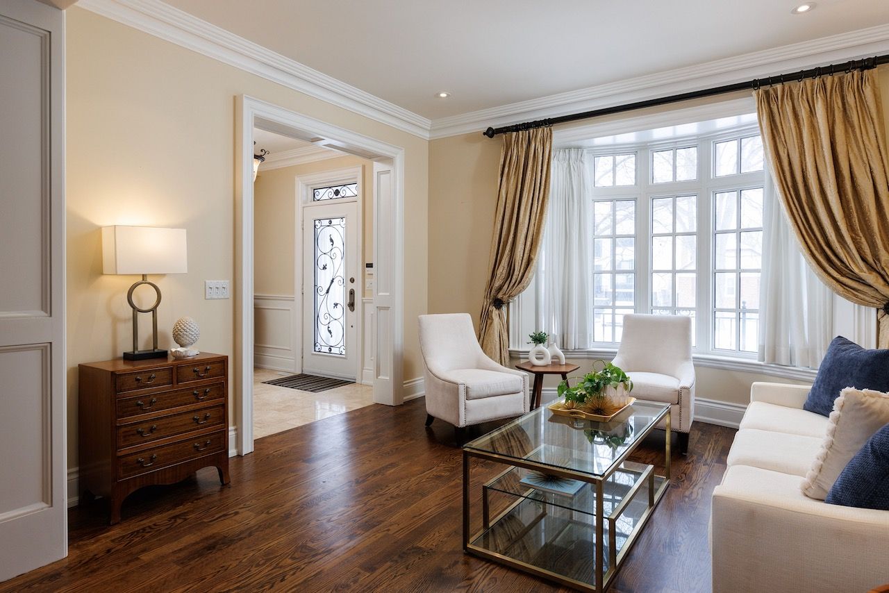 This stunning custom built home is situated on a prime street in the heart of the bedford park area. Steps from avenue road's premier shops, restaurants and amenities, this home offers unparalleled convenience in one of toronto's most desirable neighbourhoods. Inside you are welcomed with large principal rooms, custom millwork, hardwood floors, wainscoting, soaring ceilings and leaded glass windows that add a traditional elegance. A gourmet kitchen with top of the line appliances and a centre island flow seamlessly into the breakfast room which allows double french door access to the rear deck and serenely private yard. The family room offers custom cabinetry, a built in gas fireplace and a large window overlooking professionally landscaped gardens. Upstairs a skylight greets you with a bright open hallway, a spacious prime suite with walk in and double closets, a four-piece marble ensuite with jet tub, separate shower and adjacent vanity under a skylight. Two additional bedrooms share a five-piece semi-ensuite and a 2nd floor laundry is an added convenience. The lower level features a large finished recreation room with a comfortable relaxation and entertaining area, four-piece bath and direct access to the garage and separate entrance. Ideally located close to top schools, parks and transit, this home is perfect for midtown family living.