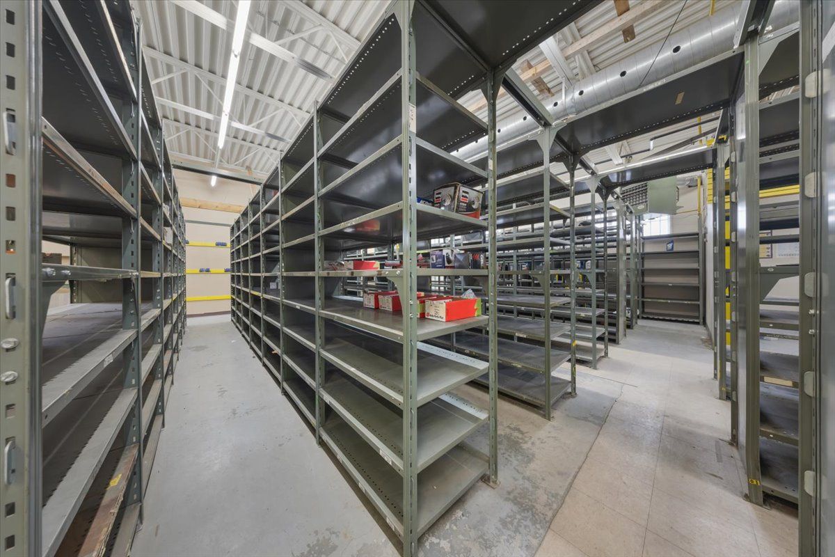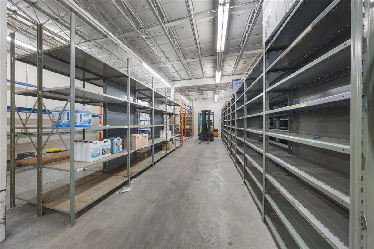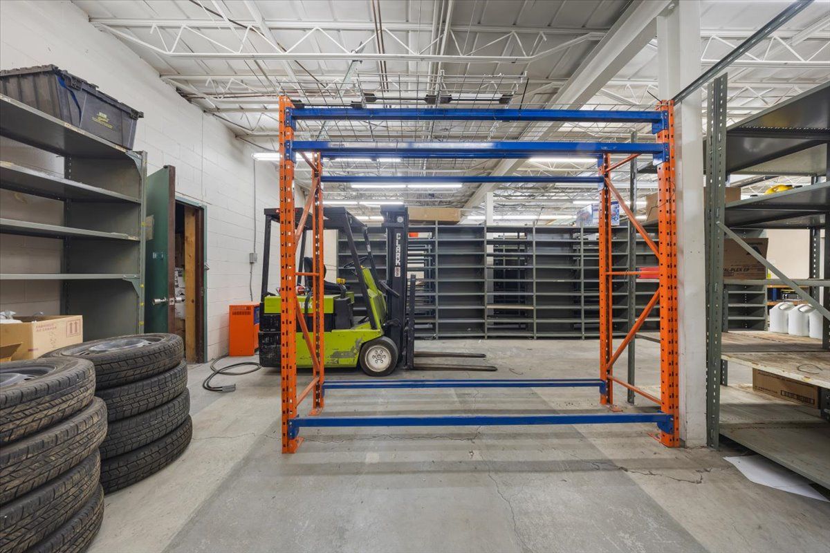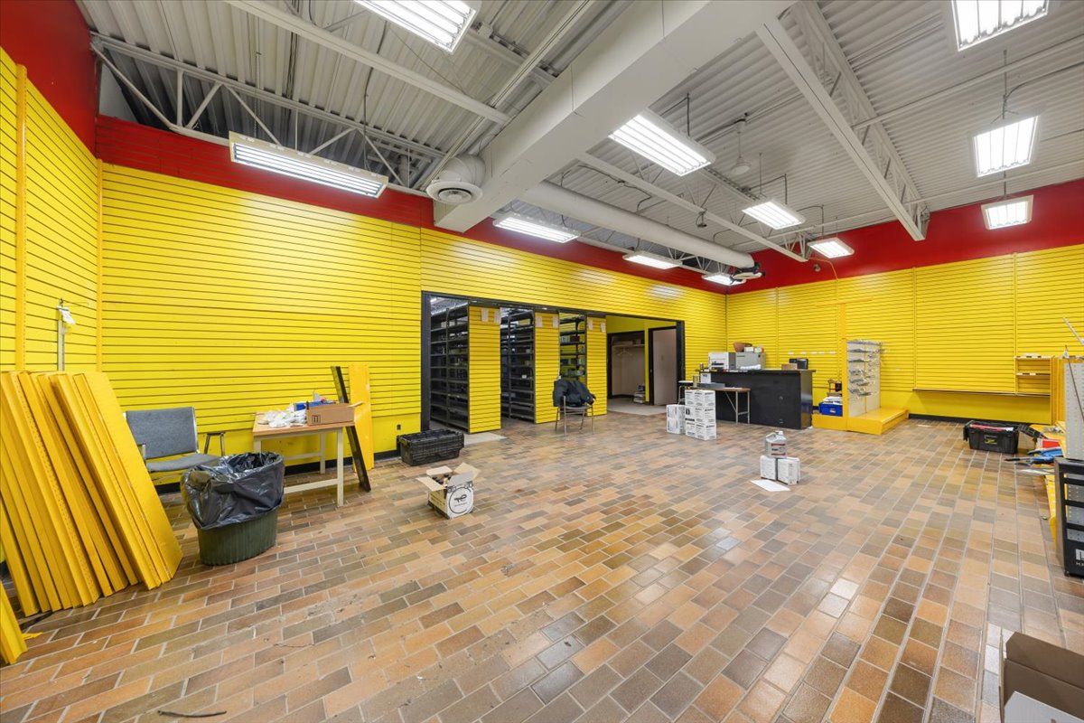 • Includes front retail/showroom area and rear storage/warehouse space.