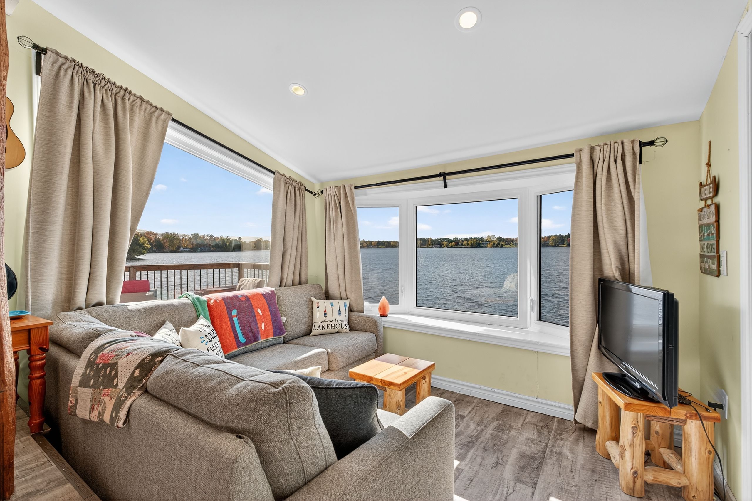 Welcome to 19 cherry lane, a beautifully appointed, three-bedroom, two-bath property that fuses rustic charm with refined comforts-all set on a coveted waterfront lot on beaver lake. Currently used as a cottage but has a heated water line from the lake that can be used in the winter and the property is insulated and has heat pumps for heat and air conditioning. This is an incredible opportunity to own a private lakeside retreat, just steps from the water's edge. From the moment you arrive, this home expresses thoughtful design. The open-concept main living area is anchored by vaulted wood-plank ceilings, natural light, and panoramic water views. The kitchen, with its stylish finishes and efficient layout, flows seamlessly into the dining and living spaces-perfect for entertaining or quiet evenings by the lake. You'll find three comfortable bedrooms offering restful privacy and two baths. An insulated bunkie with heating and a/c is perfect for extra guests. Step outside onto the multi-level deck system, where decks, patios, and a pavilion beckon you to unwind while soaking in breathtaking water views. Whether you're sipping morning coffee as ripples form on the lake, reading under the summer sun, or hosting sunset cocktails on the waterside deck, this home elevates every moment outdoors. A private, accessible shoreline gives you direct entry to the lake-swim, paddle, or fish just steps from your door. A lovely beach is nearby, perfect for leisurely strolls. You're also a short drive from dining options, grocery stores, the lcbo, boutique shops, and local charm. The property has been recently sided with maibec canexel engineered siding for lasting quality and appeal. Outdoor lovers will appreciate the surrounding natural trails and the refreshing serenity that only waterfront landscapes can provide. Located just 30 minutes north of the 401 and napanee. Bunkie was added in 2025, home was fully updated in 2018. In-floor heating is plumbed in but not hooked up.