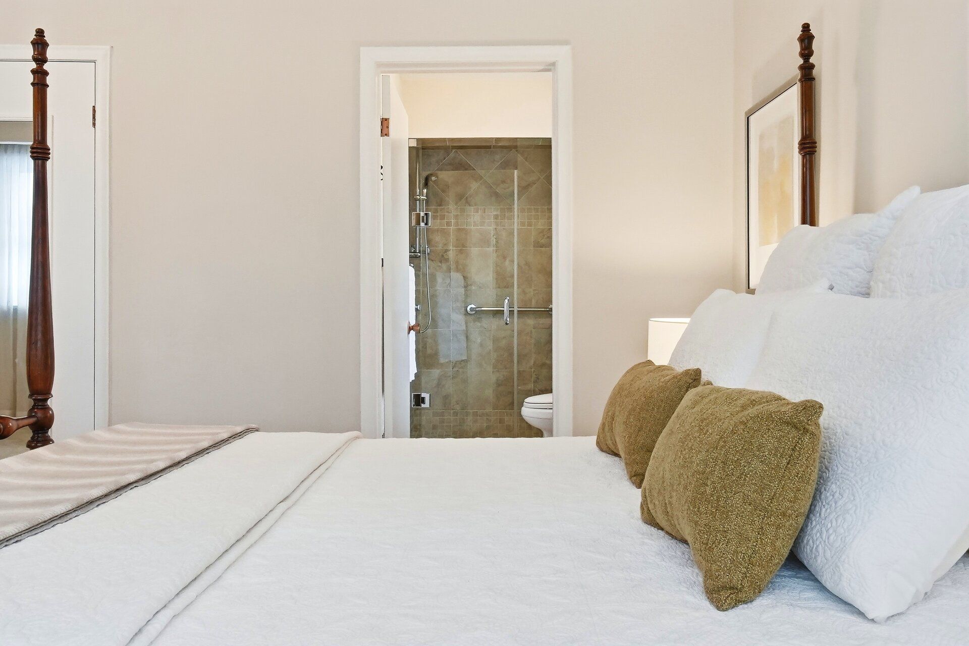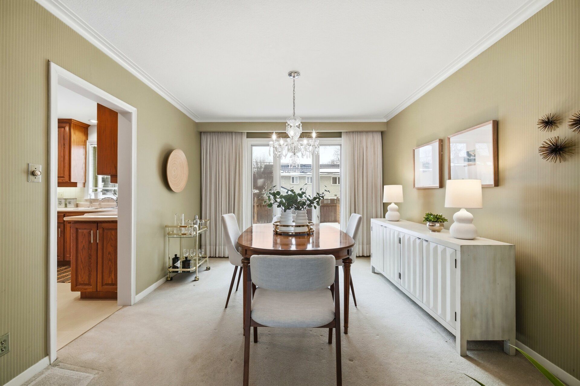 • Bright eat-in kitchen overlooking a private, fenced yard.
