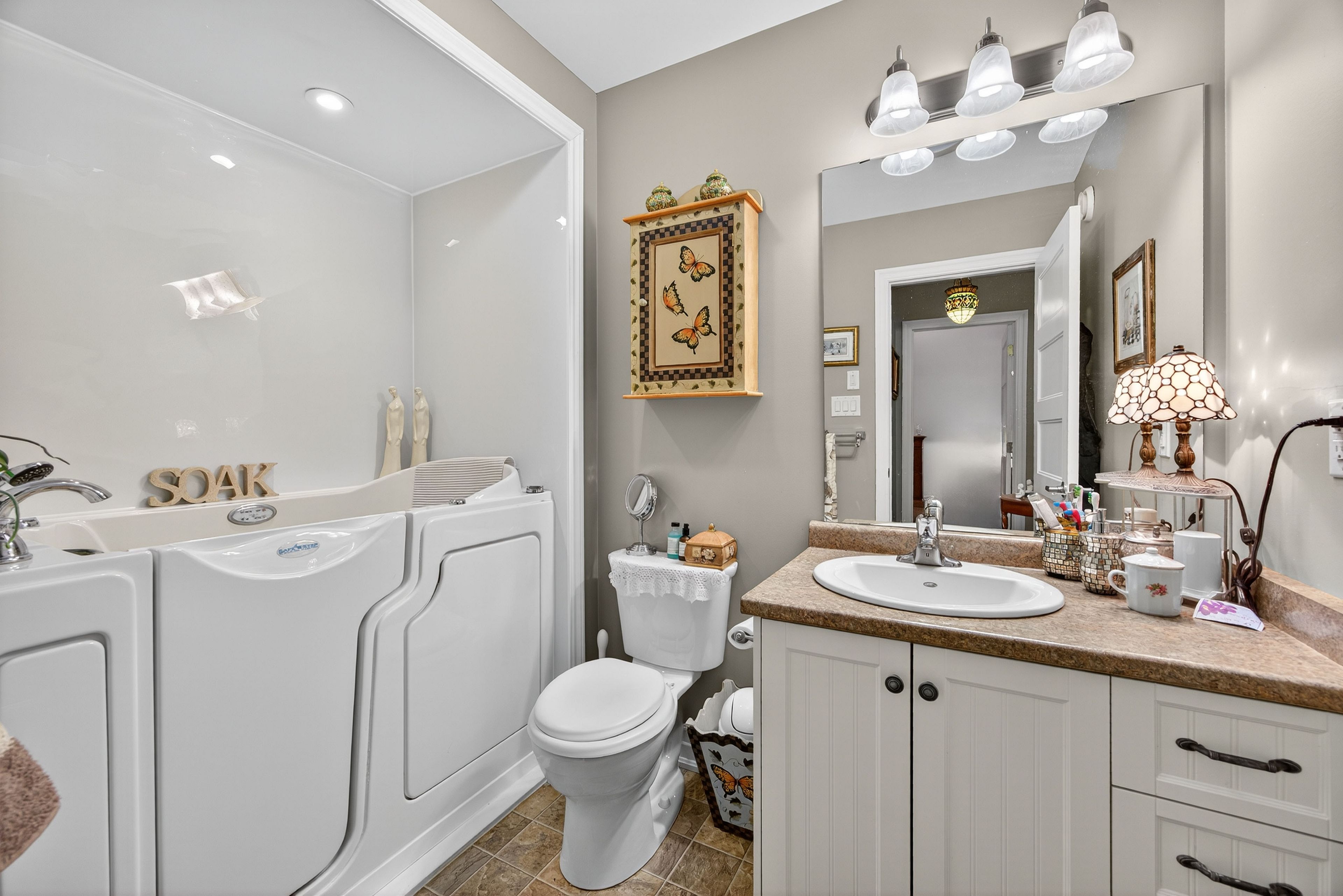 This pristine 'yorkshire' model ranch bungalow is being offered for resale for the very first time. Meticulously maintained and designed for comfortable, effortless main level living in the highly sought-after parkbridge wasaga meadows 55+ adult community. Bright & open-concept offering 1,200 sq. Ft. With 2 spacious bedrooms and 2 full bathrooms. The beautiful kitchen features a large island, modern skylight, under-cabinet lighting and elegant tiffany light fixtures. The living room offers a built-in entertainment centre with custom cabinetry, a cozy gas fireplace with a convenient separate thermostat and direct access to your private east-facing patio-perfect for your morning coffee, overlooking mature evergreen trees. Enjoy sunsets on your west-facing covered front porch. The lovely primary bedroom suite boasts a generous walk-in closet, a second closet, a 4-piece ensuite featuring a safe step walk-in tub with jets for superior therapeutic comfort and safety and a lovely tiffany light fixture. The second 4-piece bathroom enjoys a convenient walk-in shower and a skylight. The generous single-car garage includes built-in shelving and an inside entry. The extra-large hot water tank is 3 years new & owned, and the hrv system is included for enhanced comfort. Optional amenities (including a beach, 2 swimming pools (1 outdoor, 1 indoor saltwater), splash pad, fishing, hiking, mini golf, multipurpose sports fields, playground, basketball, tennis & volleyball courts) are all available for an affordable annual fee of $150 + hst- if desired. Fees: land lease - $800, structure tax - $153. 99, lot tax - $49. 39. This beautiful bungalow is ready for you - welcome home!