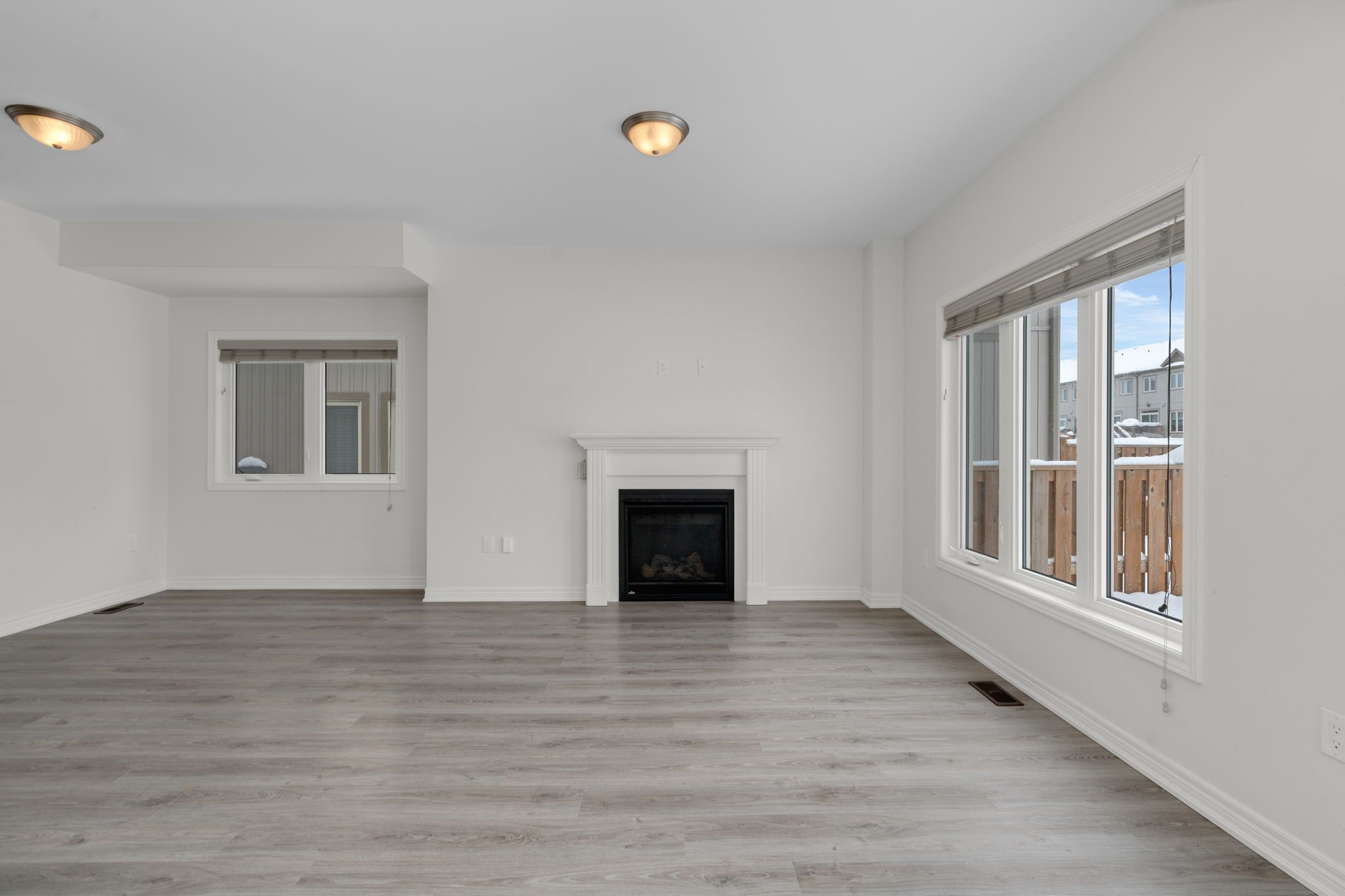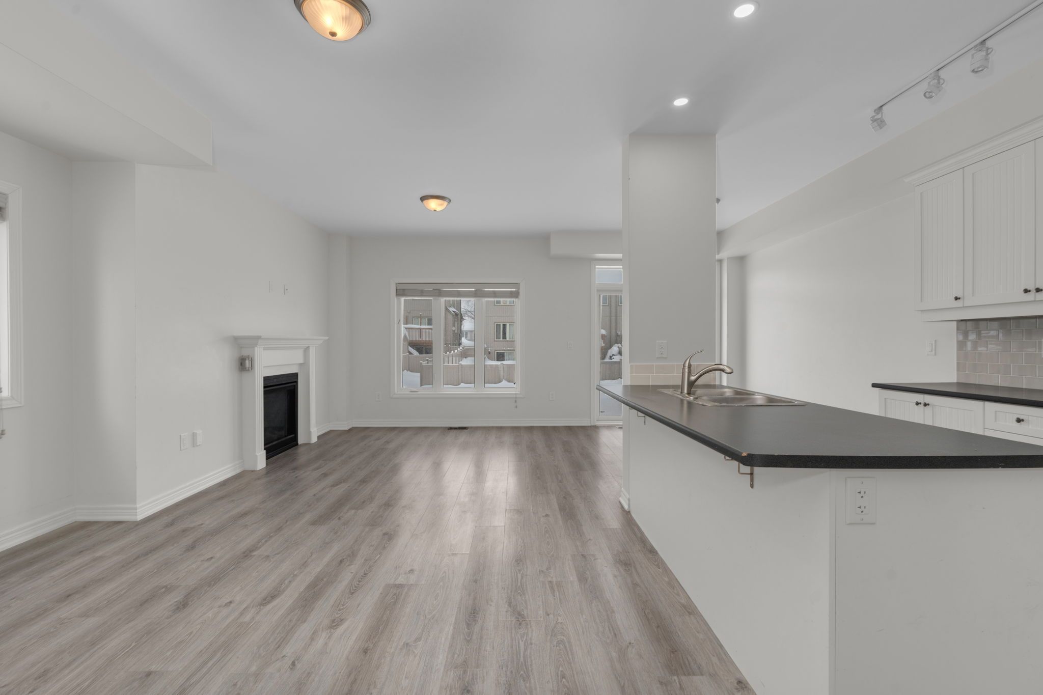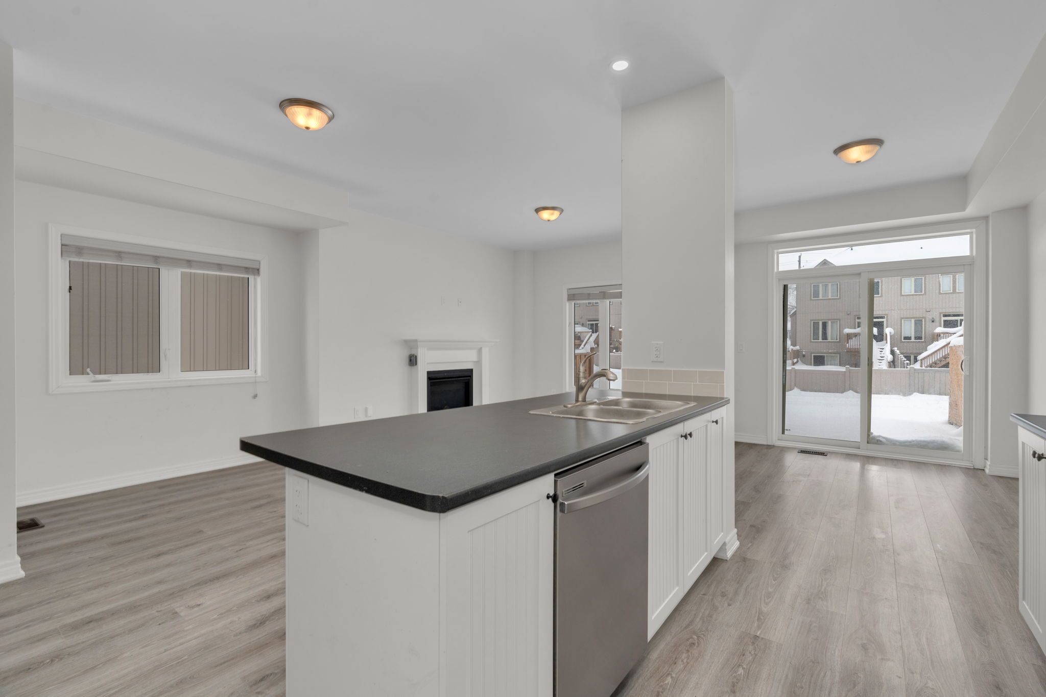 • Spacious living room with gas fireplace and backyard access.