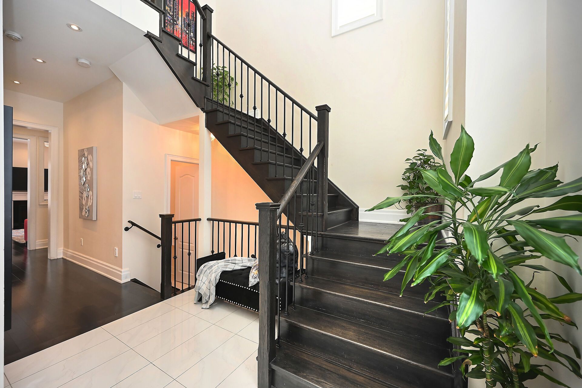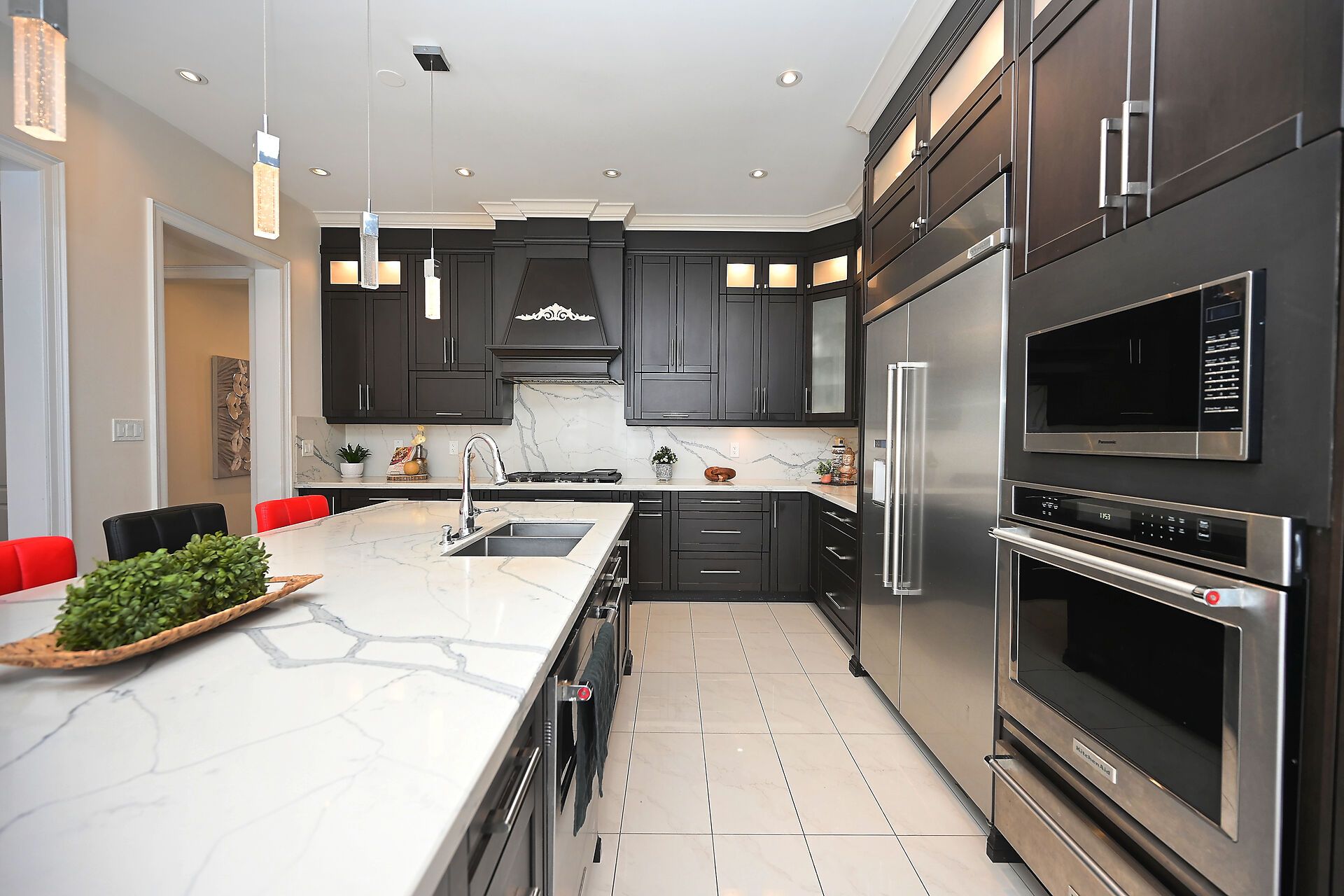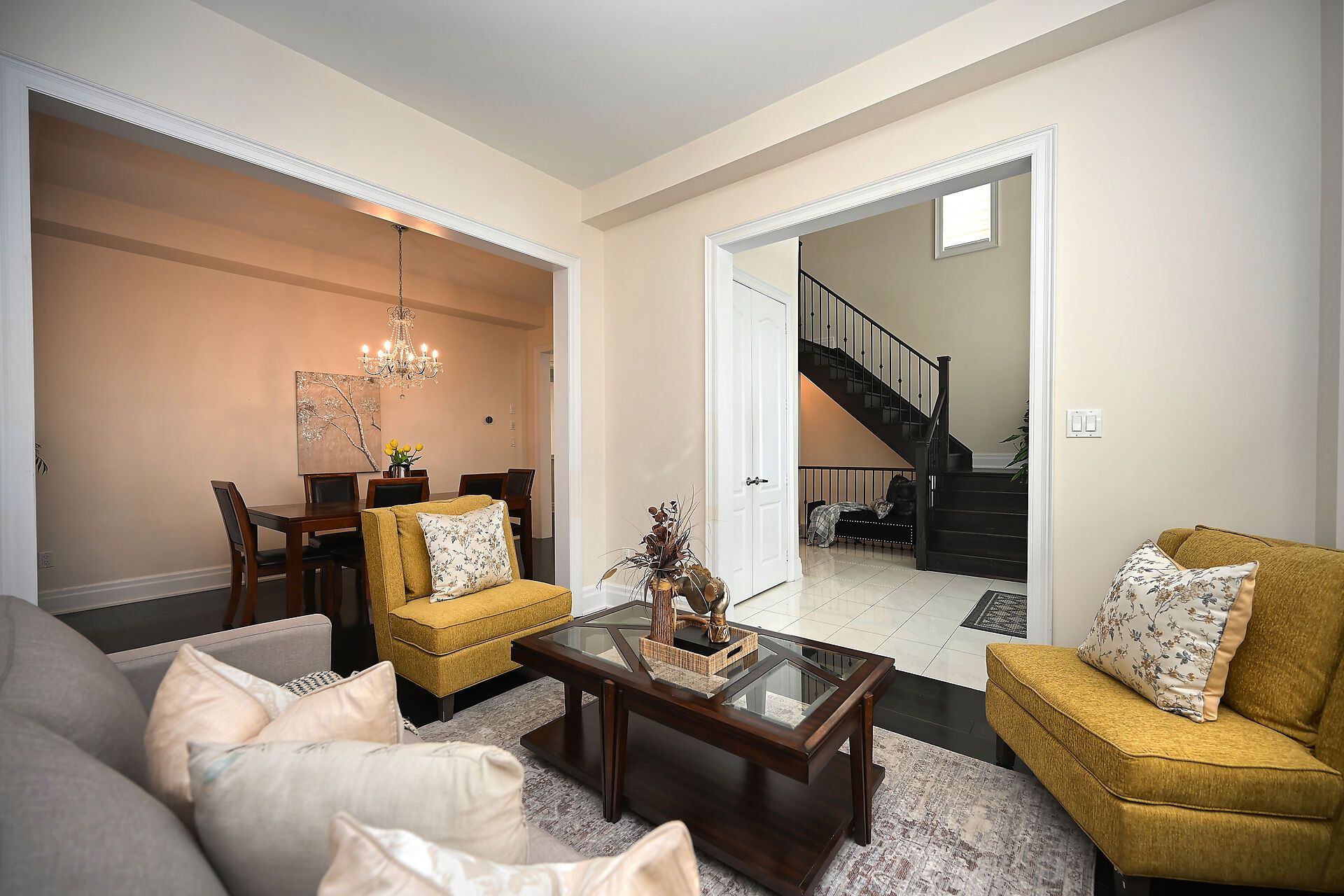 • Grand 18-ft high foyer welcomes you with a stunning chandelier.