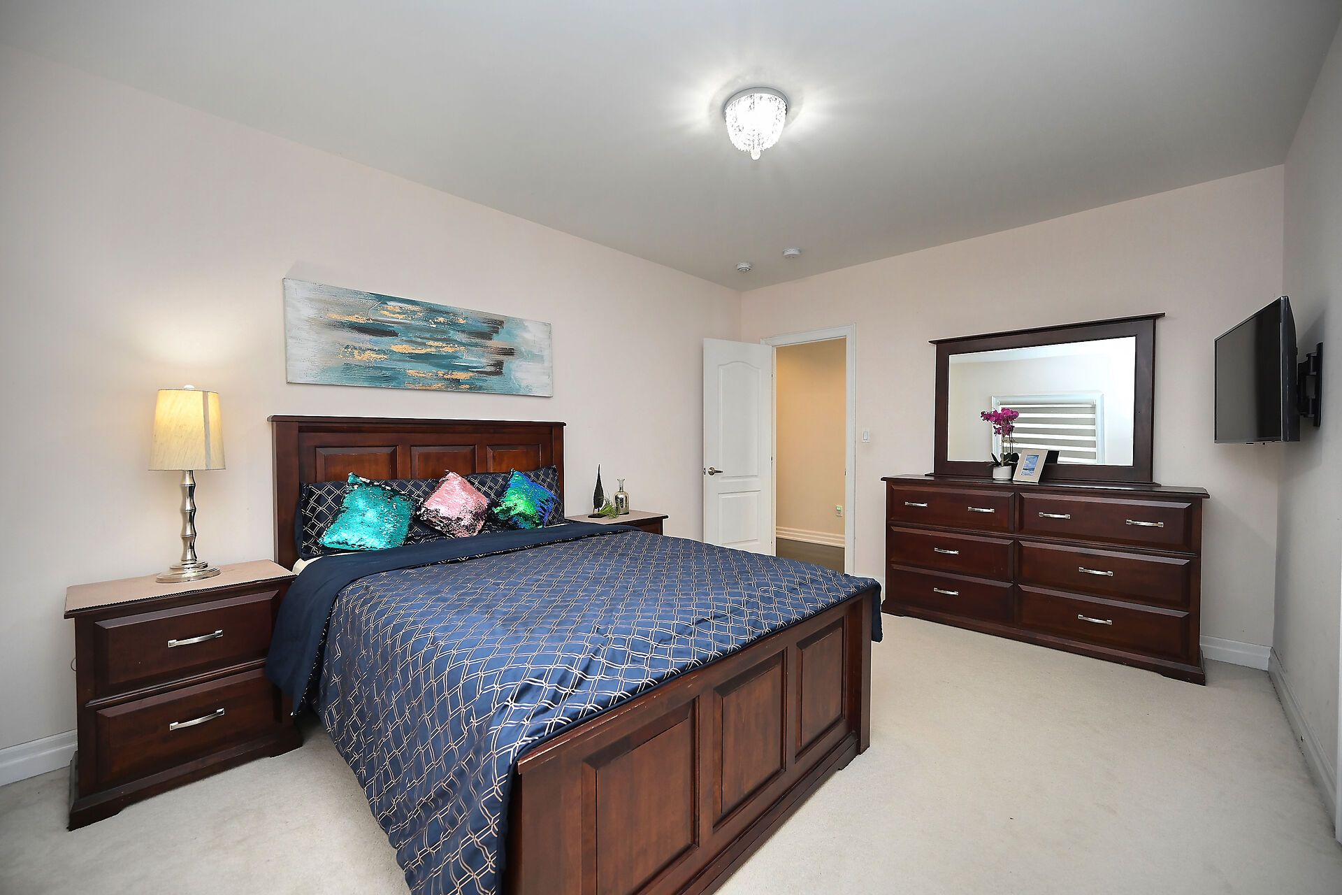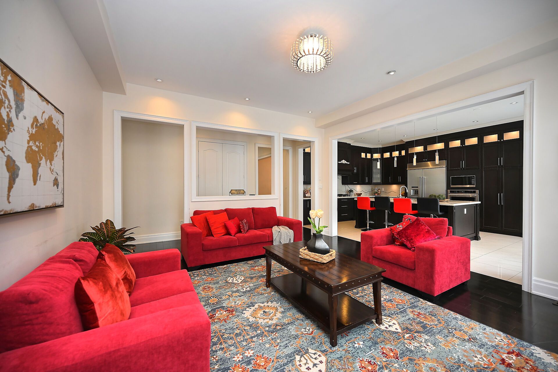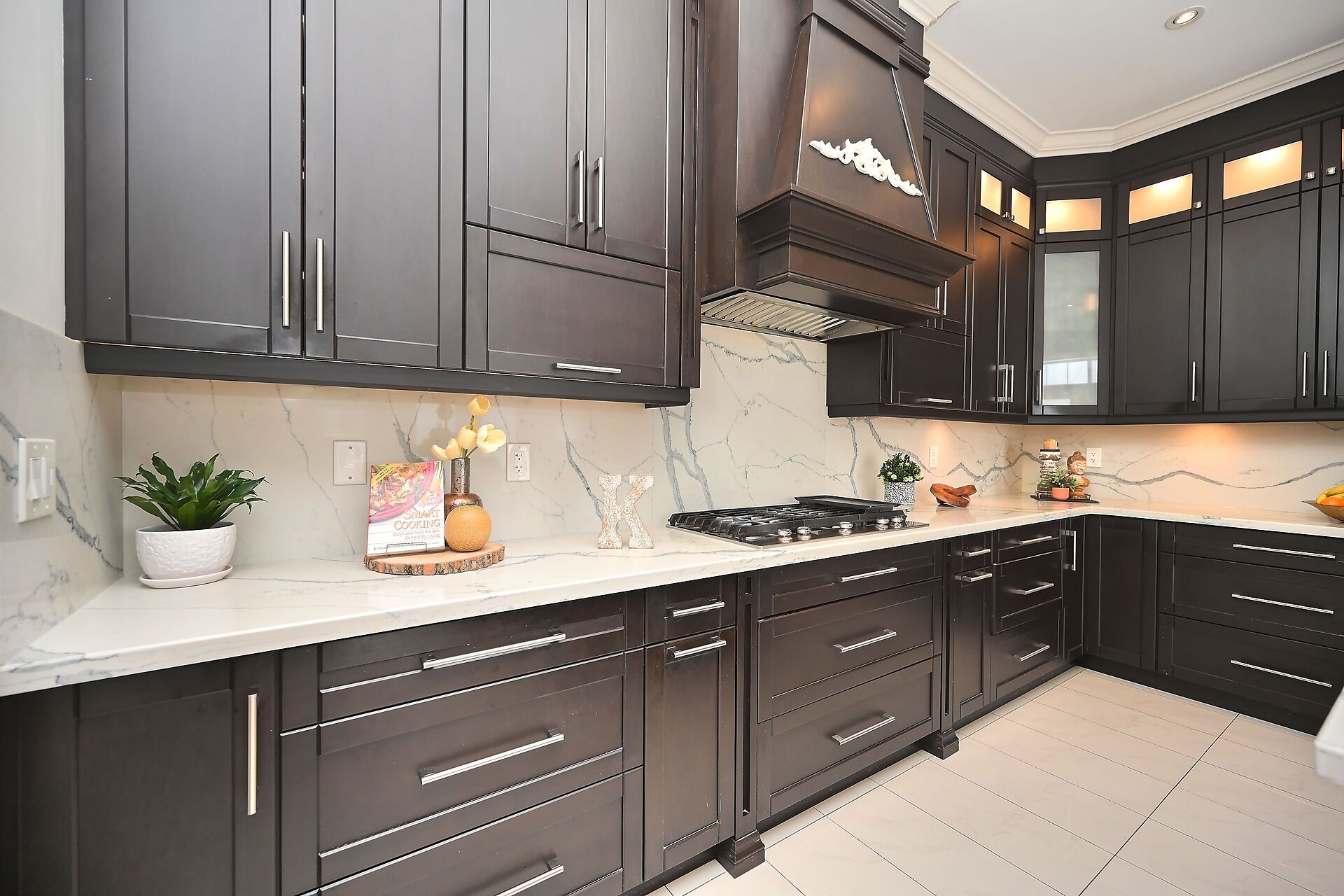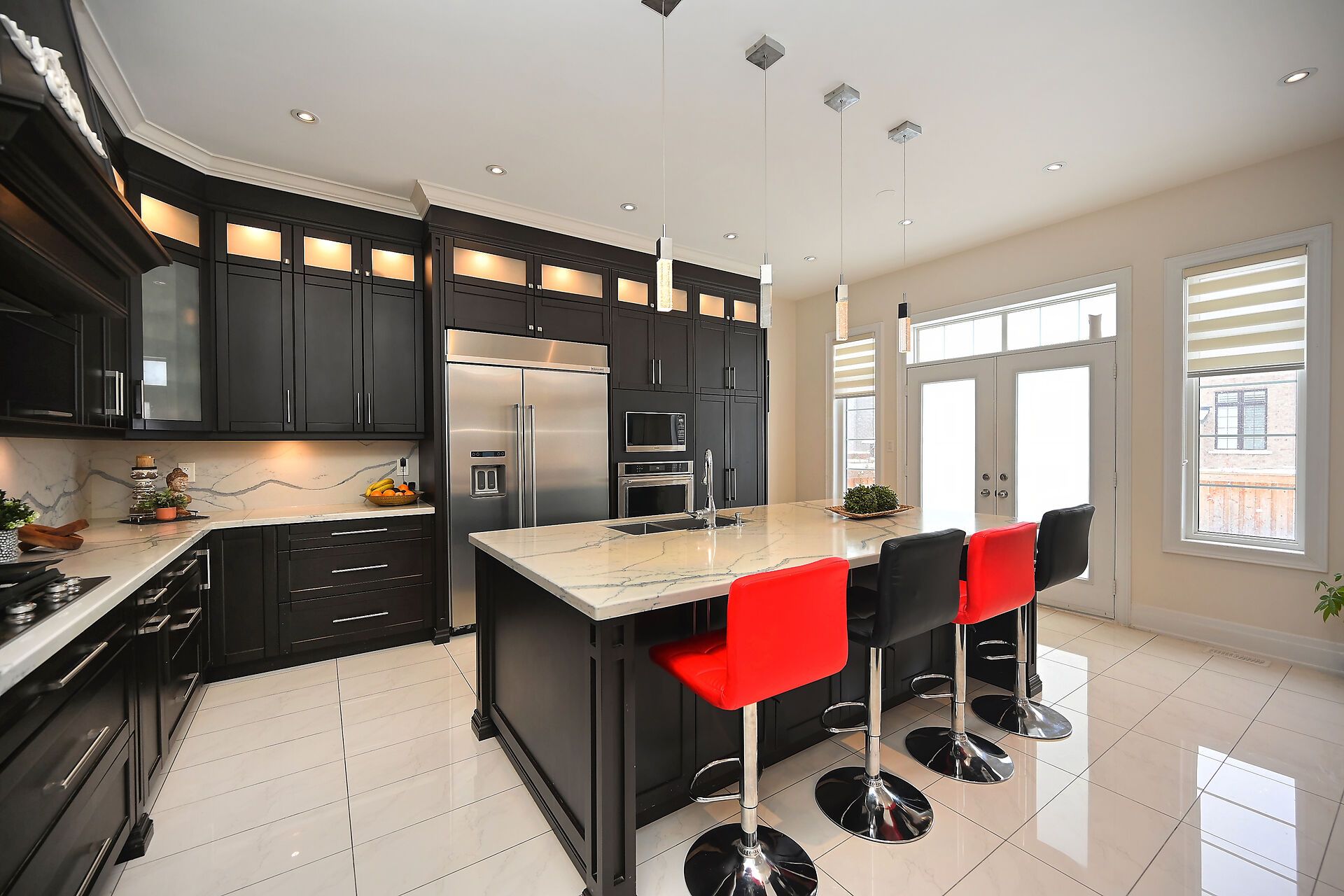 • Grand 18-ft high foyer welcomes you with a stunning chandelier.