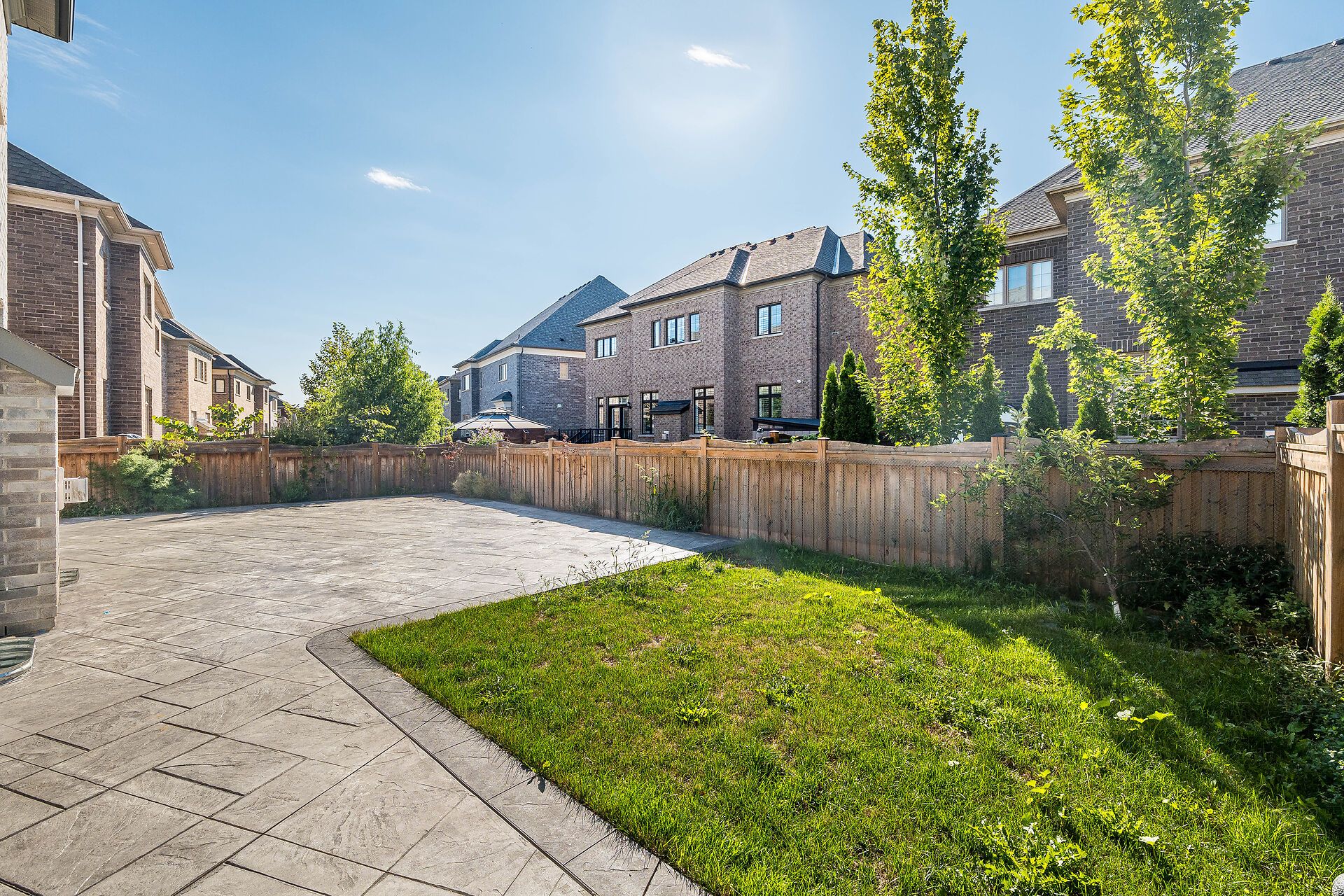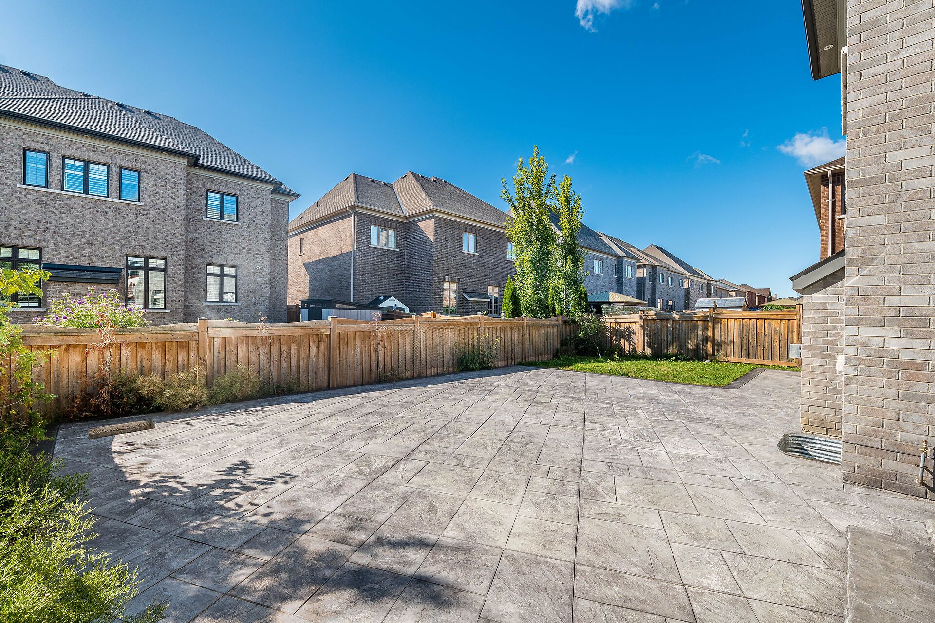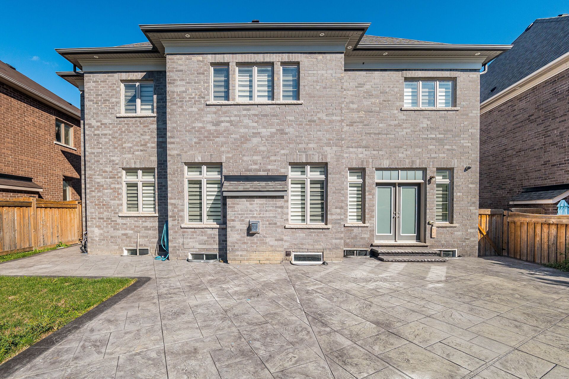• Modern stucco and stone front with an extended interlocking driveway.