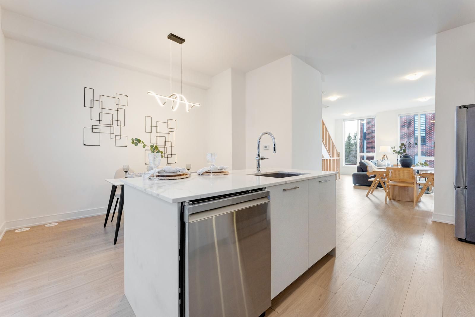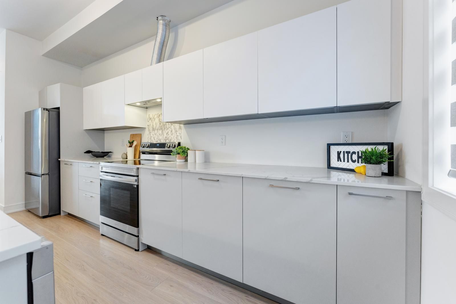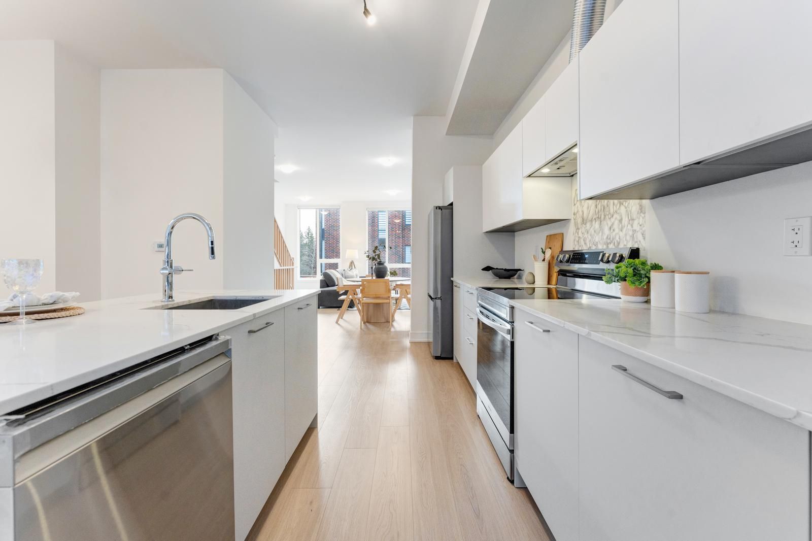 • Modern kitchen features quartz countertops and stainless steel appliances.
