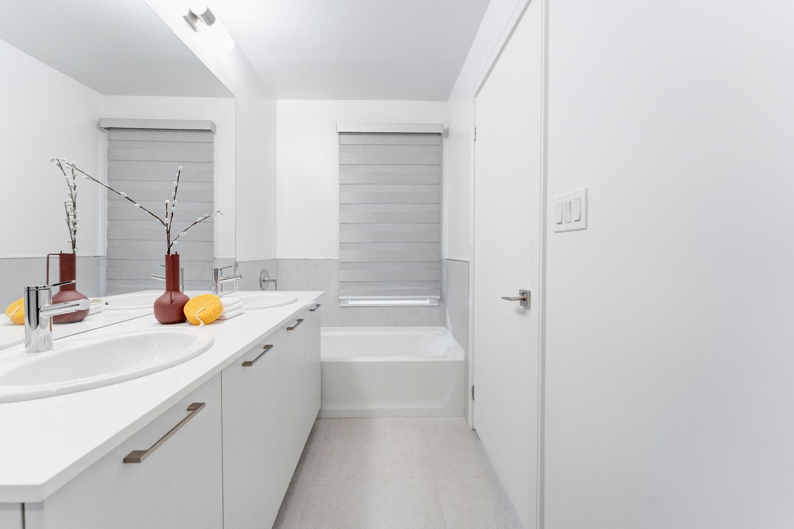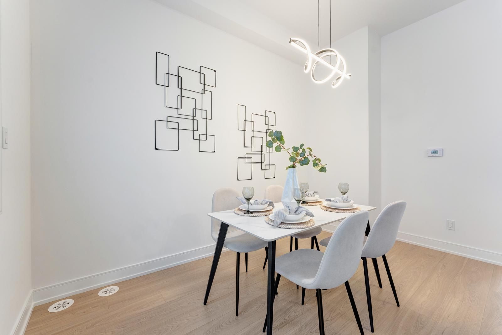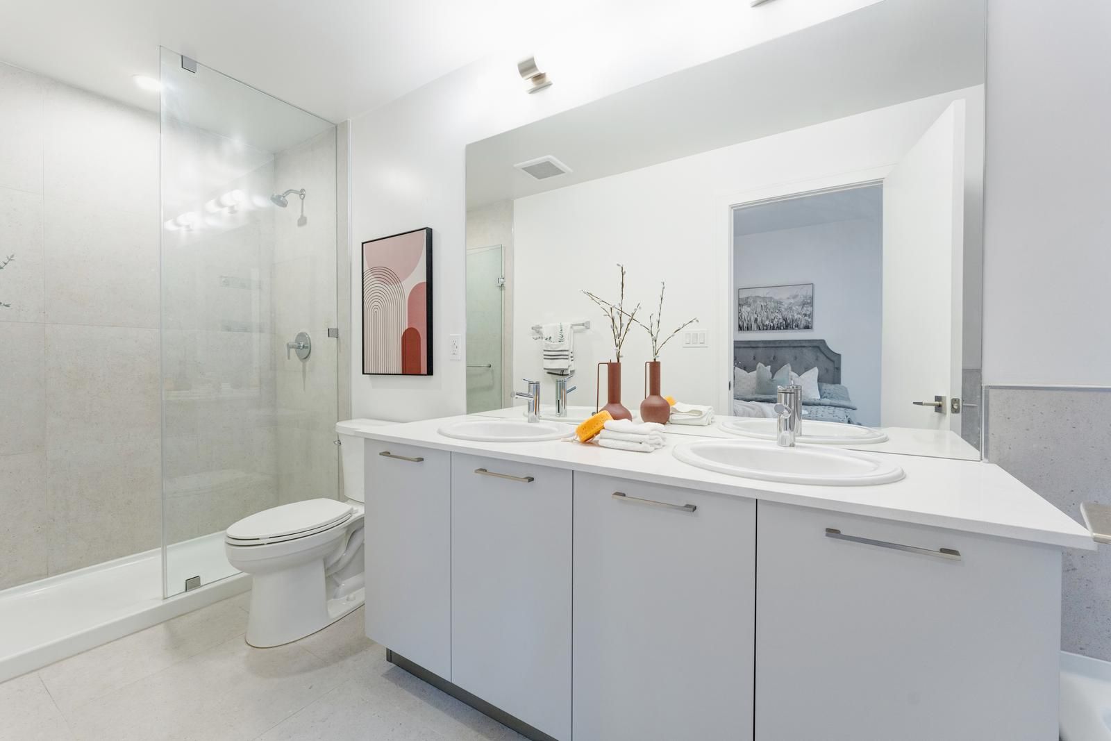 • Modern kitchen features quartz countertops and stainless steel appliances.