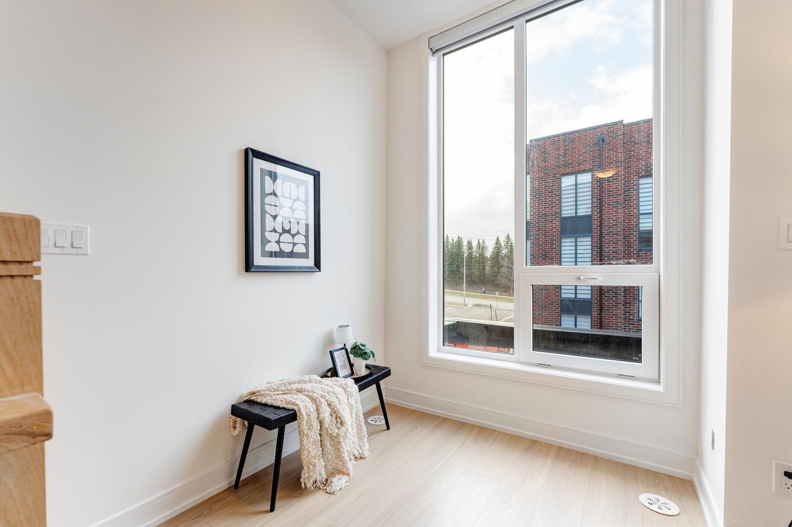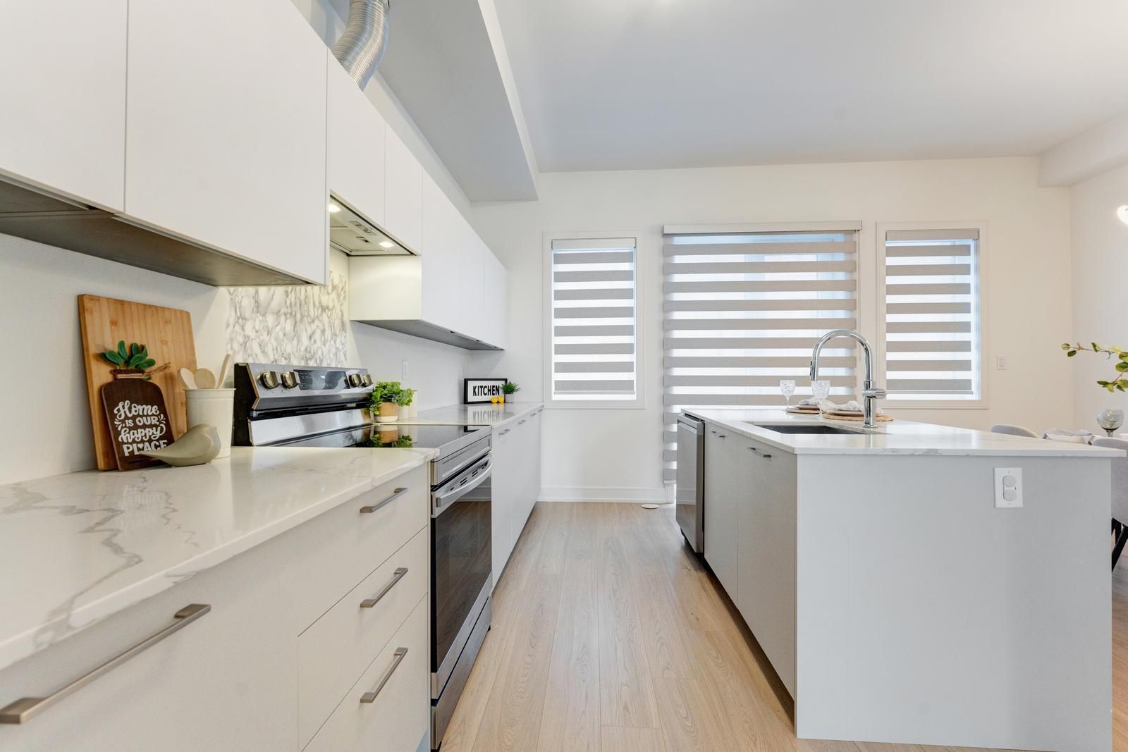 Stunning luxury townhome offering approx. 2,000 sq. Ft. Of upgraded living space in a quiet, family-friendly neighbourhood. Features 10' smooth ceilings on the 2nd floor and 9' smooth ceilings on the main & 3rd floors, with laminate flooring throughout. Bright open-concept layout with separate living and family areas, and a modern kitchen with quartz countertops, soft-close cabinetry & stainless steel appliances. Spacious primary bedroom with walk-in closet and an upgraded 5-pc ensuite featuring quartz counters, double sinks & a frameless glass shower. Includes 2 additional bedrooms and a main bath. Large windows provide abundant natural light. Conveniently located close to schools, shopping & all amenities.
