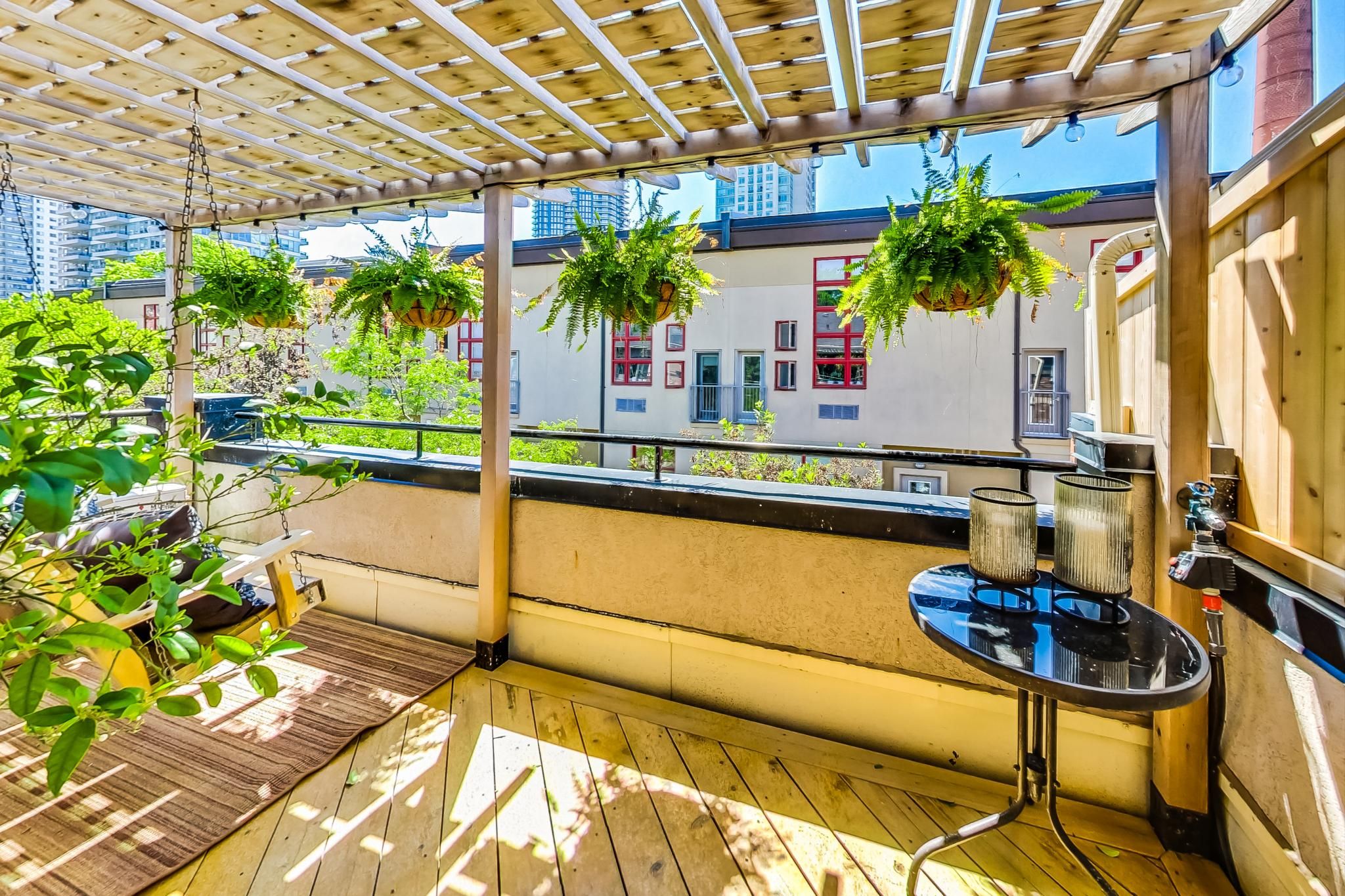 This immaculate condo townhouse discretely tucked away on tree-lined earl street is the prefect spot for anyone seeking low-maintenance living (imagine not having to shovel snow!) coupled with the space and footprint of a house. Beaming with natural light, upgraded finishes and thoughtful touches throughout, this one is really, truly turnkey with over 2198 square feet of living space spread across four levels. Meticulously updated from top to bottom, this sun-soaked end-row townhouse will surprise you with both the level and the quality of tasteful, intentional and organized living. Truly, no detail has been overlooked. Start with the bright white kitchen featuring stainless miele appliances and heated floors. Step outside and enjoy summer evenings on the cedar deck featuring a built-in napoleon barbecue and custom cedar planters and flower boxes. Just upstairs are three more bedrooms with hardwood floors, two with double closets and a brand-new four-piece bathroom with heated floors. On the upper level, the primary retreat awaits, featuring a five-piece ensuite, motorized blinds, a large walk-in closet, and a walkout to a dreamy private terrace complete with cedar deck, cedar pergola and hanging swing bench. On the lower level, a full-sized laundry room, two storage rooms, and a direct access walkout to the self-contained private garage within the complex's underground garage. Interior garage is pre wired for an ev charger. This one is not to be missed!
