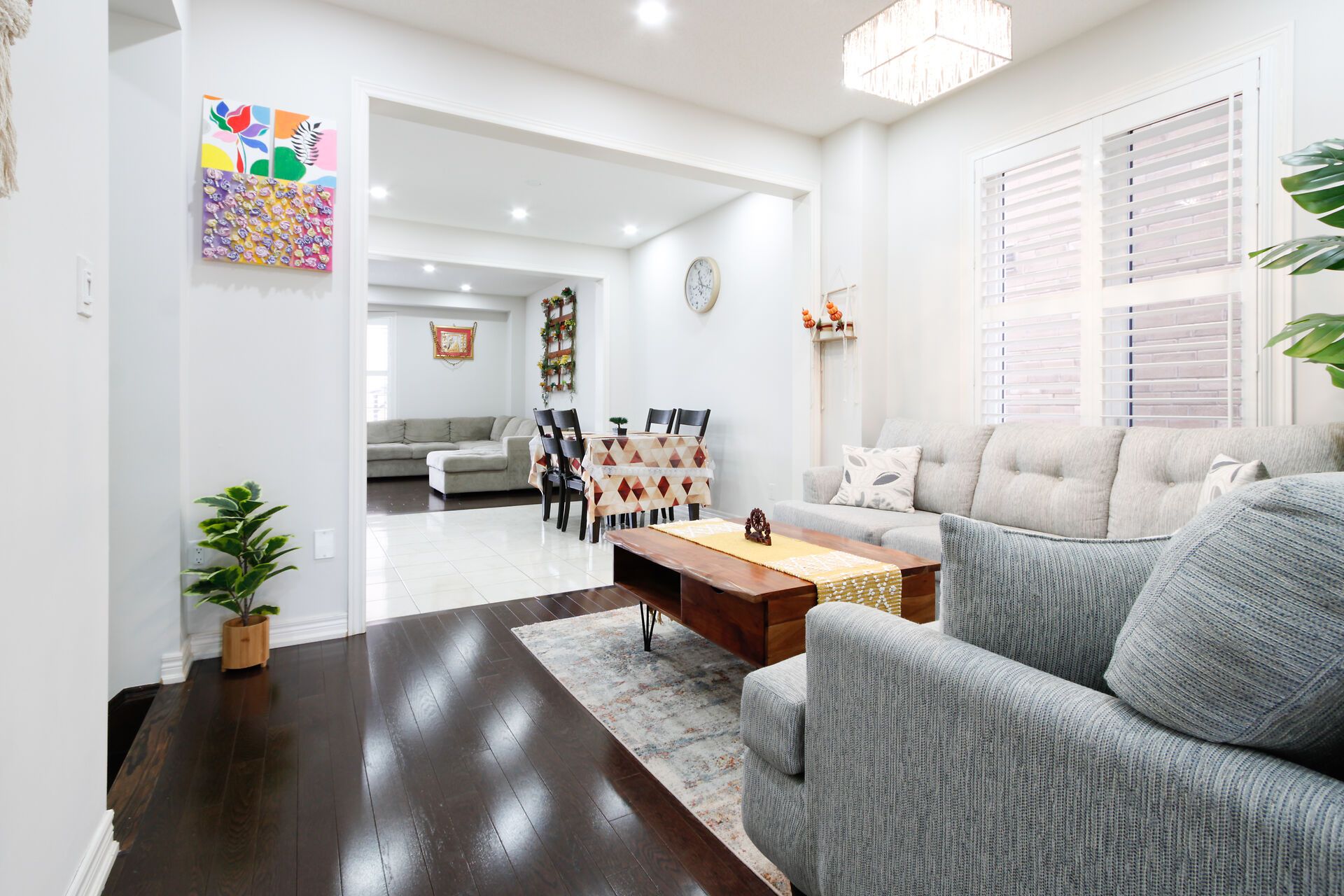 Stunning 4+2 bedroom with a large den detached home - prime location with future costco! No sidewalk! Discover pride of ownership in this meticulously maintained, all-brick detached residence . Situated on a premium lot with no sidewalk and no homes directly in front, this home offers rare privacy and exceptional curb appeal in one of the area's most rapidly developing pockets. Unbeatable location & lifestyle* ultimate convenience: located within walking distance to grocery stores, medical clinics, and kfc.* future value : enjoy the massive appreciation and convenience of a new costco coming soon right across the street! The main level: elegance & function* grand entrance : step through the double-door entry into a soaring, open-to-above foyer with featuring a newly installed porch enclosure , providing an extra layer of insulation and safety.* refined finishes : the main floor features gleaming hardwood floors and an oak staircase.* chef's kitchen : fully upgraded with high-pitched cabinetry, premium granite countertops, and a stylish backsplash.* family living : relax in the spacious family room, highlighted by a cozy gas fireplace-perfect for quiet evenings. Upper level: masterful retreat the second floor boasts four generous bedrooms, including a primary suite designed for luxury:* master suite : features elegant coffered ceilings, a large walk-in closet, and a spa-like 5-piece ensuite bathroom.* upgraded details : modern shower and kitchen faucets installed throughout. The income potential: legal basement apartment* legal basement with private access: a newly built fully legal basement (currently rented) with a separate side entrance.* versatile space : includes two spacious bedrooms and an exceptionally large den area-perfect for an office or gym. Outdoor living & exterior upgrades* premium landscaping : the front, sides, and entire backyard have been professionally interlocked for a clean, low-maintenance finish.