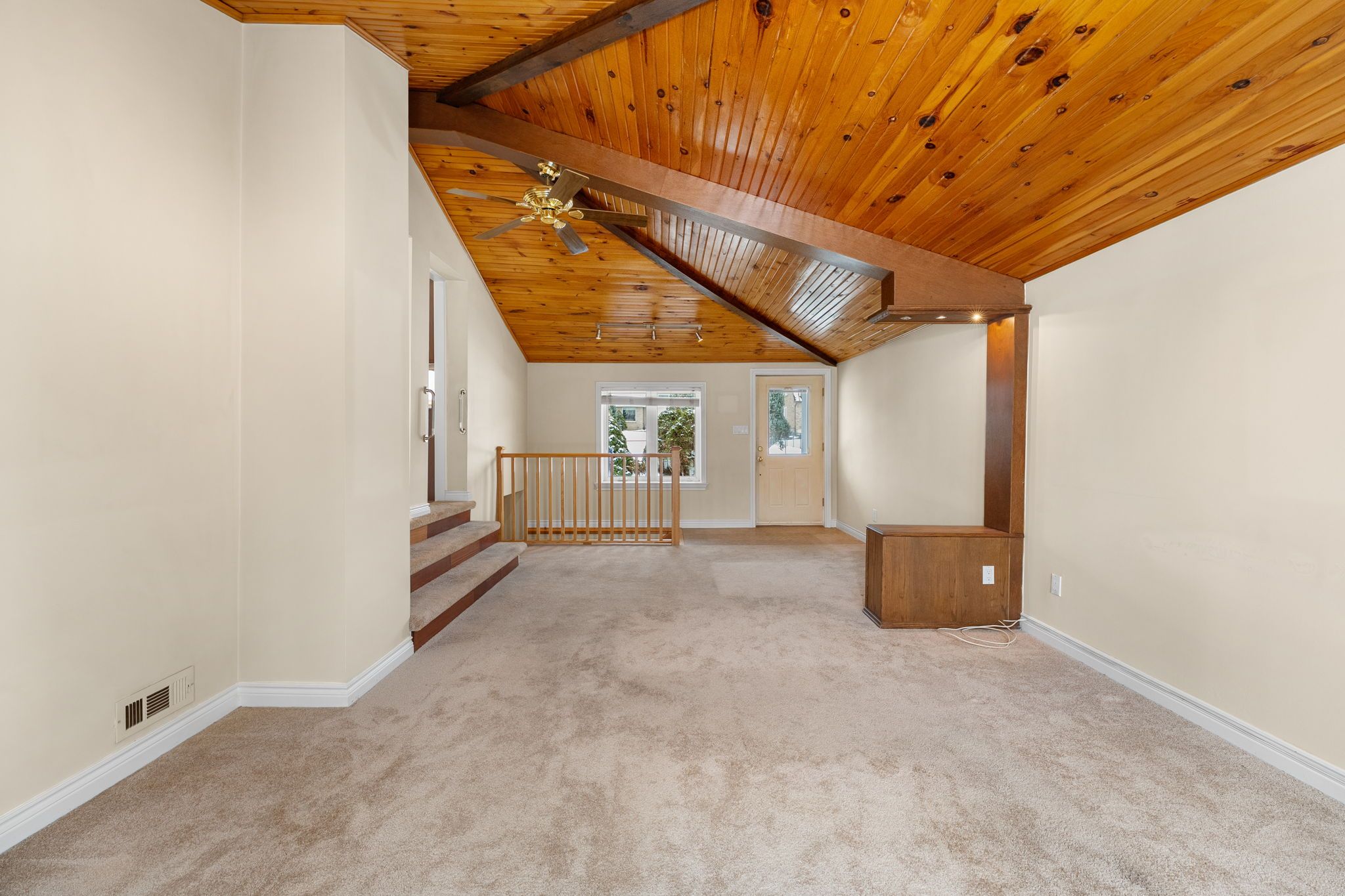 • Converted garage offers a spacious family room with vaulted ceilings.
