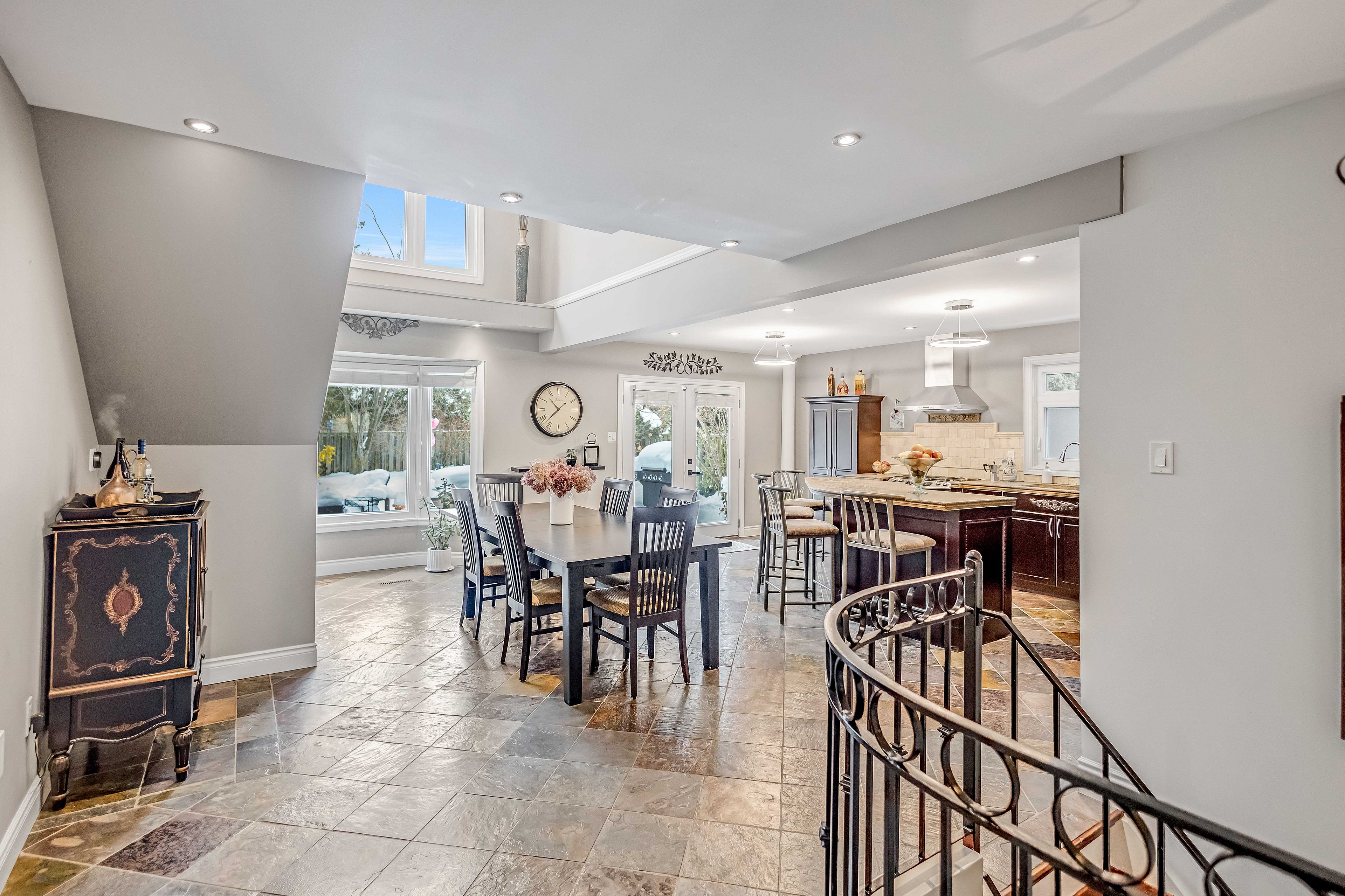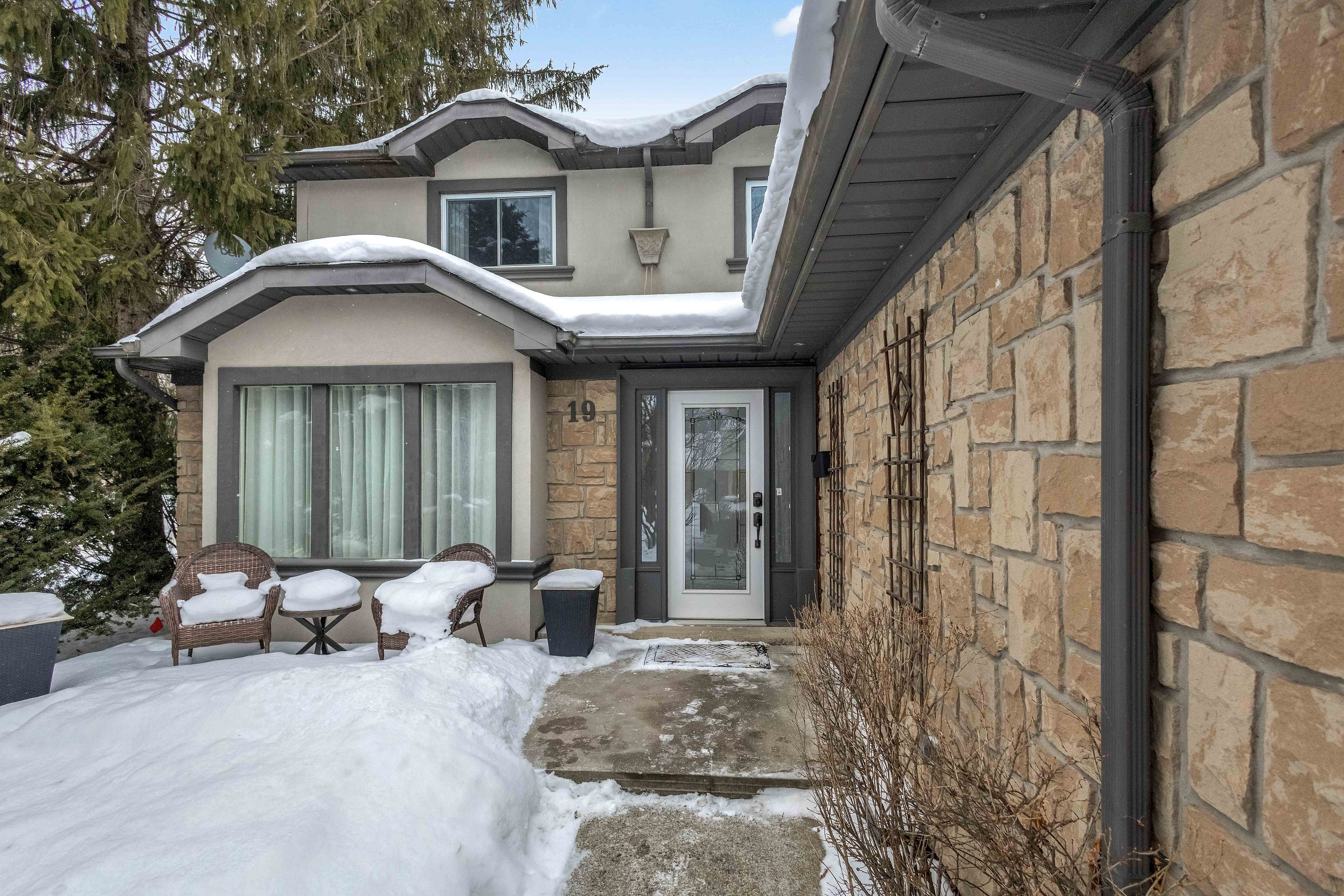 A private escarpment retreat at 19 fieldgate st dundas in cootes paradise. Nestled in an exclusive, private pocket of dundas, this stunning custom home sits on a sprawling corner lot surrounded by mature trees and professional landscaping. The quiet, family-friendly streets offer a serene escape while remaining minutes from downtown boutiques, top-tier schools, and easy highway access. The property boasts breathtaking views of the niagara escarpment and a backyard designed for entertaining, featuring a large stone patio and ample green space for children to play in total privacy. The interior features a masterful open-concept layout defined by soaring vaulted ceilings and floor-to-ceiling windows that flood the kitchen and dining areas with natural light. A formal sitting room and a cozy family room with a wood-burning fireplace provide versatile spaces for every occasion. With main floor laundry and a full bathroom with a shower, this home offers rare potential for one-floor living. Upstairs, you'll find four spacious bedrooms plus a den (potential 5th bedroom) and a luxury spa-like bath with a double vanity and walk-in shower. Adding incredible value is the fully finished in-law suite with a separate entrance, complete with its own kitchen, living area, bedroom, and bath. This space offers the ultimate flexibility for multi-generational living or a high-end rental. Experience the perfect blend of custom luxury and natural beauty in one of dundas' most coveted neighborhoods.