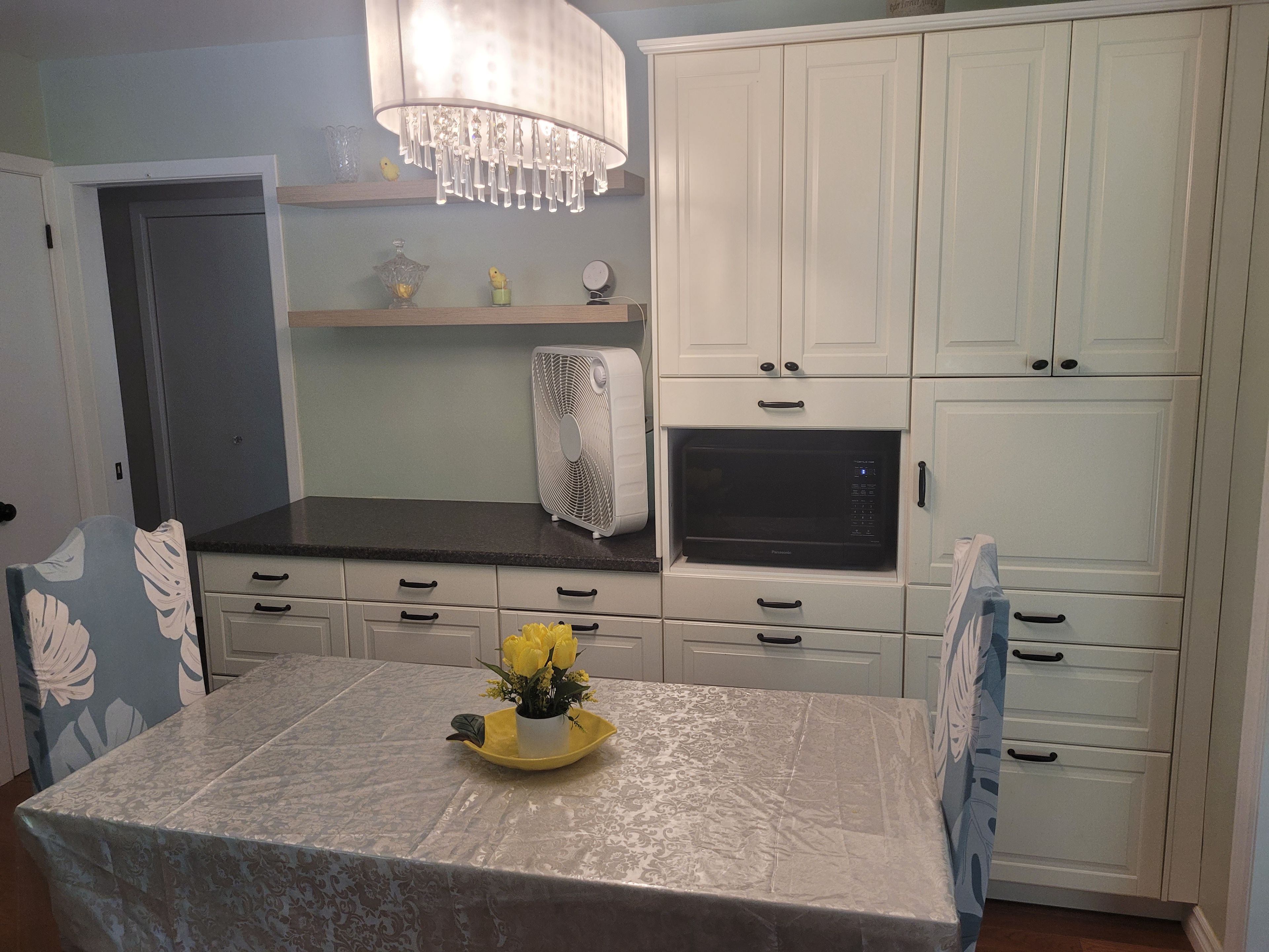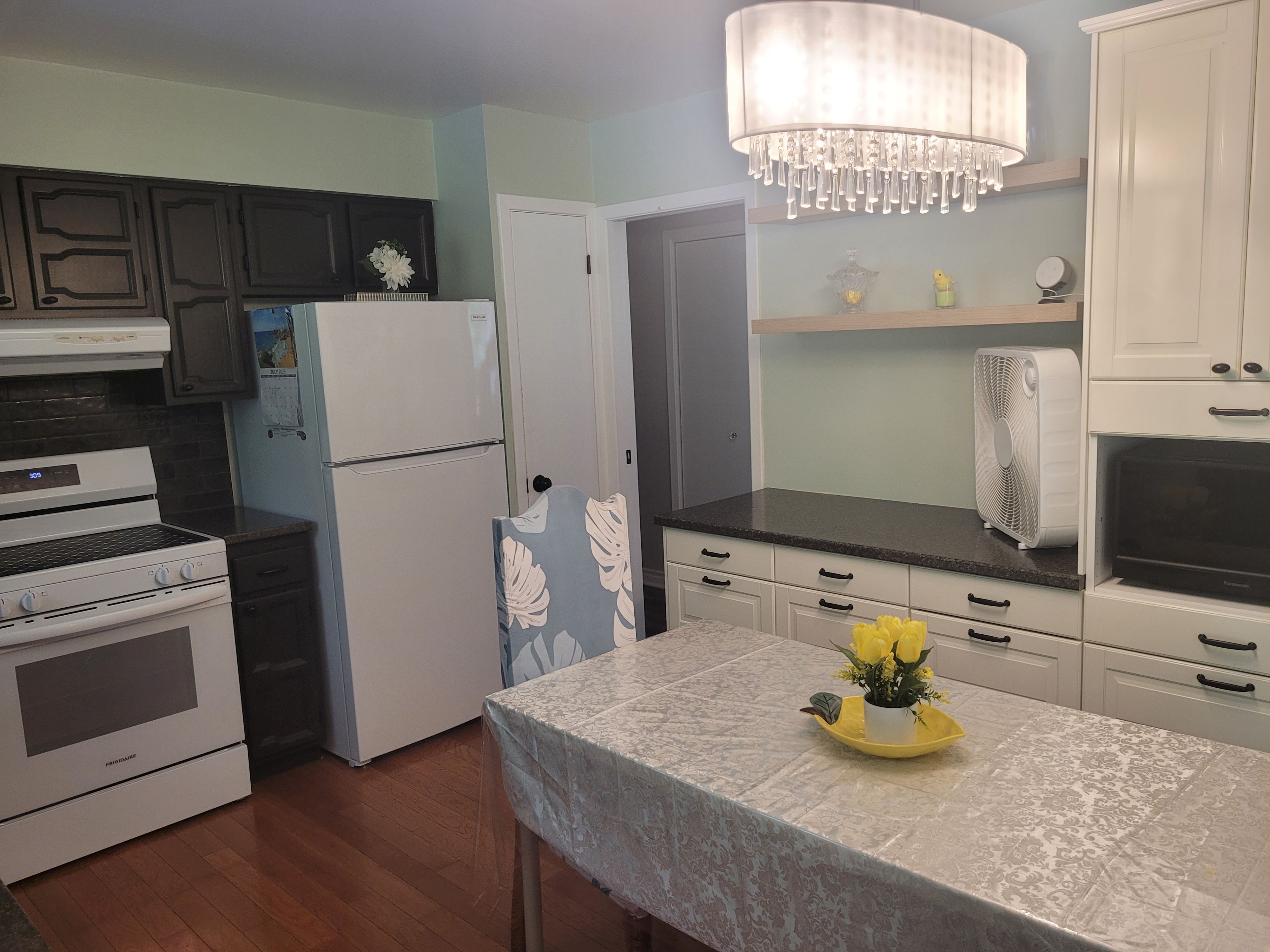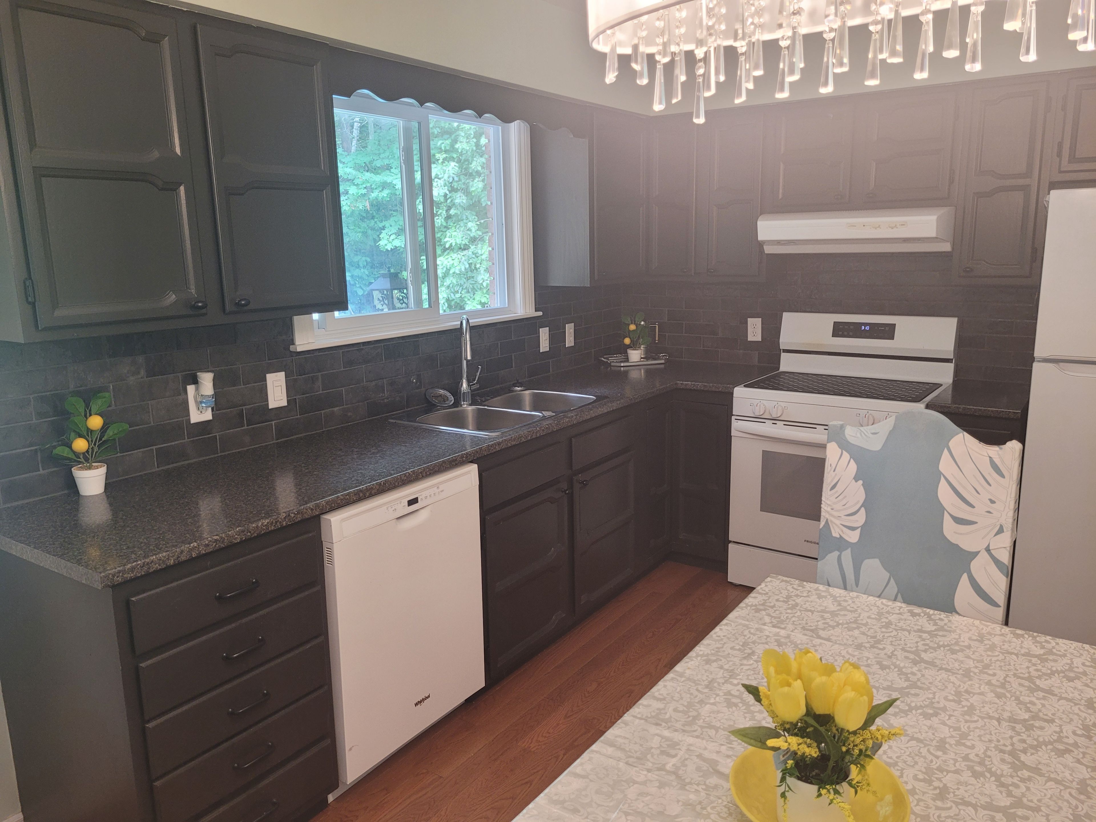 • Renovated kitchen with upgraded cabinetry and smart storage solutions.