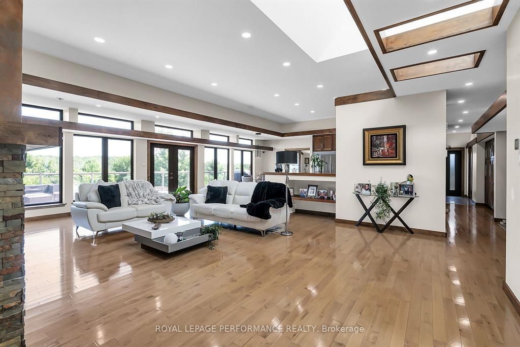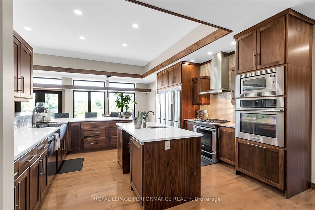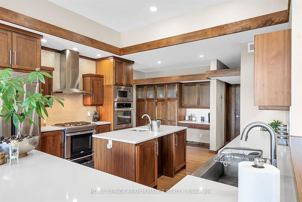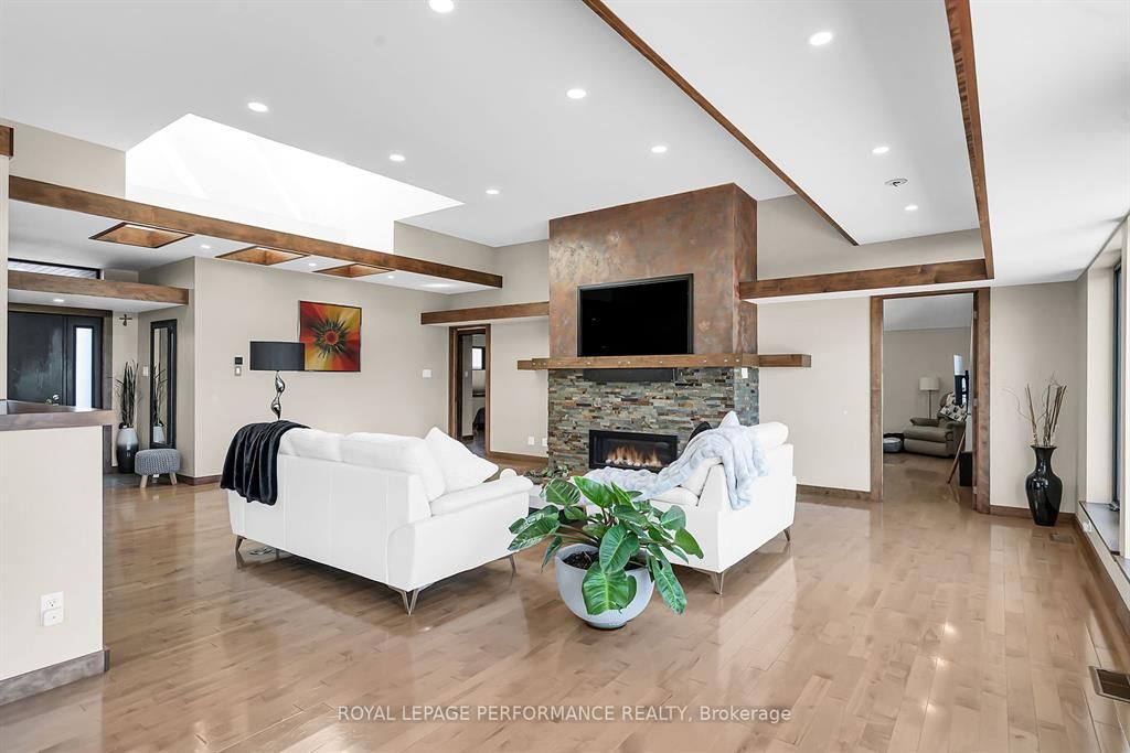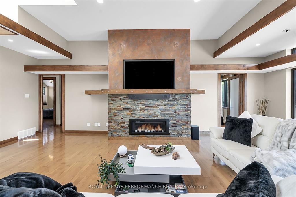 Modern and elegant 3+2 bedroom home with walkout situated in the prestigious arrowhead estates. A world of sophisticated design awaits you in this meticulously crafted modern home. The open-concept living area seamlessly flows into a gourmet kitchen. It features solid walnut cabinetry, stainless steel appliances, pantry and quartz countertops. An abundance of led and natural lighting accentuate the clean lines and minimalist aesthetic. The ledge stone fireplace is the centrepiece of the spacious living room. The primary suite, complete with a spa-like ensuite bath, tiled shower and walk-in closet. The 2nd and 3rd bedrooms with ample closet space. Gaze at the morning sunrise from the large resin deck with glass railings. A perfect space for entertaining or relaxing. Finished walkout with in law suite potential, boasts a heated flooring, functional kitchen and breakfast bar, family room with gleaming tile, 3pc bathroom, 4th and 5th bedroom, fitness room and laundry. Other notables: power skylights, solid wood doors and trims, icf construction, hot water on demand, 3 car garage with heated floor and room for toys, landscaped. With over 5000 sq feet of finished living space, the possibilities are endless. *some photos have been virtually staged.