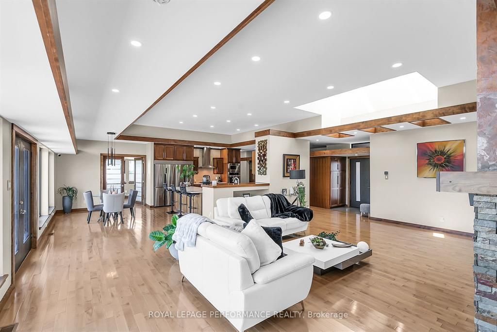 • Open-concept living area features a gourmet kitchen with quartz countertops.