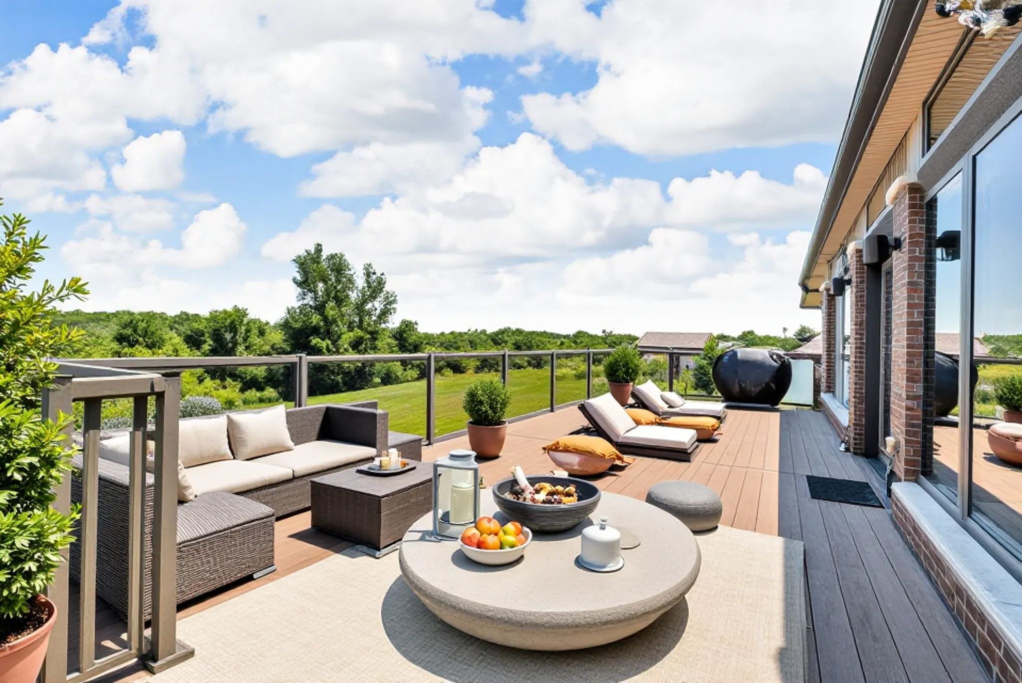 • Large resin deck with glass railings, perfect for sunrises and entertaining.