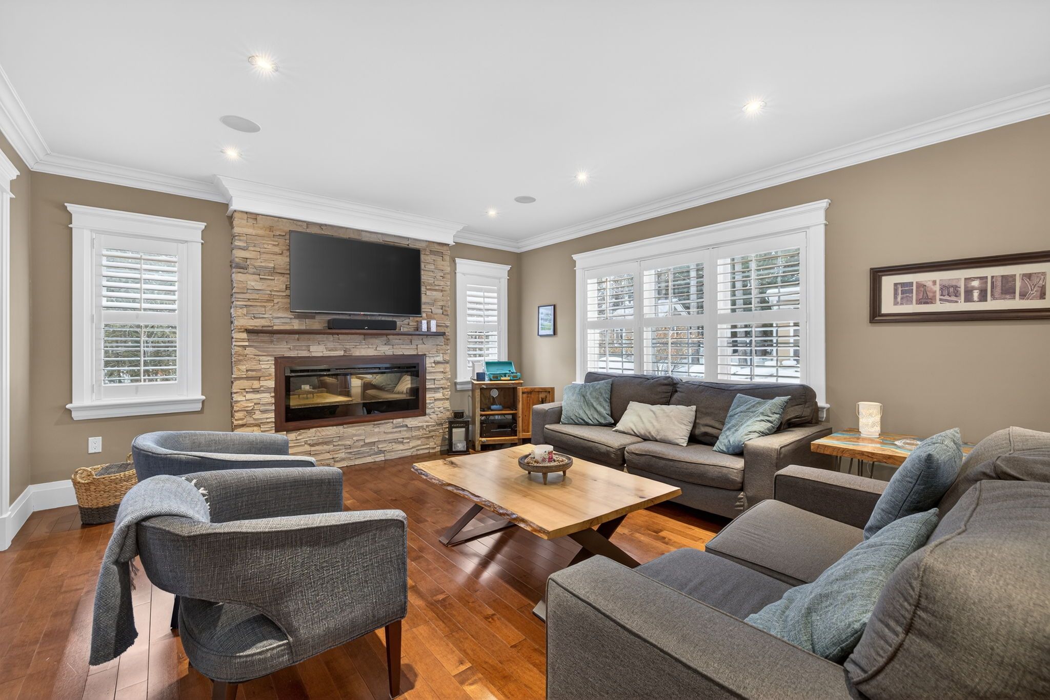 • Four large bedrooms, including a primary suite with a walk-in closet.