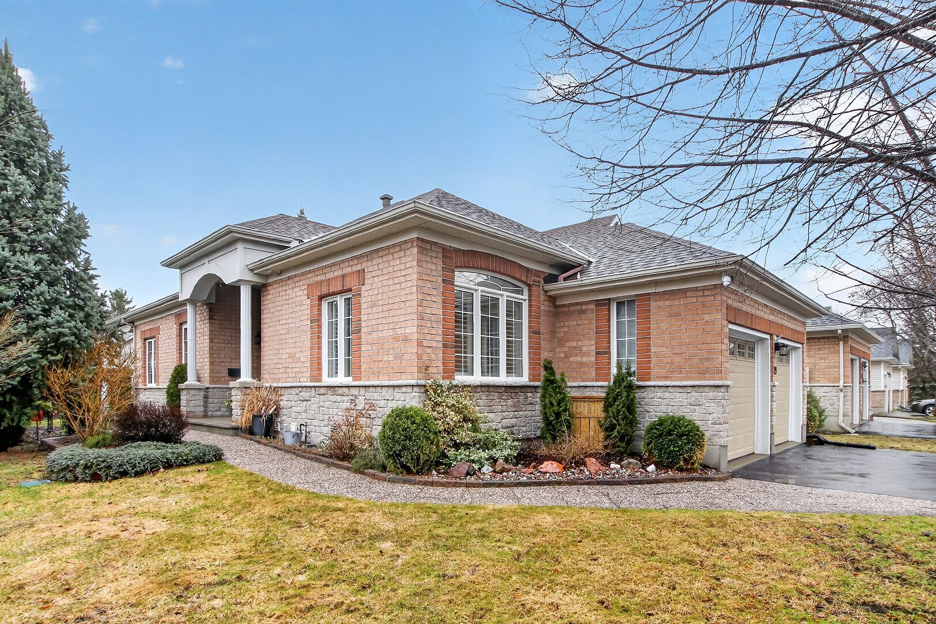 Adult living at its best! Beautifully maintained and extensively upgraded, this home offers a well-designed layout with 2+1 bedrooms and 3 full bathrooms. Gleaming hardwood floors and quality tile flow throughout the main level, complemented by freshly painted neutral décor. The updated kitchen features quartz countertops, abundant cabinetry, and newer stainless steel appliances, along with an eat-in area and patio doors leading to a private deck. The living room, complete with a gas fireplace, and the dining room provide an ideal setting for entertaining. The spacious primary bedroom includes a walk-in closet, comfortable sitting area, and updated ensuite bath. A main floor guest bedroom also serves perfectly as a home office or den with convenient access to the 4-piece family bathroom. Main floor laundry is equipped with newer washer and dryer and offers inside access to the fully drywalled 2-car garage. The recently finished lower level features a large family room, a third bright bedroom, a hobby room, and a full 4-piece bathroom. Luxury vinyl flooring with new trim has been recently installed, and ample storage with workbench and built-in shelving enhances functionality. Additional features include an irrigation system and custom window shutters. Major updates include roof (2011) and furnace and garage doors (2020). The exterior is beautifully landscaped with mature gardens and hedging, offering exceptional privacy. Residents enjoy access to community amenities including a clubhouse, inground pool, and pickleball/tennis courts, with exterior maintenance that includes grass cutting and snow removal on laneways and walkways. Located in the sought-after adult lifestyle community of tweedsmuir on the park in kanata lakes. 24 hours irrevocable on offers. Avg monthly utility costs: gas $90. 41; water $89. 22; hydro $128. 28; association/co-tenancy fees $305/month (snow clearing, lawn care/gardening and clubhouse)