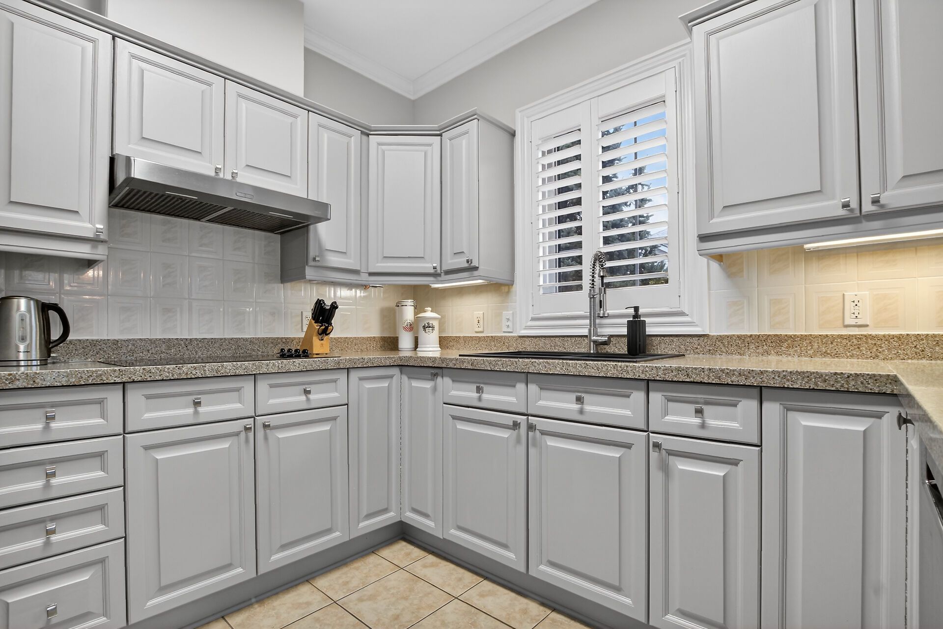 • Updated kitchen features quartz countertops and newer stainless steel appliances.