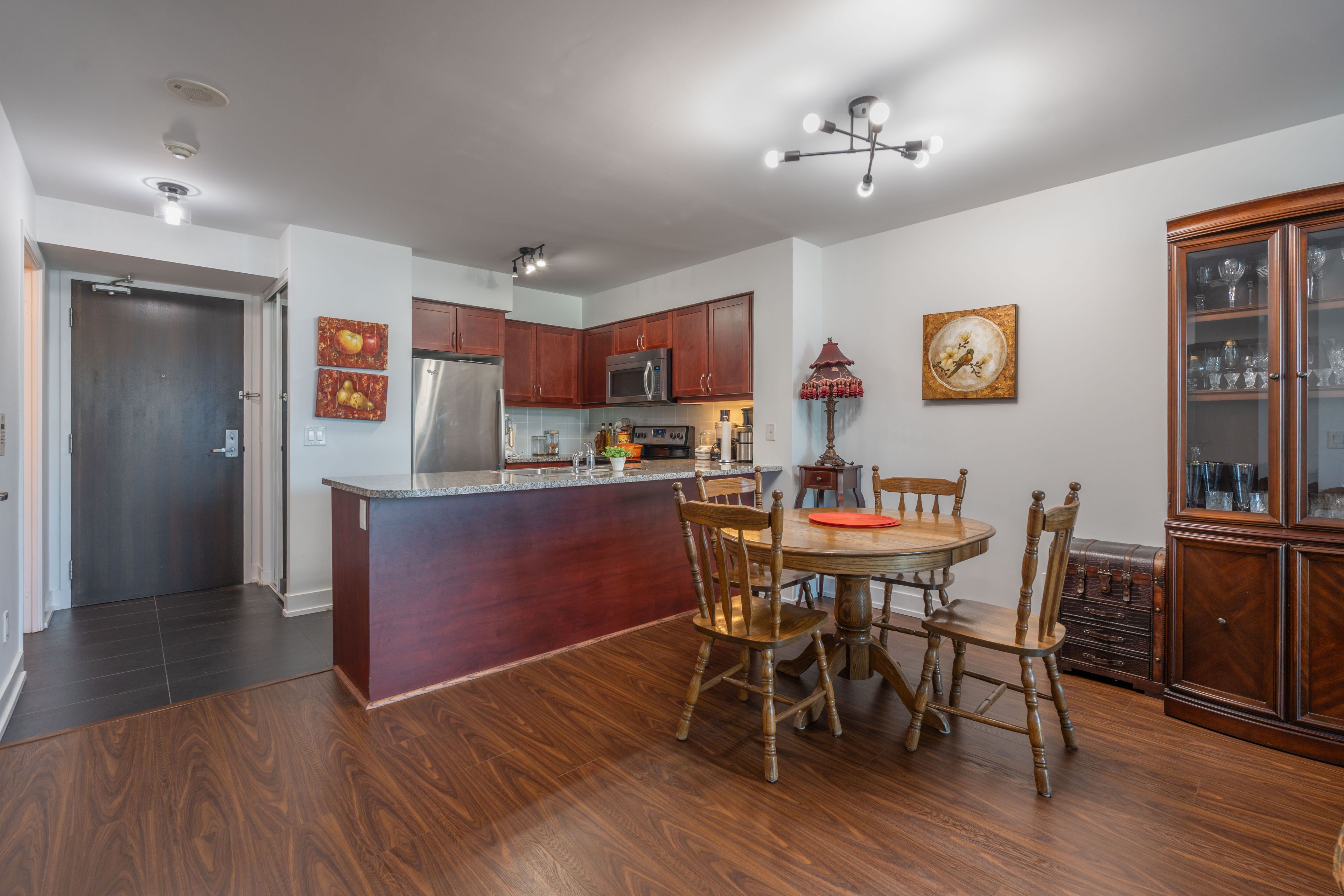• Spacious open-concept layout with modern kitchen and granite countertops.