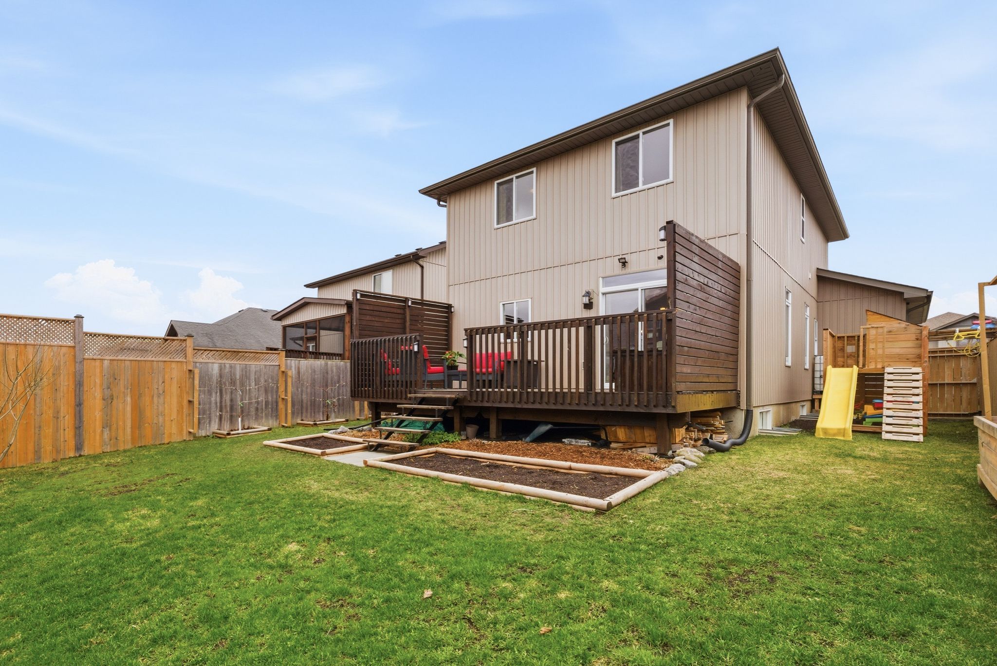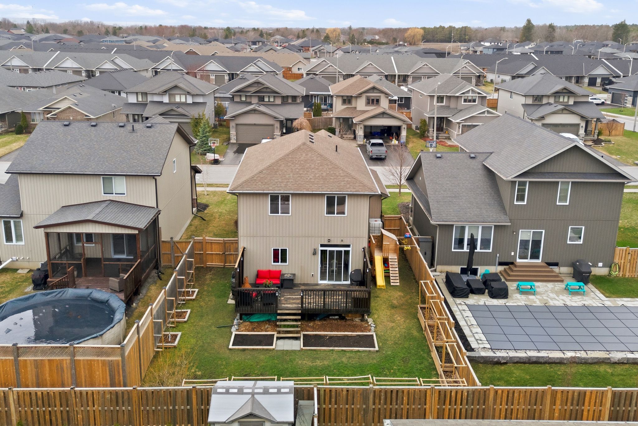 Built in 2015 & feels like new. 19 granite drive is ideally situated on an interior street, just two blocks from the park offering pickle ball & tennis court, children's play area + open fields to run. This spotless home, with over 2,000 sq feet of finished living space provides everything a family needs & more. Spacious foyer connects from the double garage as well, providing 2 closets & convenient 2 piece powder room. The main living area, quietly tucked to the rear grants 9' ceilings throughout this comfortable space. The impressive kitchen promotes ample cabinet storage & classy staggered upper cupboards upgrade with complimenting backsplash, reverse osmosis drinking water & detached island overlooking the living & dining area. The transom window features allows natural sunlight to filter in & up the stairs via the strategic custom wall opening. Upper level provides 3 great sized bedrooms, the primary with a massive walk-in closet & 3 piece ensuite offering a step in shower with bench seating. The function continues with a large 4 piece bath and dedicated laundry room complete with widow & laundry sink. The perks extend into the basement with freshly finished recreation & bonus room, currently enjoyed as a gym with two windows offering many future use options to suit your own needs. Enclosed rough-in bath area provides a 4th bathroom option and fabulous storage in the utility room, under stairs area + custom garage shelving. Amazing exterior grants a large deck with gas bbq line & privacy feature overlooking the fenced in yard, surrounded by raised garden beds & convenient side gate access on each side. Enjoy the fun children's play structure & the fruit offerings from the honeycrisp apple, bartlett & bosc pear trees. Potter's creek is a family friendly neighbourhood within great proximity to paved walking, biking & roller blading trails, popular schools, shopping, cfb trenton & the beautiful bay of quinte. Open house:sunday april 19, 11am-12:30pm