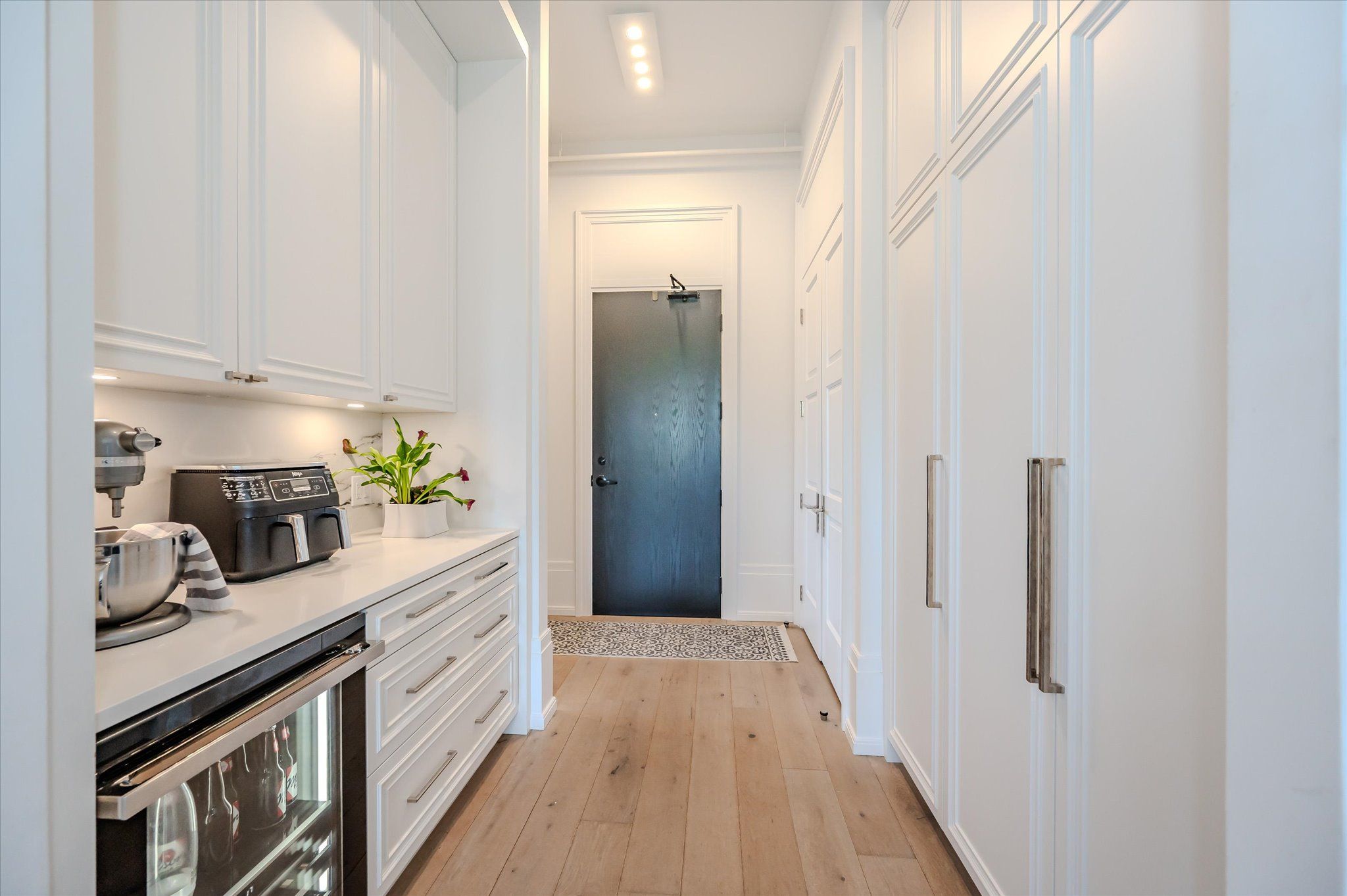 • Spacious kitchen with a large island and built-in appliances.