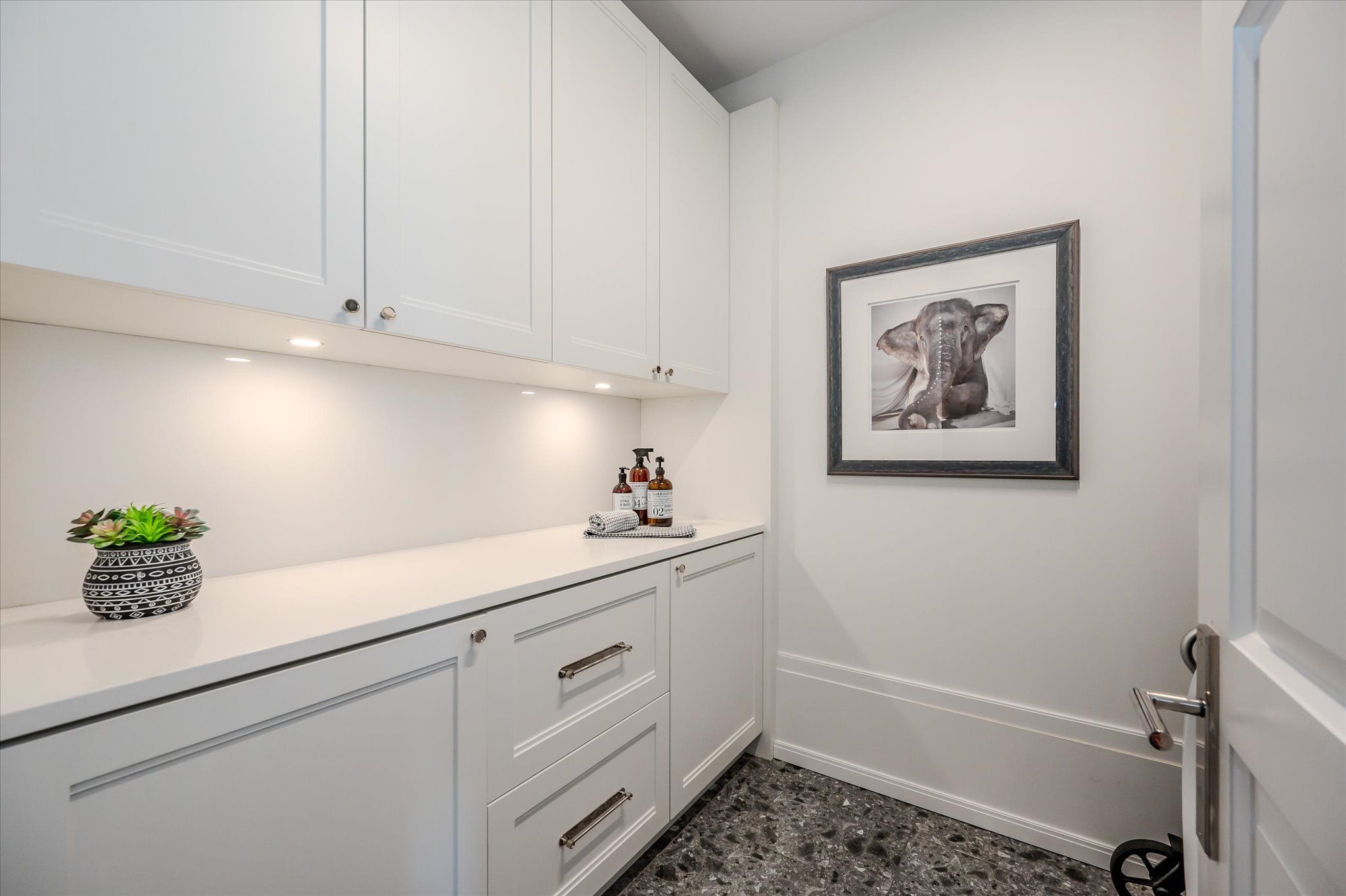 • Spacious kitchen with 18' island, built-in appliances, and servery.