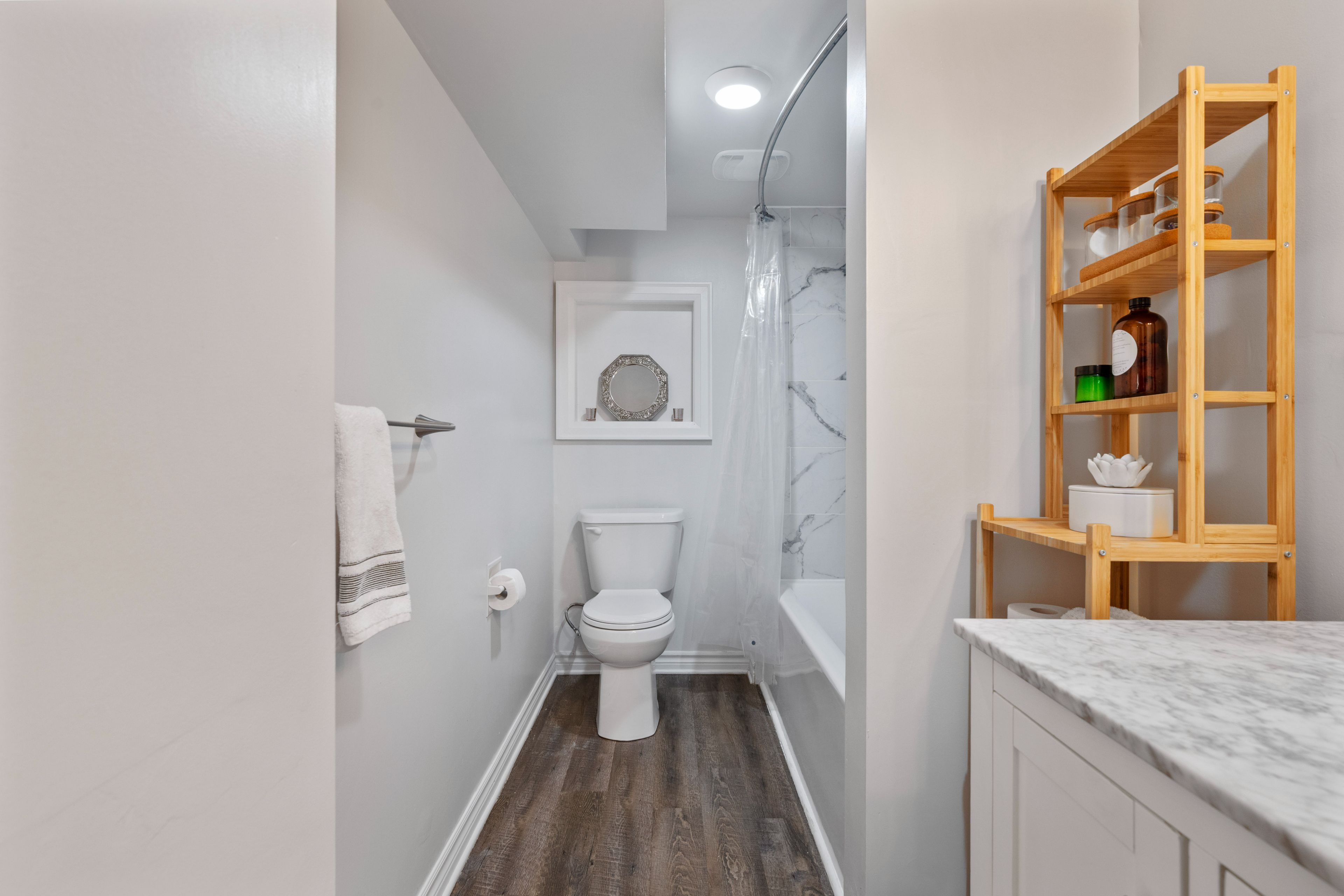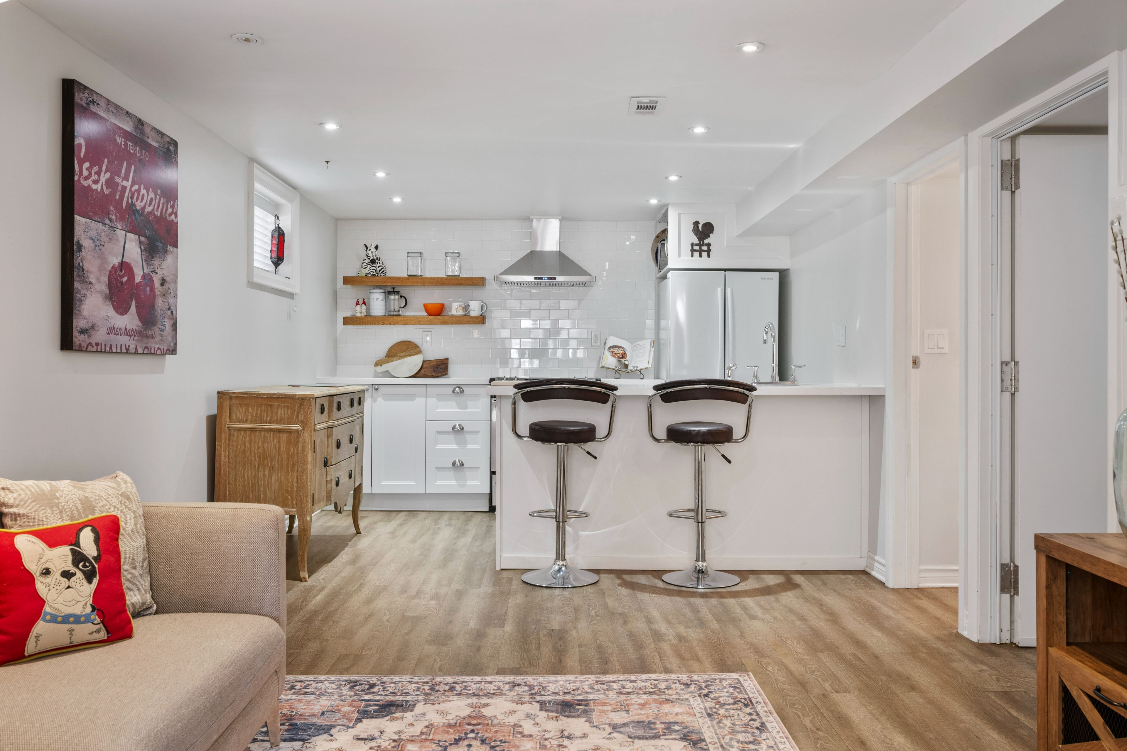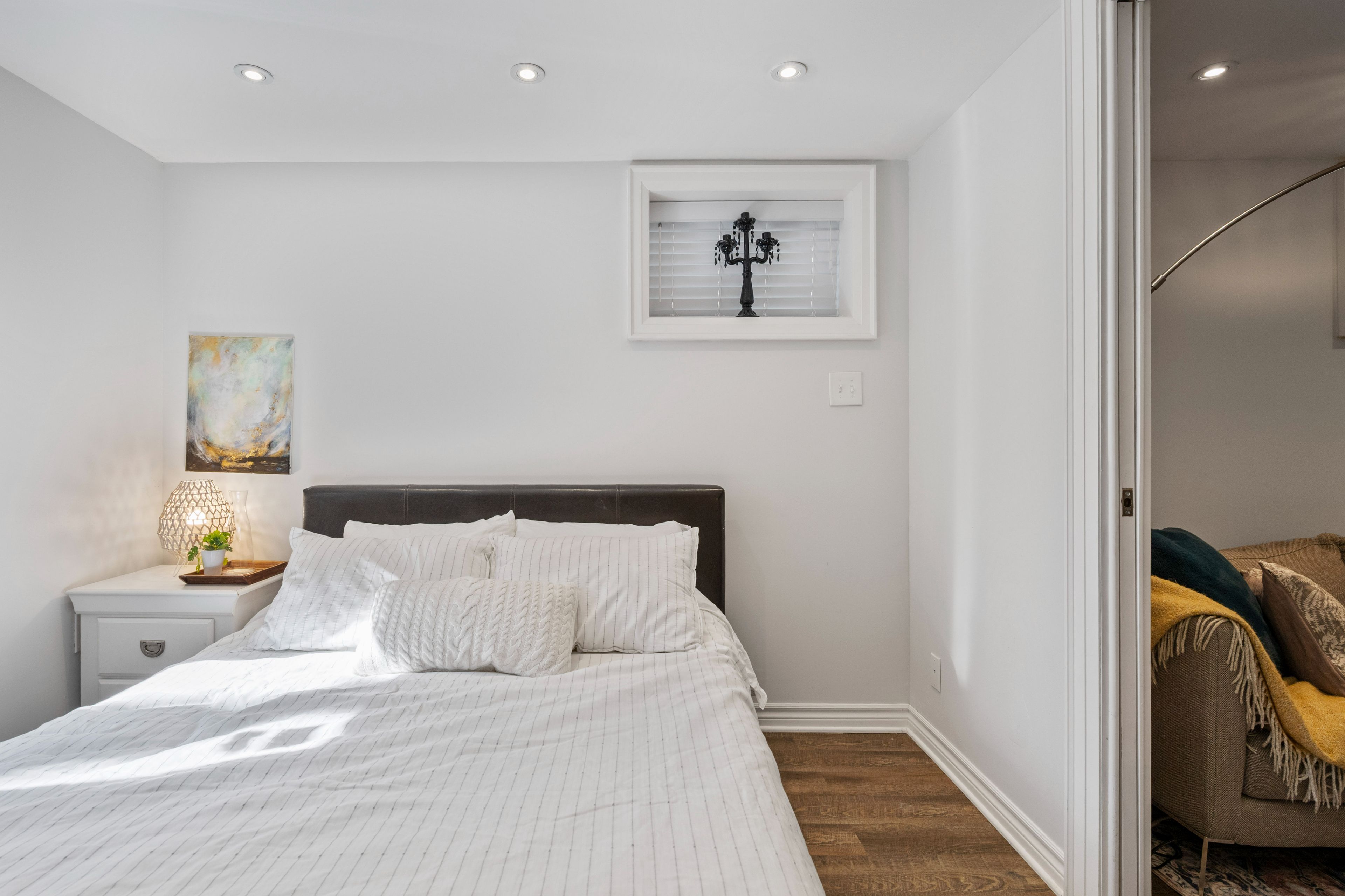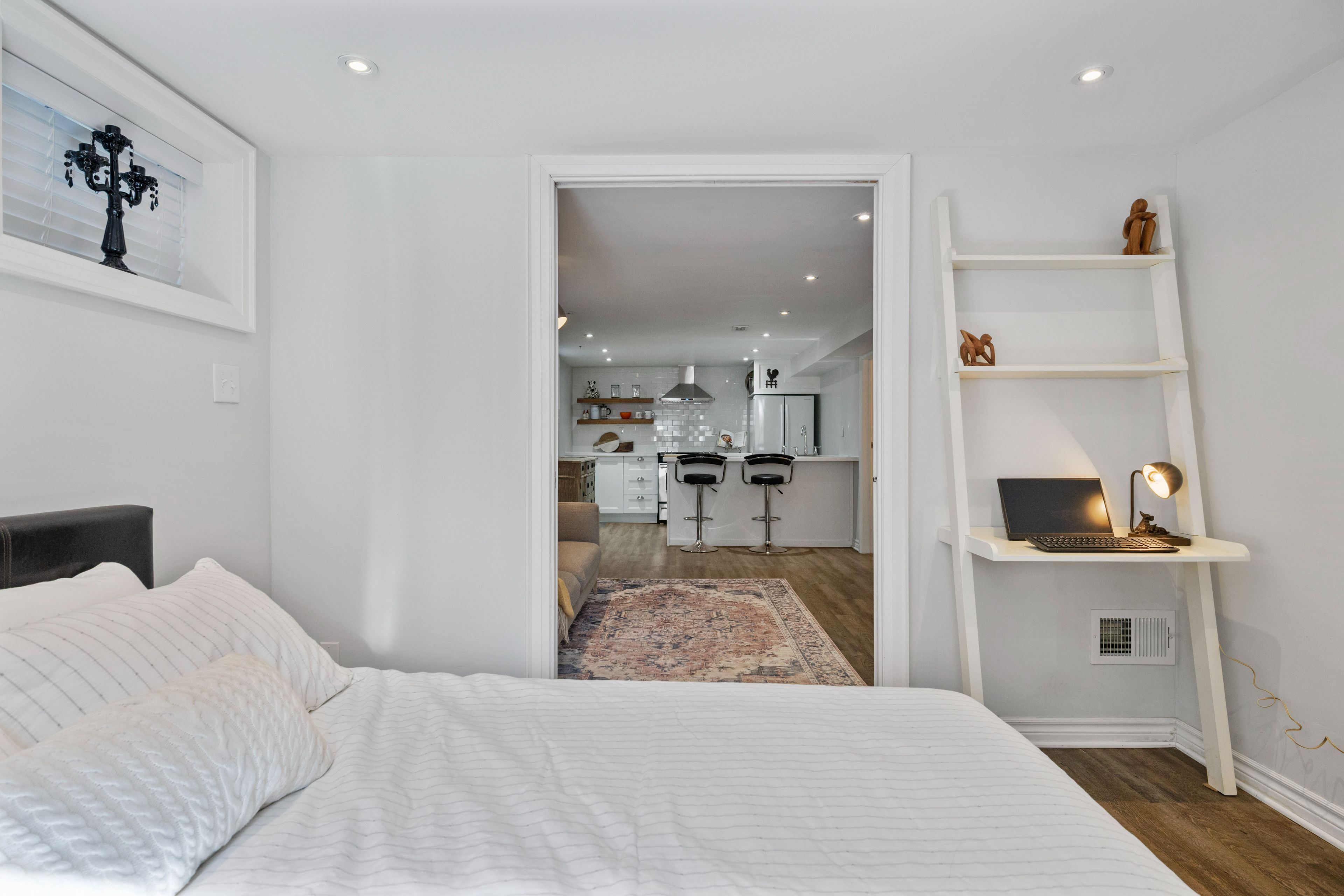 Bright, fully furnished private suite with separate entrance, designed for comfortable short- to mid-term living. Ideal for relocating professionals, medical residents, students, film/production crews, or anyone in transition needing a turnkey home. This thoughtfully finished suite features multiple above-grade windows that fill the space with natural light. The bedroom is enclosed with pocket french doors, offering both openness and privacy. The open-concept living area includes laminate flooring, pot lighting, plantation-style blinds, and an electric fireplace for both ambiance and added comfort. The kitchen offers white cabinetry, subway tile backsplash, smooth top stove and full hood vent, french door fridge, open shelving, granite peninsula, undermount sink, and built-in dishwasher. The 4-piece bathroom is finished with a marble-topped vanity and warm wood accents. Private side entrance provides added convenience and separation. All utilities included: heat, hydro, water, and internet. One parking space on shared driveway. Access to a fully fenced shared backyard. Well-behaved pets considered. Excellent location with quick access to hwy 401 (6 mins) and dvp (7 mins); making for an easy commute to scarborough general, sunnybrook, nygh, and uoft scarborough. Steps to two bus routes with connections to the new eglinton lrt. Costco, groceries, pharmacy, banks, and the library are all a short walk away, with shops at don mills and golden mile shopping close by, and more restaurants and bakeries than you'll ever have time to try.