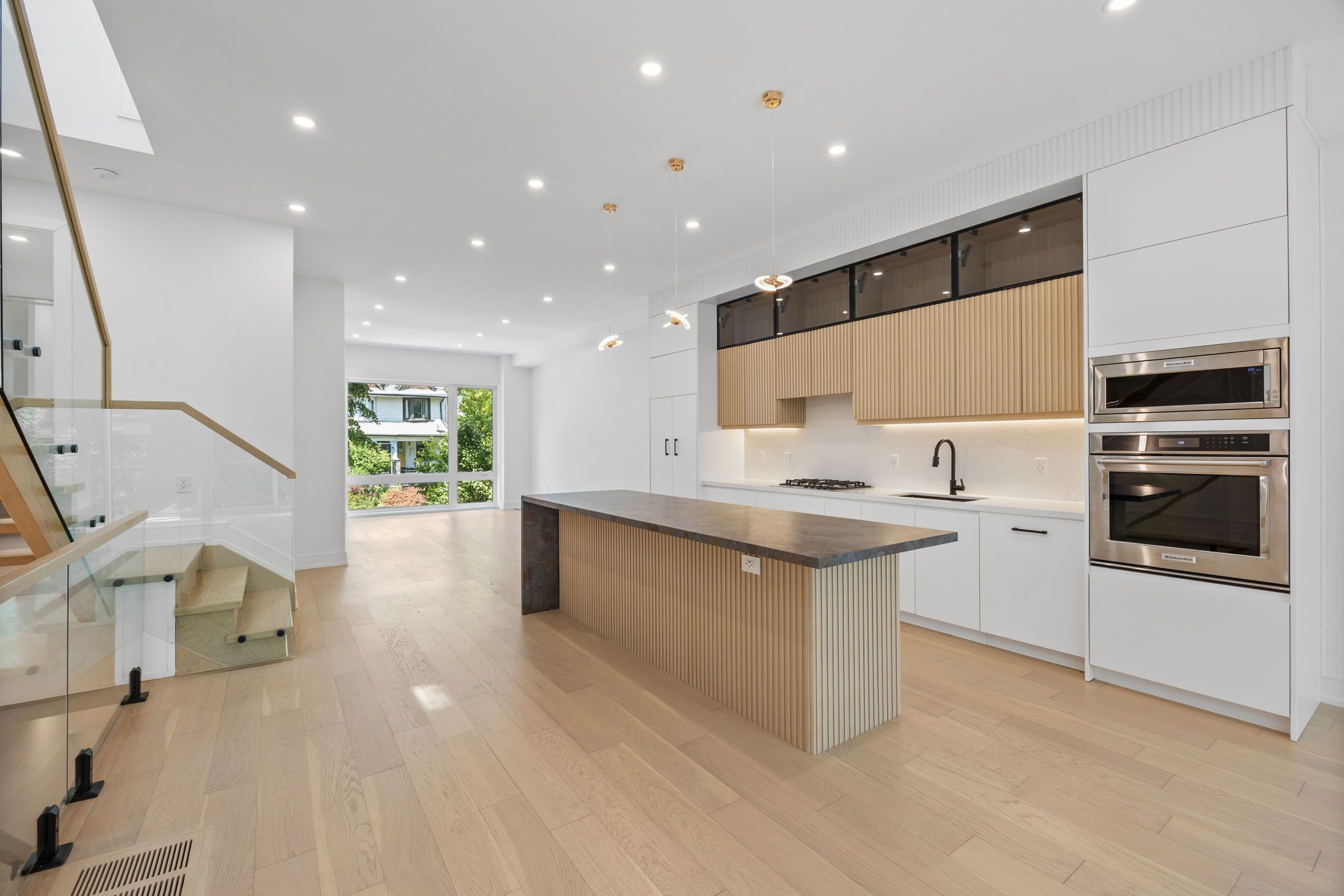 Modern architect-designed home - 3400 sqft | 3400 sqft (2550 sqft above grade, 975 sqft at/below grade) with open-concept main floor, 10ft ceilings, abundant natural light from south-facing backyard | contemporary kitchen with waterfall counters, built-in appliances, seamless modern design | 20x8ft deck with glass railings, unobstructed south-facing views of lush, tree-filled landscape | second floor with 9ft ceilings, 4 spacious bedrooms, 2 ensuites, custom built-in closets | walk-out basement with 12ft ceilings, 290sqft light-filled bonus room with 16x10ft glass wall, ideal for guest suite or rental (kitchen rough-ins included) | private garage with direct home access, convertible to separate basement entrance | quiet, one-way street in vibrant neighborhood with unique coffee shops, local chocolate factory, michelin guide breakfast spot, cozy brewery | steps to mall, woodbine beach, streetcar to downtown toronto | within blake street jr. Ps, duke of connaught jr. & sr. Ps, riverdale ci, danforth cti catchment | disclosure: listing agent is related to one of the sellers