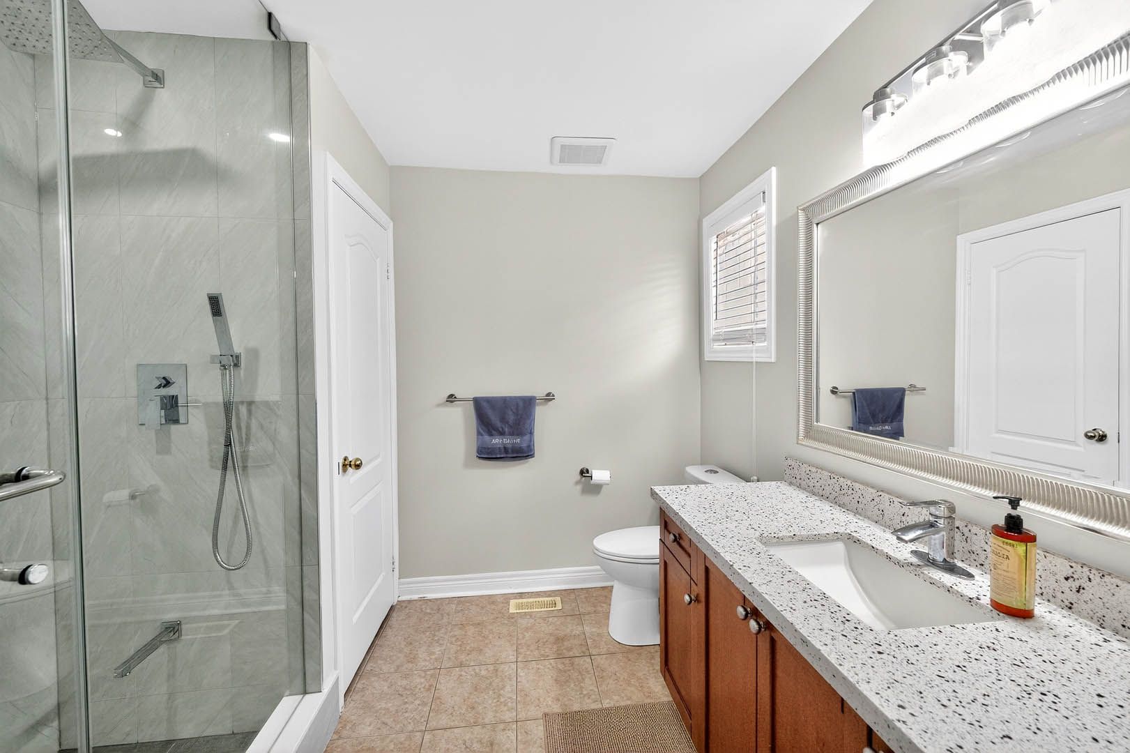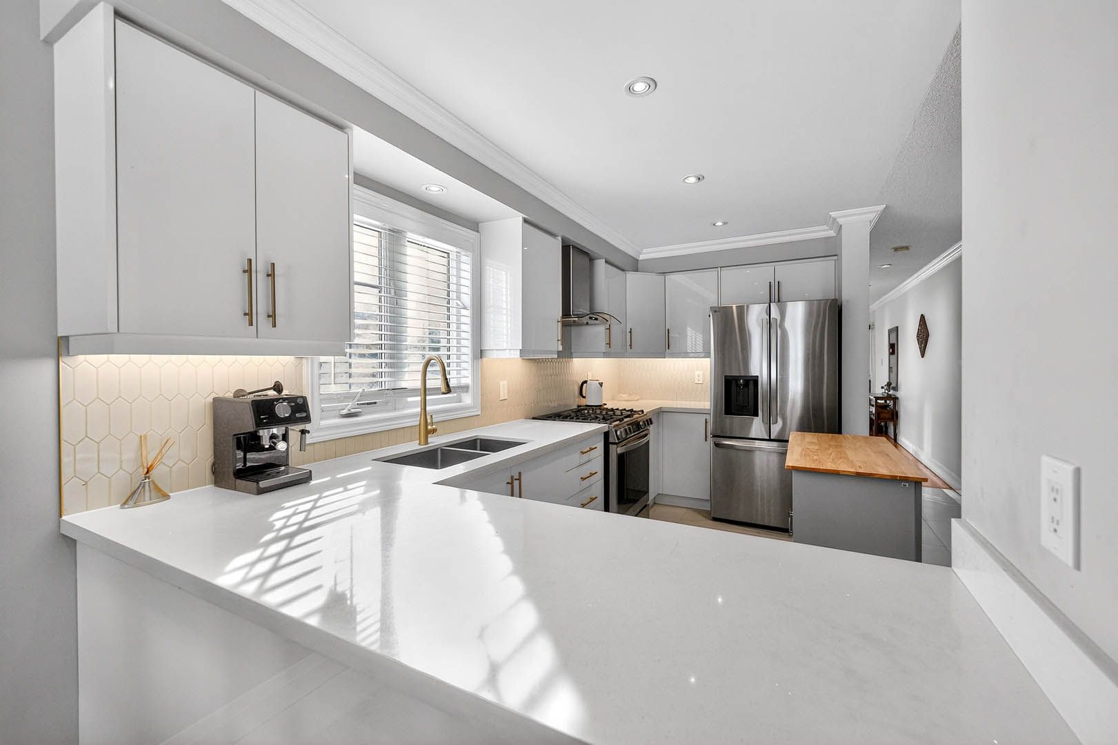 • Upgraded kitchen features quartz countertops and stainless steel appliances.