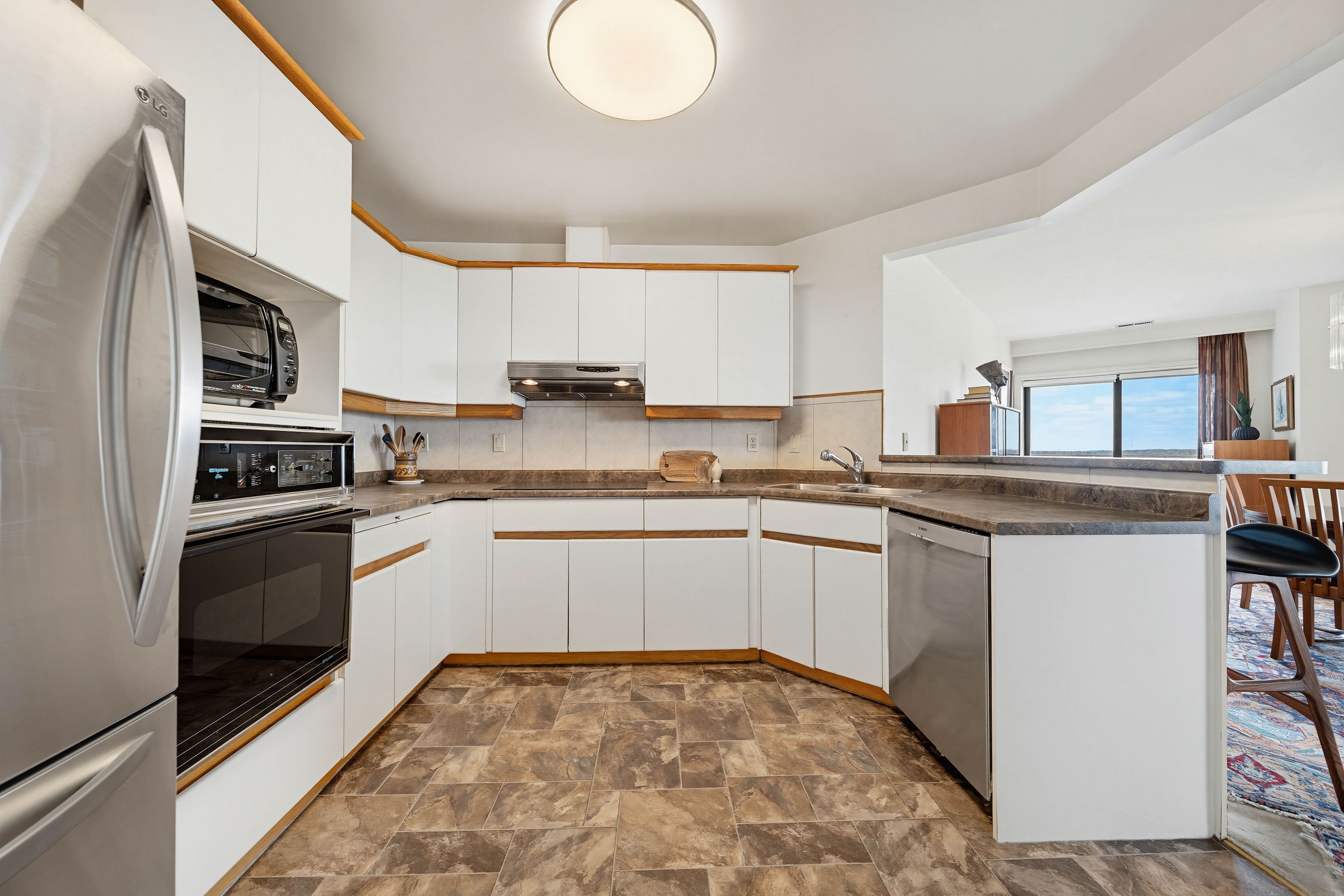 • 11th-floor unit offers panoramic views of parks and cityscape.