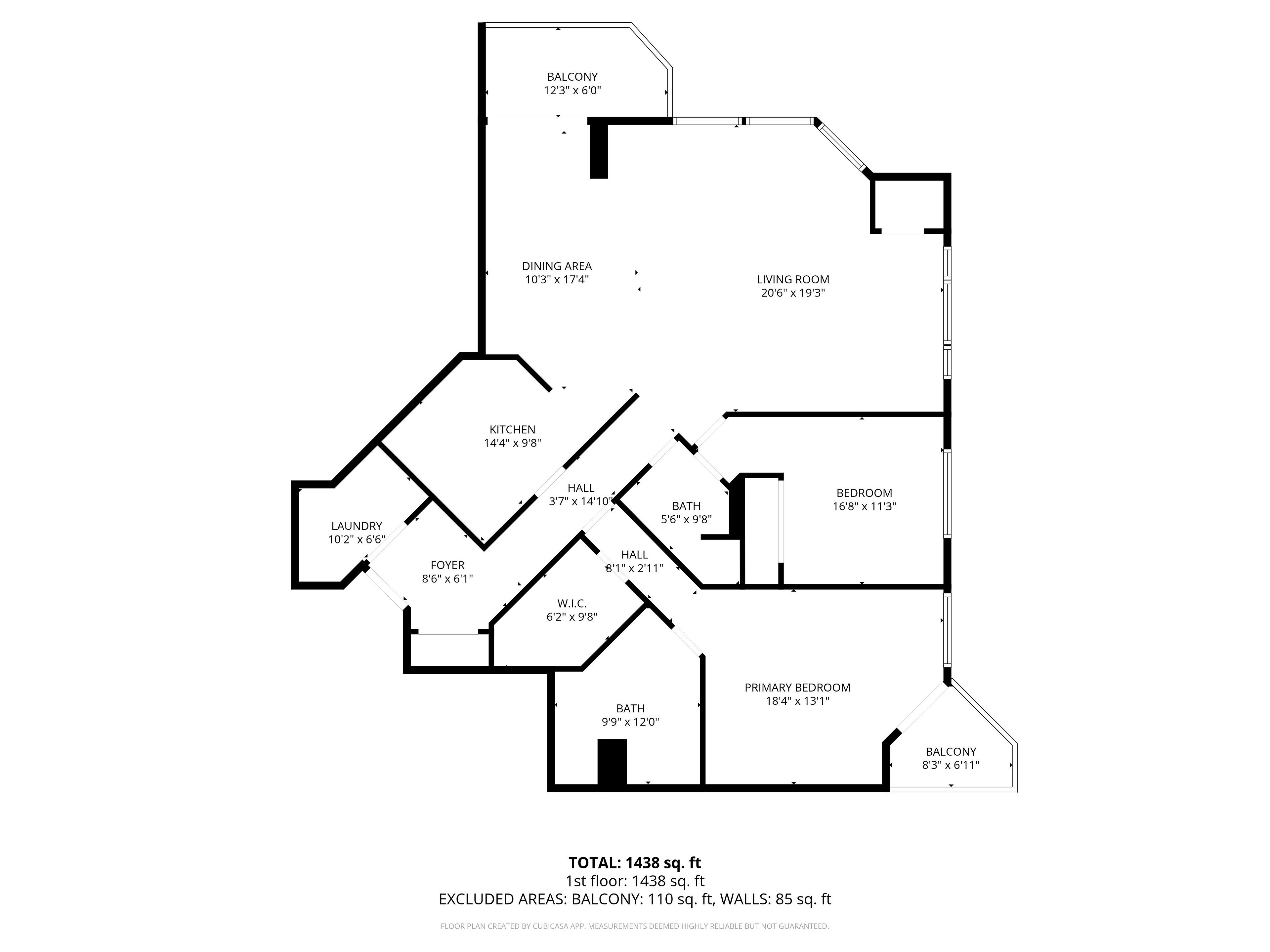 • Open-concept layout connects kitchen, dining, and living areas with balcony access.