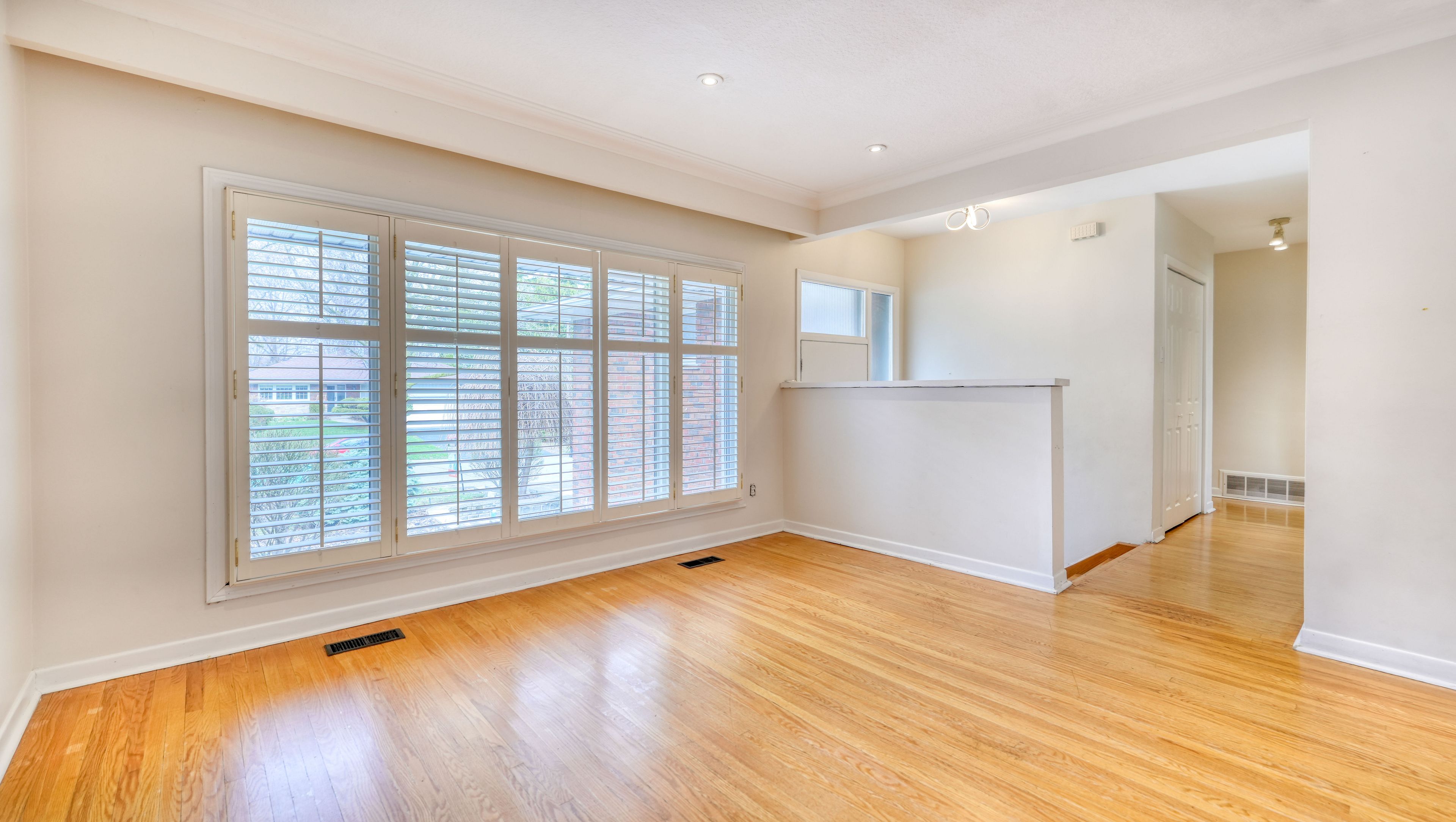 • Open concept living and dining room with hardwood floors.