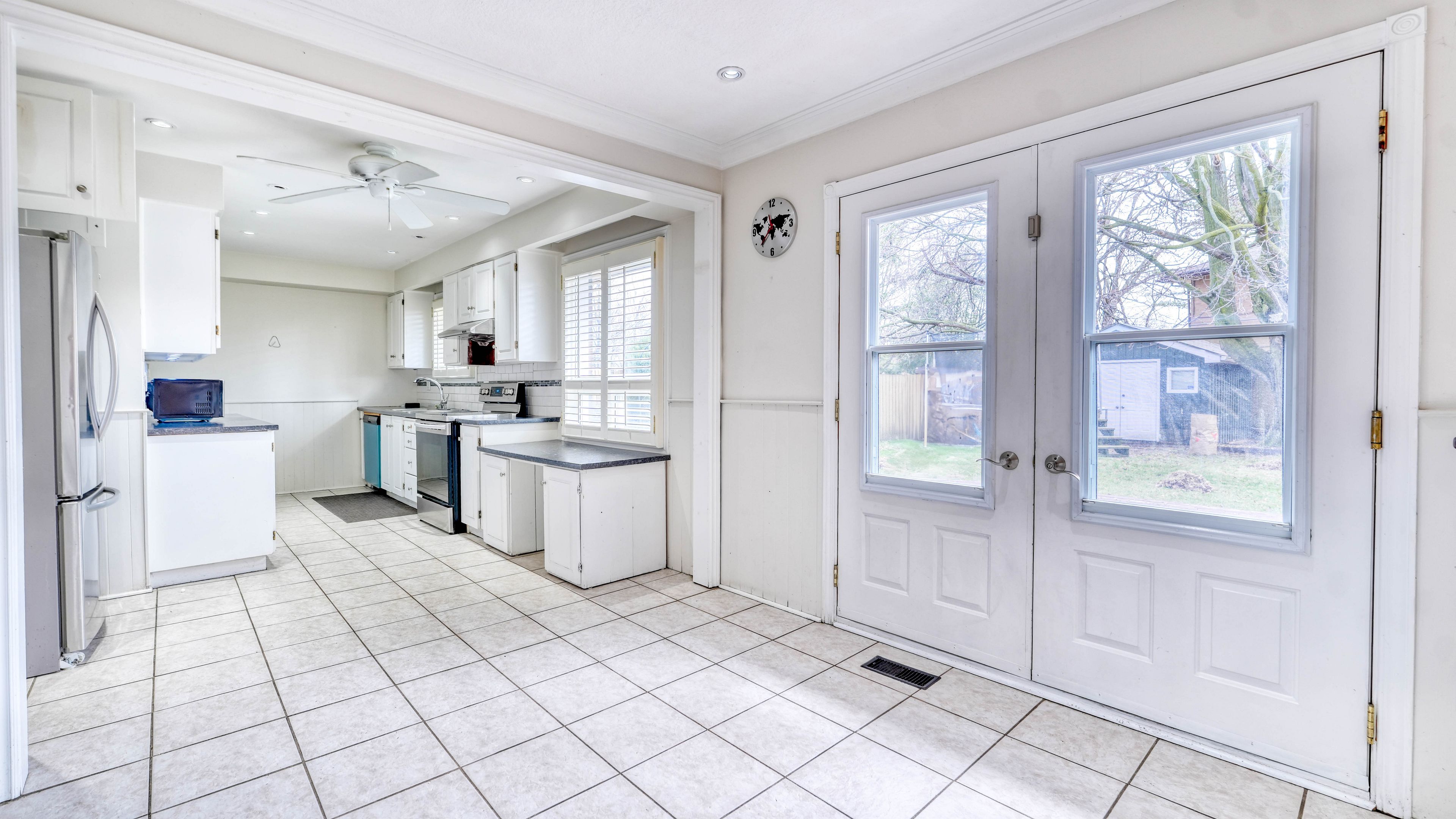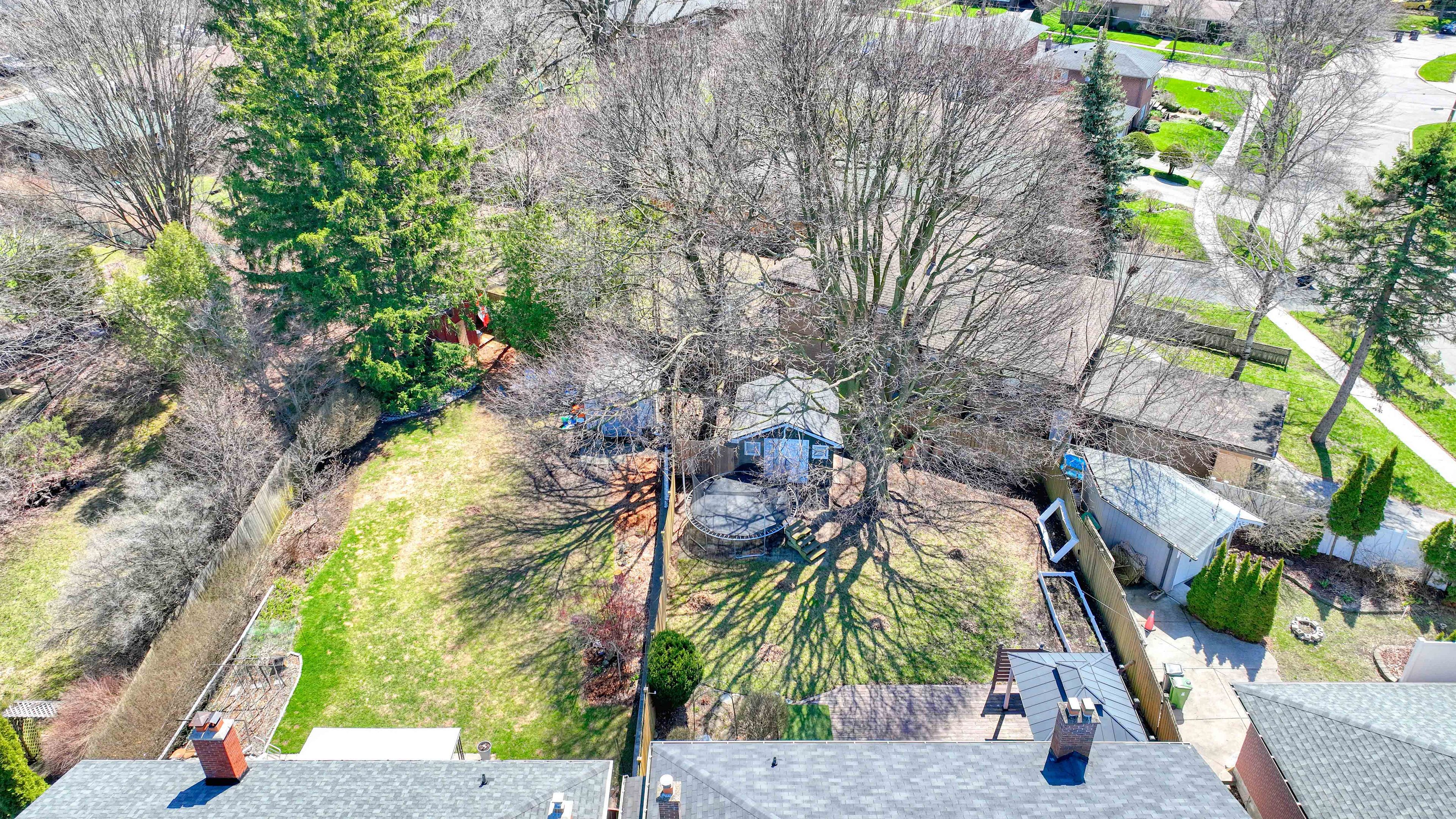 • Large fenced backyard with a shed and gazebo.