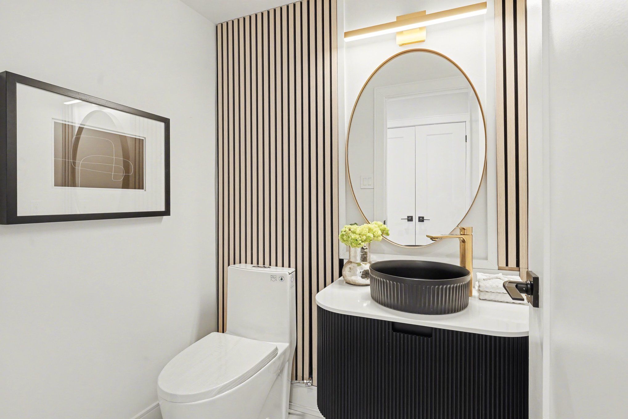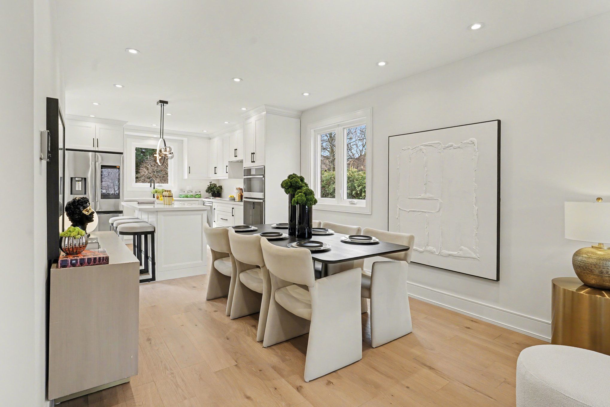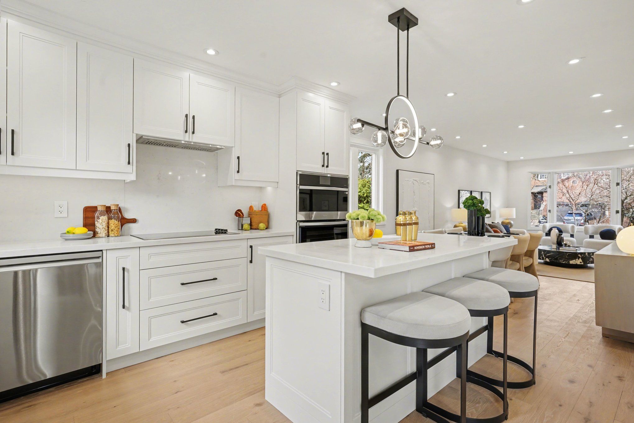 • Stylish kitchen with quartz countertops and smart appliances.