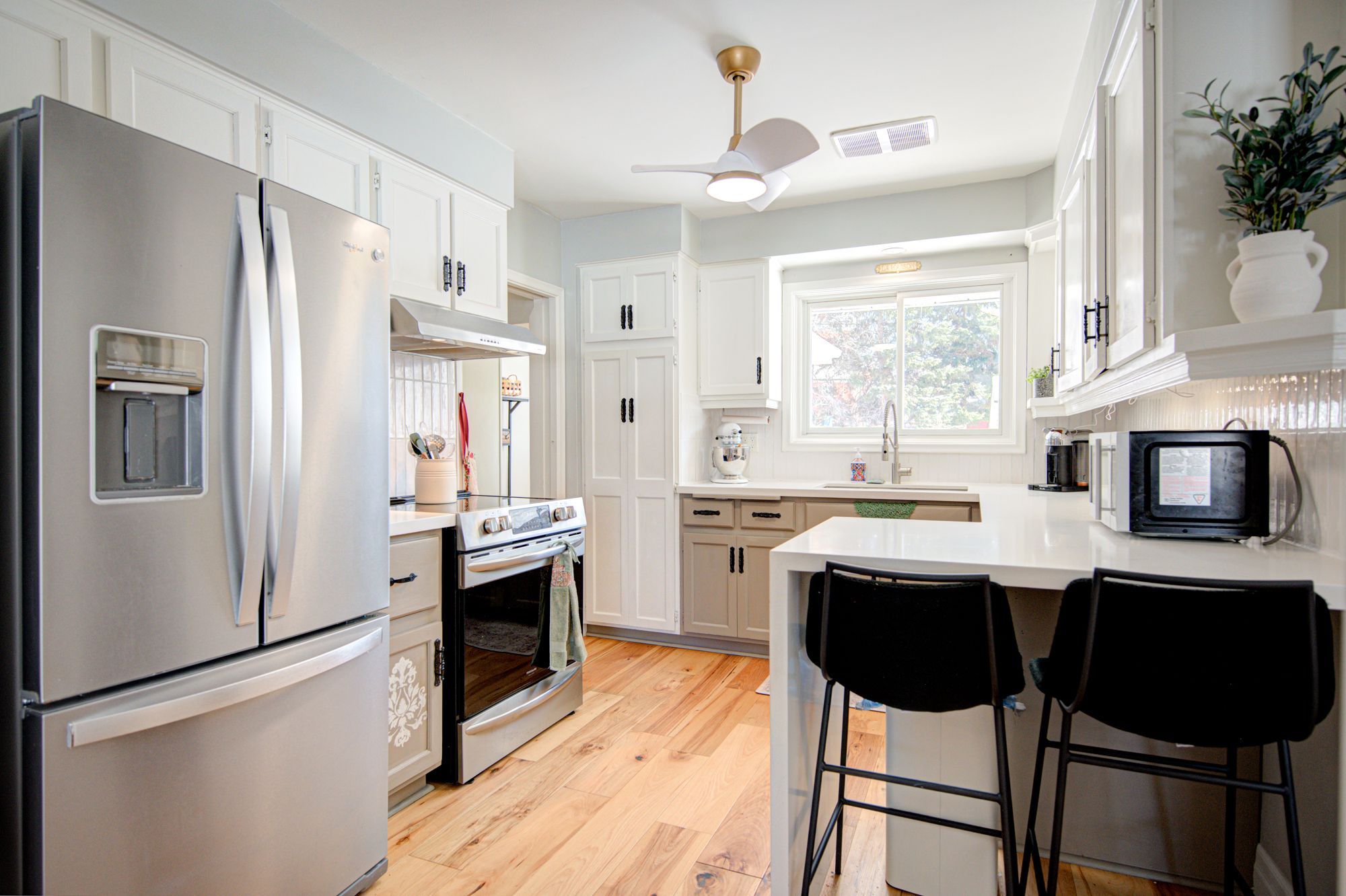 • Renovated kitchen featuring quartz countertops and new appliances.