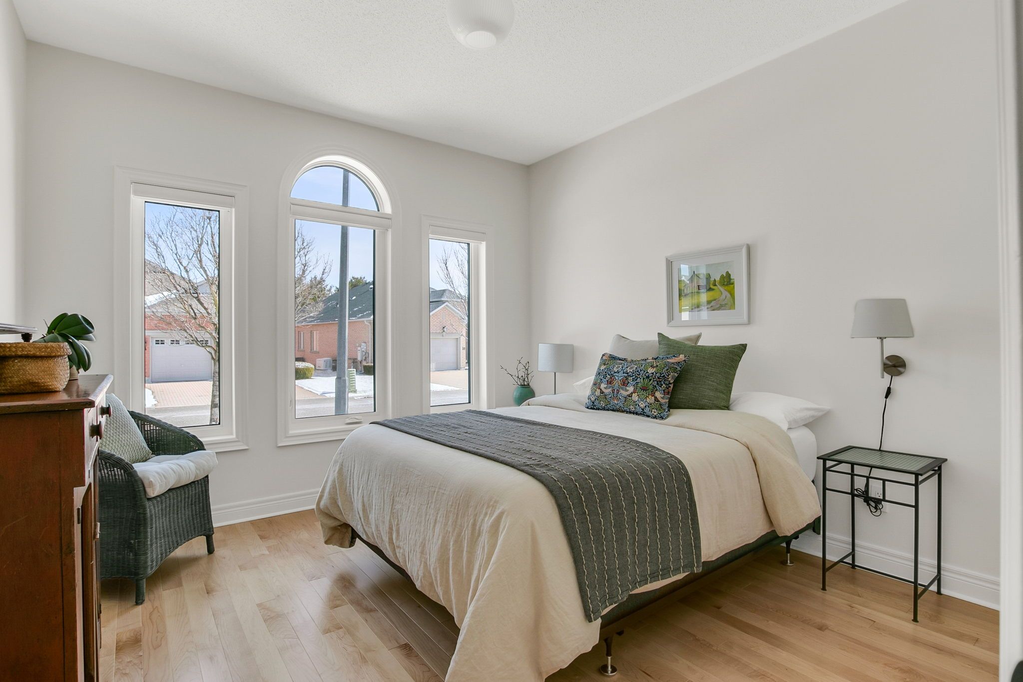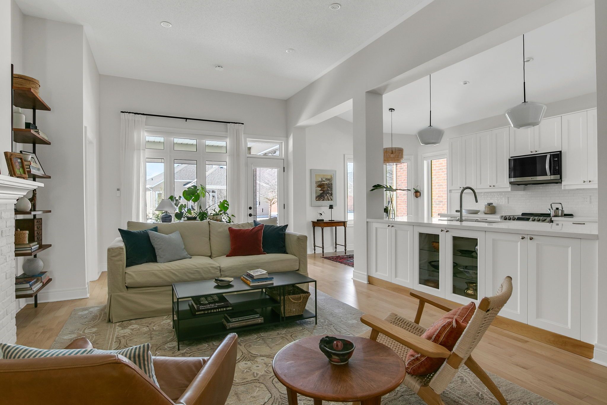 19 long stan - a fantastic opportunity to own a beautifully upgraded home in the gated community of the ballantrae golf course. The desirable innisbrook model offers over 1,700 sq. Ft. Of thoughtfully designed living space, highlighted by impressive 11-foot coffered ceilings and a more open-concept layout. Tastefully updated with over $100,000 in upgrades, this home showcases a fully renovated kitchen complete with lg appliances, all new cabinetry, and quartz countertops overlooking the living and dining areas. The living room is anchored by a valour gas fireplace with custom brick surround, creating a warm and inviting focal point. Natural light pours through all-new triple-glazed windows, enhancing the home's airy feel and light hardwood floors, integrating modern sophistication with timeless charm. Further upgrades include custom closets (2024), automatic linen blinds (2024), ac (2024), furnace (2022), roof (2022), and stone-form surfacing of front and rear patio. The home features two generously sized bedrooms, including the primary bedroom retreat at the rear of the home with double closets and spacious ensuite bath. A versatile den offers the flexibility of an easy third bedroom conversion or home office, while currently serving as an ideal tv lounge. Step outside onto the large, covered patio to enjoy the summer months bbq'ing and entertaining at the back of the home. Mature trees create privacy and a lushness, a premium in the community. Beyond the home, the community stands out for its pride of association and outstanding amenities - welcoming neighbours on all sides, an active rec centre with indoor saltwater pool, sauna, hot tub, gym, tennis courts, billiards room, and events venue with a full calendar of clubs and activities. Golf course access available with resident discounts! Club restaurant is open to all residents throughout the golfing season. And not to be missed - the magnificent 2,600-hectare york region forest also sits on your doorstep!