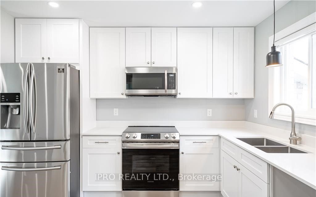 This incredible unit features a modern open-concept design with high-end finishes, including brand-new stainless steel appliances and elegant quartz countertops in both the kitchen and bathroom. Enjoy the ultimate convenience of your own exclusive-use laundry-no sharing required! Each spacious bedroom boasts large closets and ample natural light. Unbeatable location: walking distance to schools, parks, public library, and transit. Just minutes to highway 400 and the go station for an easy commute. A truly turn-key home waiting for you! Utilities are extra, you pay 70%. A+ tenant, excellent credit & references. The photos are from the listing before the current tenant moved in.