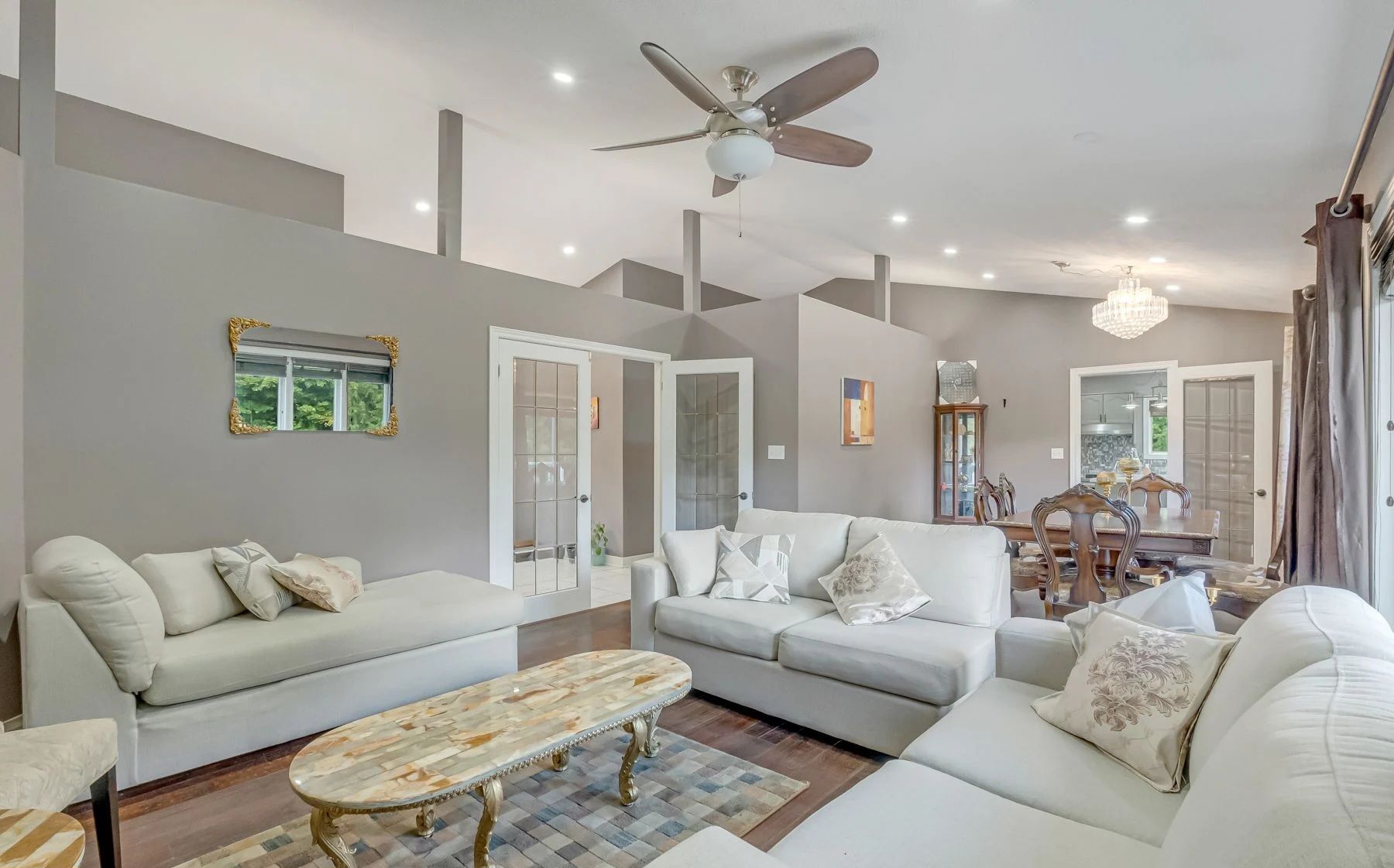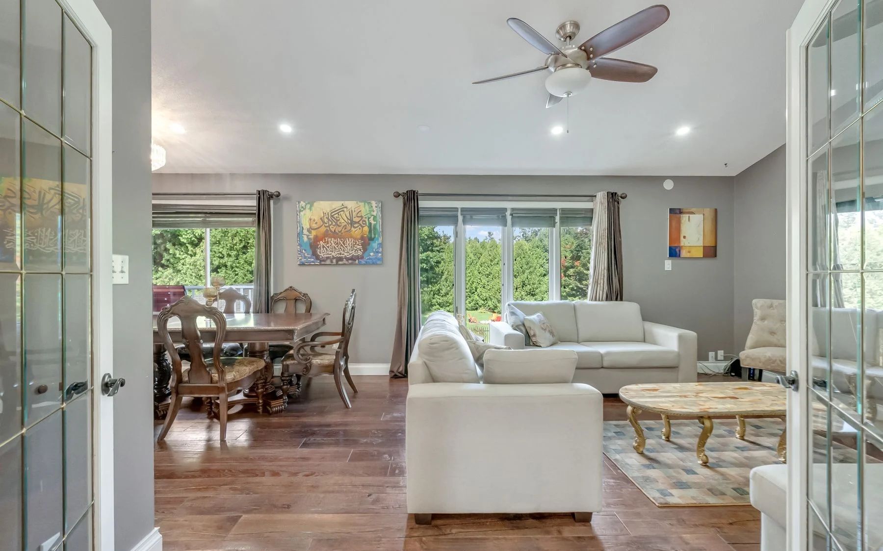 • Raised bungalow on a spacious 1.5-acre lot for peaceful living.