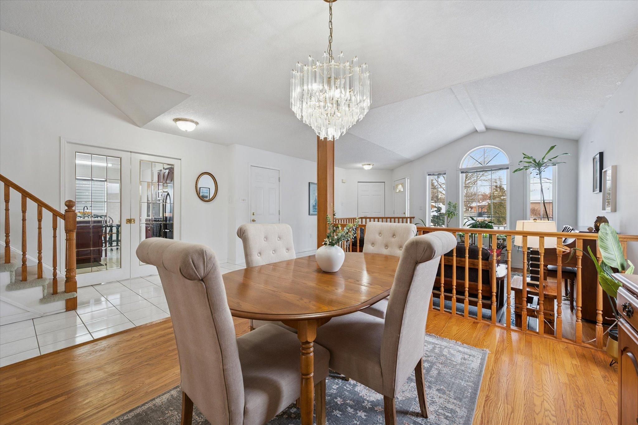 19 merganser dr is a spacious & well-maintained 4+1 bdrm home situated on large 50 x 120ft lot surrounded by mature trees in one of guelph's most sought-after, family-friendly neighbourhoods! From the moment you enter you're welcomed by inviting living room w/hardwood, vaulted ceilings & arched picture window that fills space w/natural light. Hardwood floors continues into formal dining room creating perfect setting for hosting family dinners & special occasions. Glass pocket doors lead to spacious kitchen w/handsome dark cabinetry, tiled backsplash & breakfast bar w/seating for casual dining. The kitchen flows into dinette area w/large window & sliding doors overlooking the backyard, ideal spot to enjoy morning coffee while taking in peaceful outdoor views. Family room offers garden doors & fireplace creating a warm & welcoming atmosphere. This level is completed by generous bdrm w/large window & 3pc bath perfect for guests, extended family or home office. Upstairs the primary bdrm impresses w/vaulted ceilings, large window & ample closet space. 4pc cheater ensuite w/shower & sep jacuzzi tub. 2 add'l bdrms complete the upper level. Finished bsmt provides versatility w/rec room filled w/natural light from oversized window. Space is ideal for gym, playroom, media room or office. 5th bdrm w/closet & egress window adds even more functionality. Private backyard retreat features patio area ideal for outdoor dining & entertaining surrounded by mature trees that provide exceptional privacy. Expansive grassy yard offers lots of room for kids & pets to play making it a true extension of the home's living space. Roof has been recently replaced! At the end of the street you'll find access to kortright hills public school & mollison park w/trails & off-leash dog park. Nearby ymca offers gym, pool, daycare & community programs. Quick access to hanlon pkwy makes commuting easy & efficient. Fantastic opportunity to own a spacious well-located home designed for comfortable living!