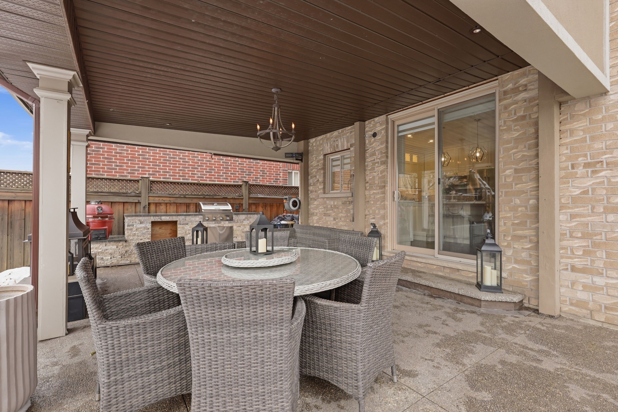 • Private backyard with a covered structure and outdoor kitchen.